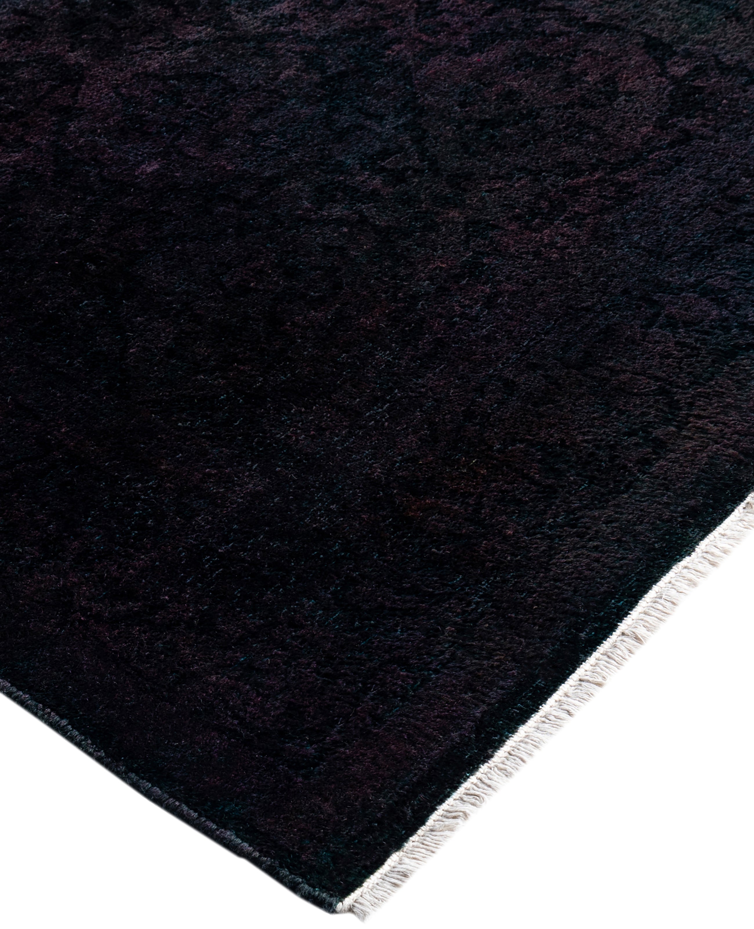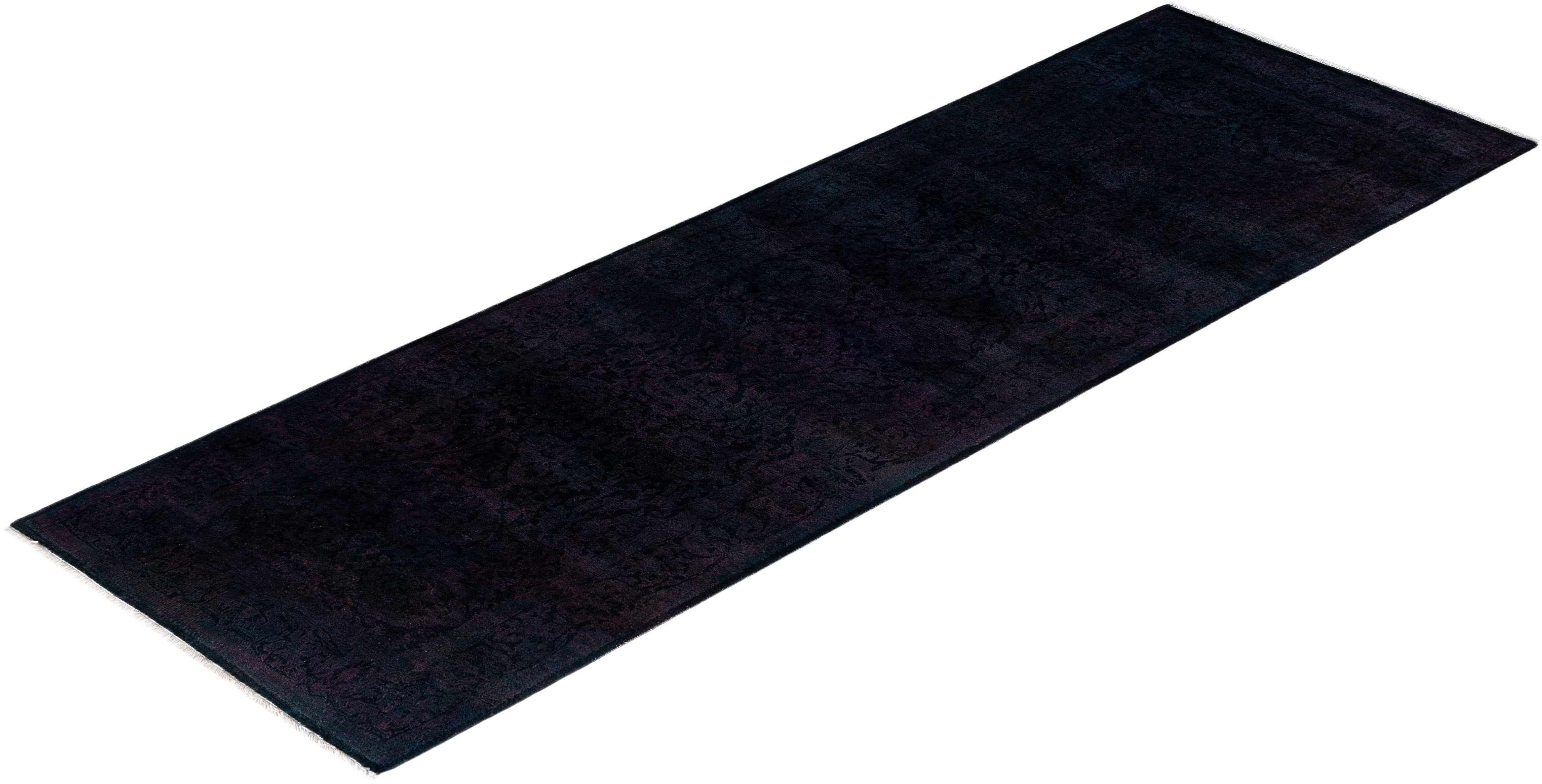 Contemporary Overdyed Wool Hand Knotted Black Runner 2' 7" x 7' 10"
