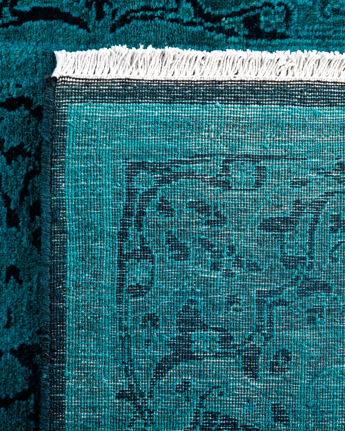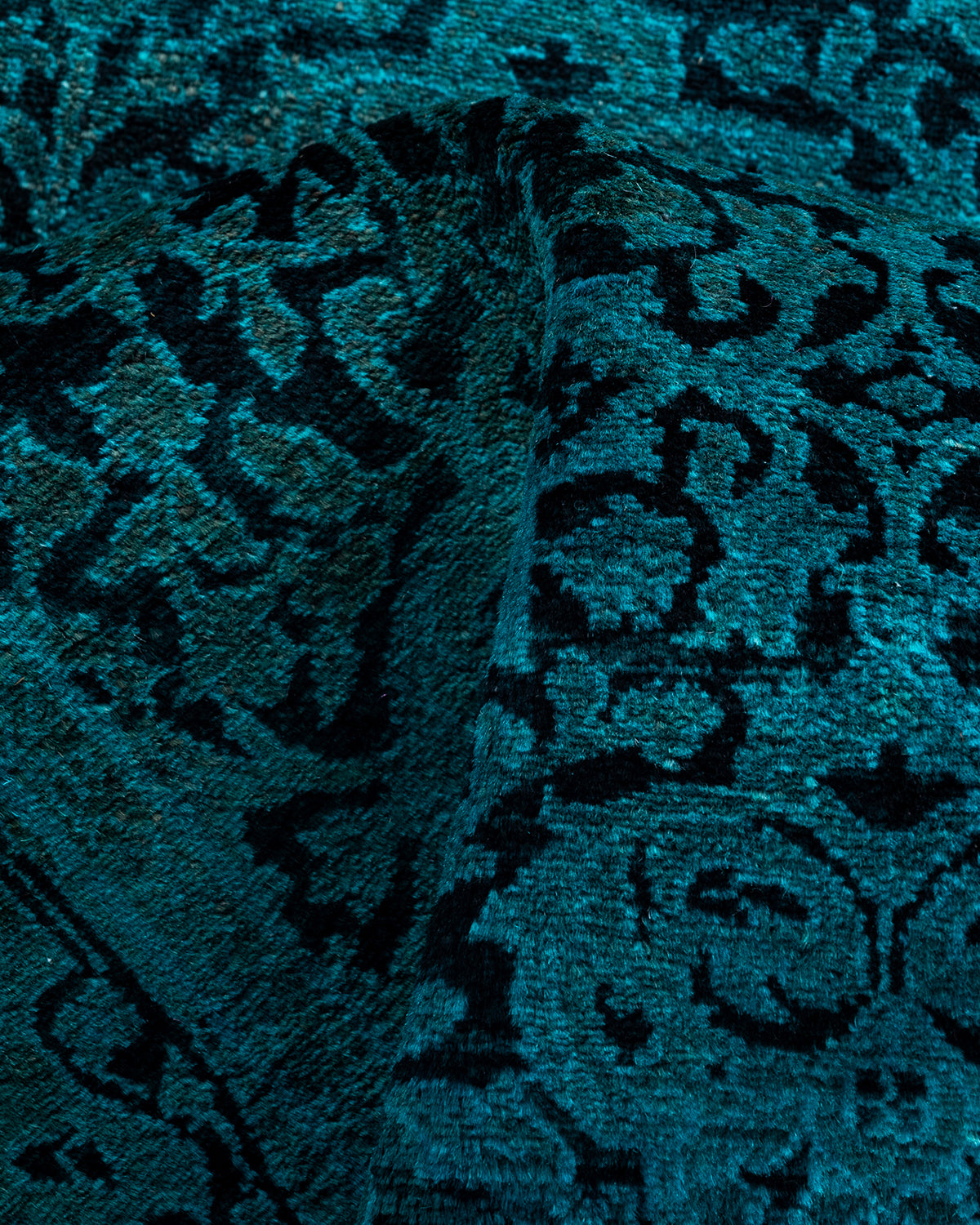 Contemporary Hand-Knotted Overdyed Blue Runner 2' 7" x 19' 10"
