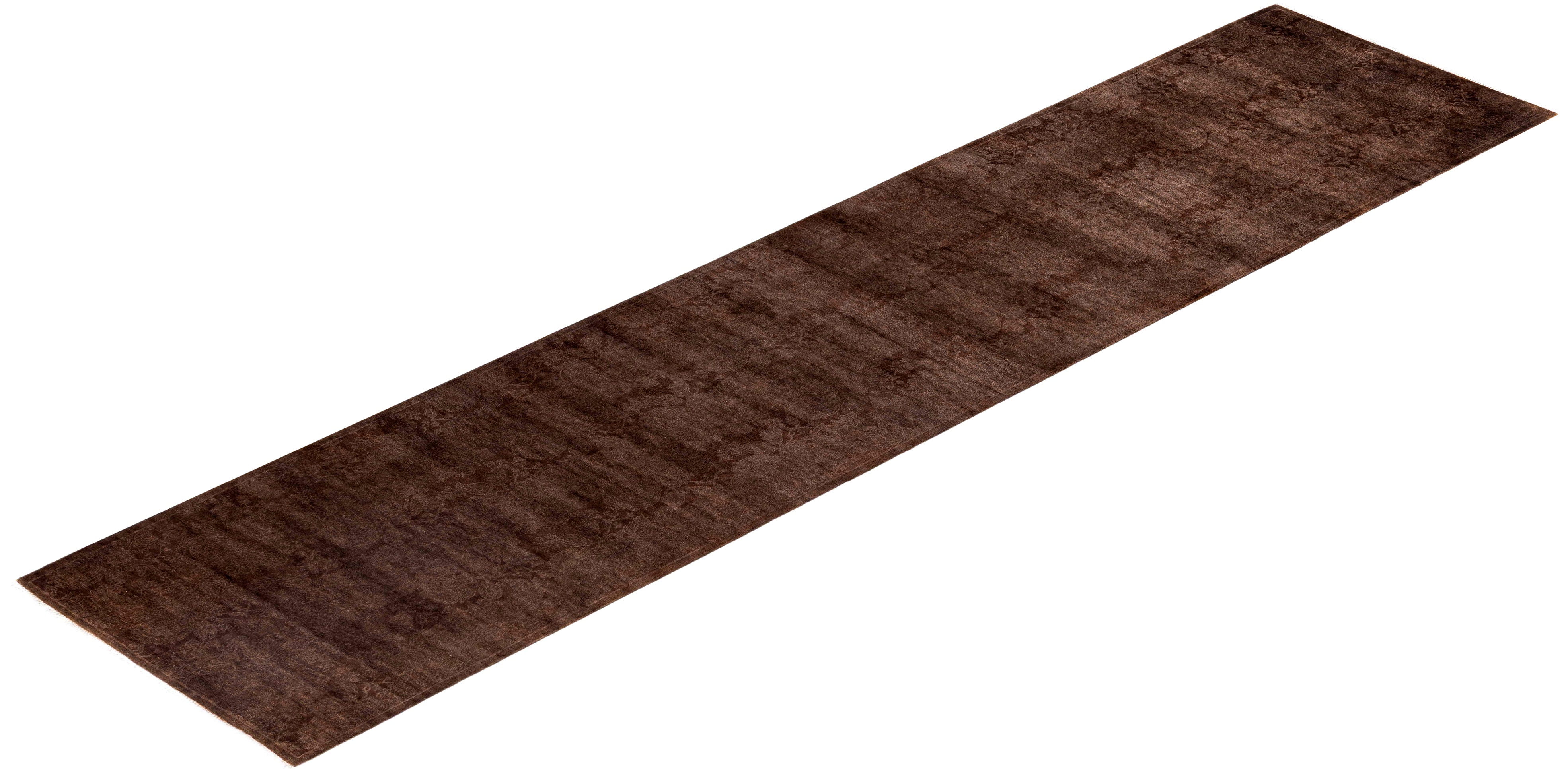 Overdyed One-of-a-Kind Wool Brown Runner 2' 8" x 11' 9"