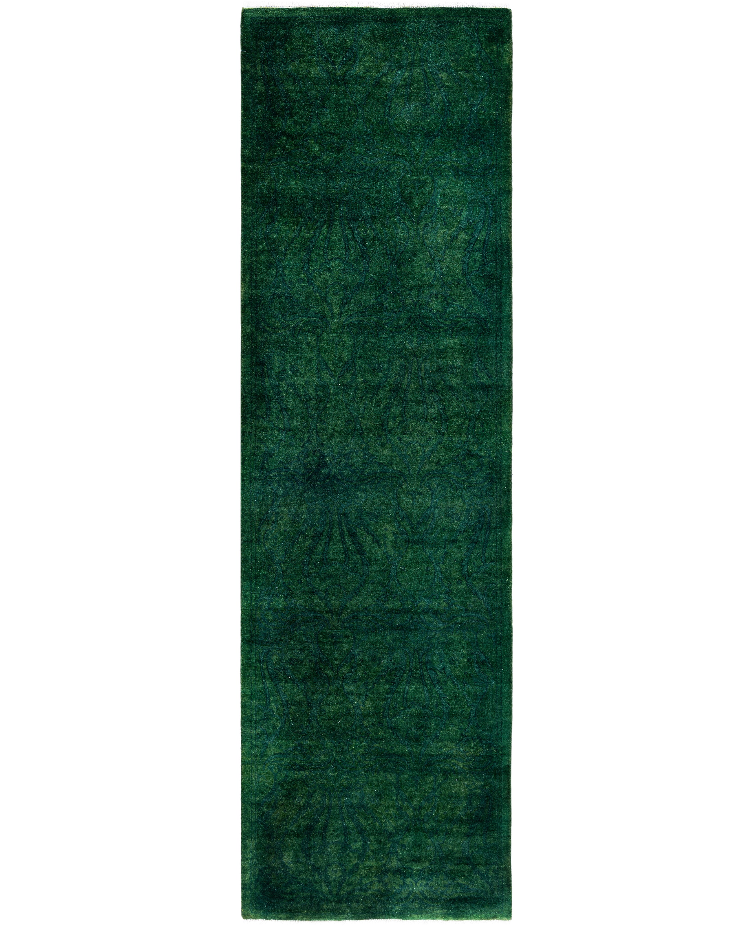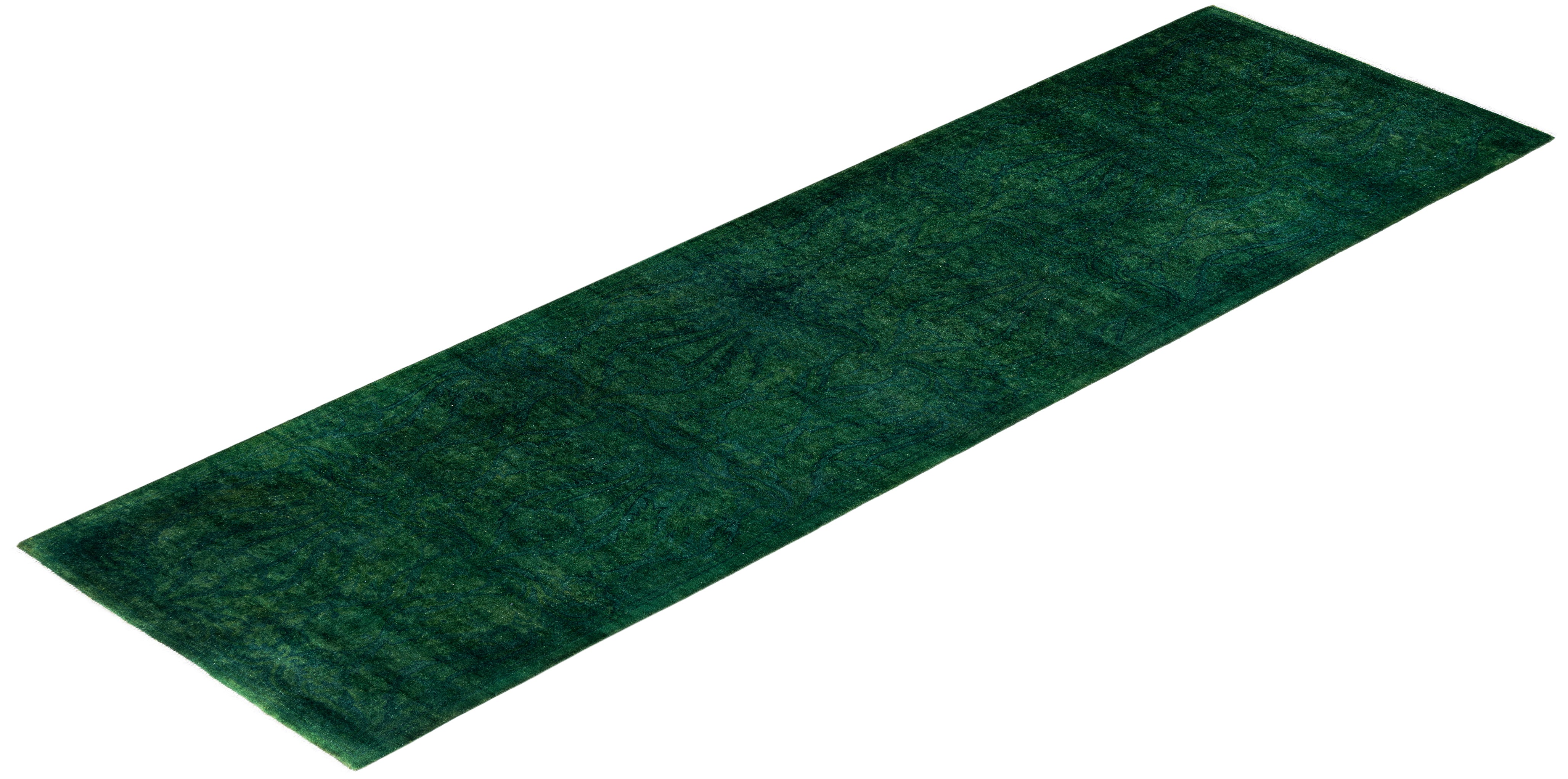 Overdyed One-of-a-Kind Wool Green Runner 2' 7" x 9' 0"