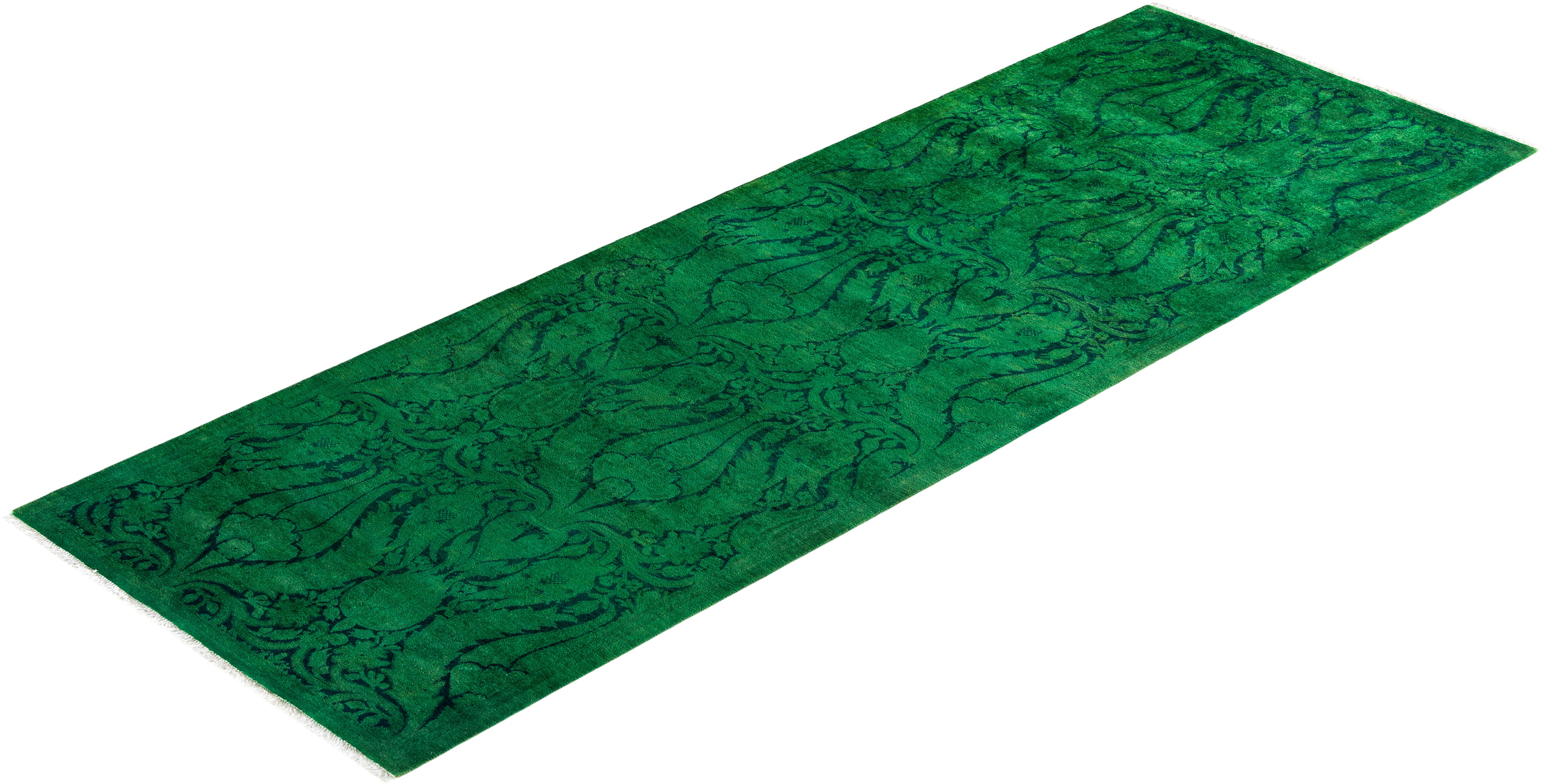 Contemporary Hand-Knotted Overdyed Green Runner 2' 8" x 7' 9"