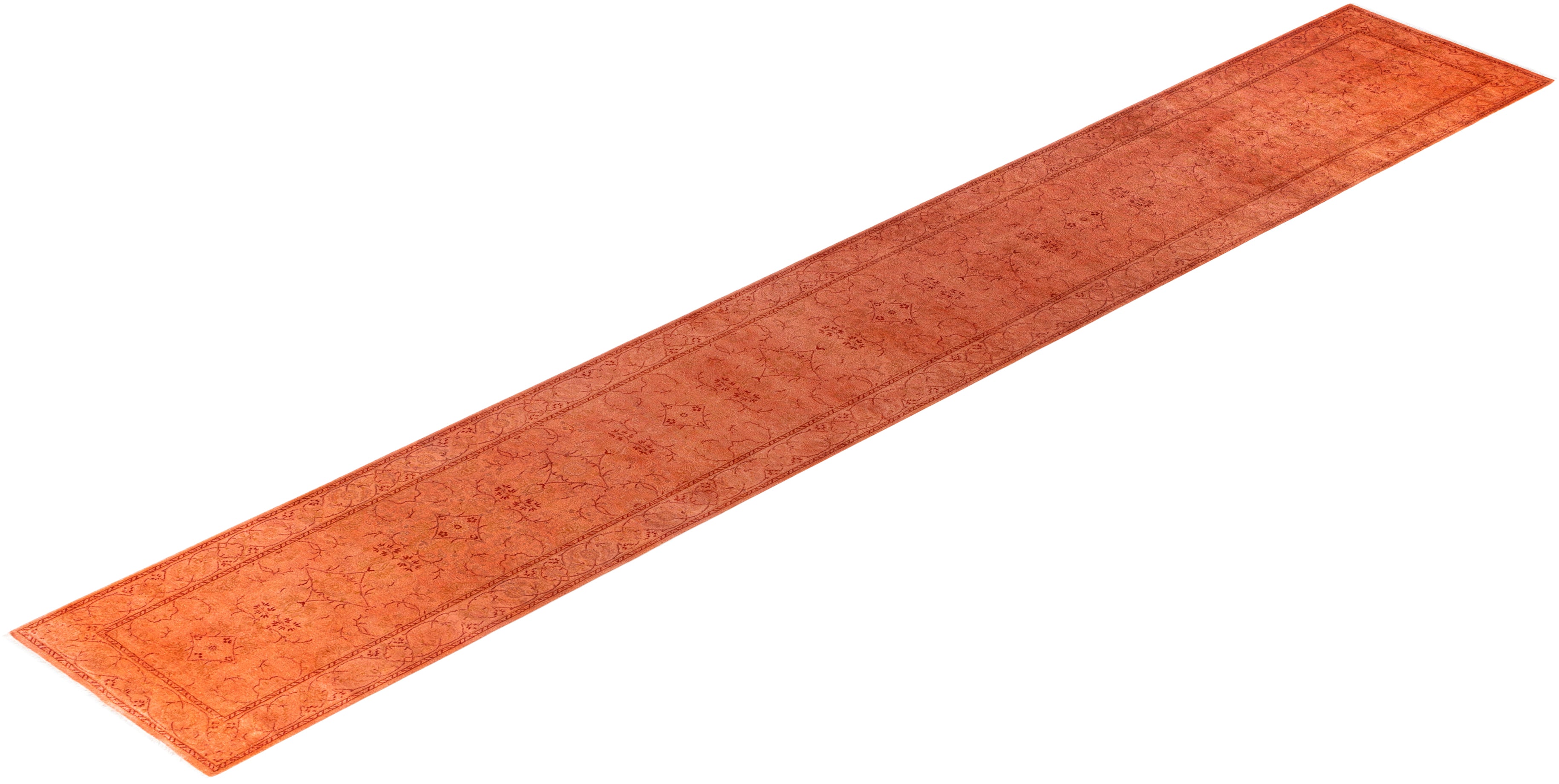 Contemporary Overdyed Wool Hand Knotted Pink Runner 2' 7" x 17' 0"