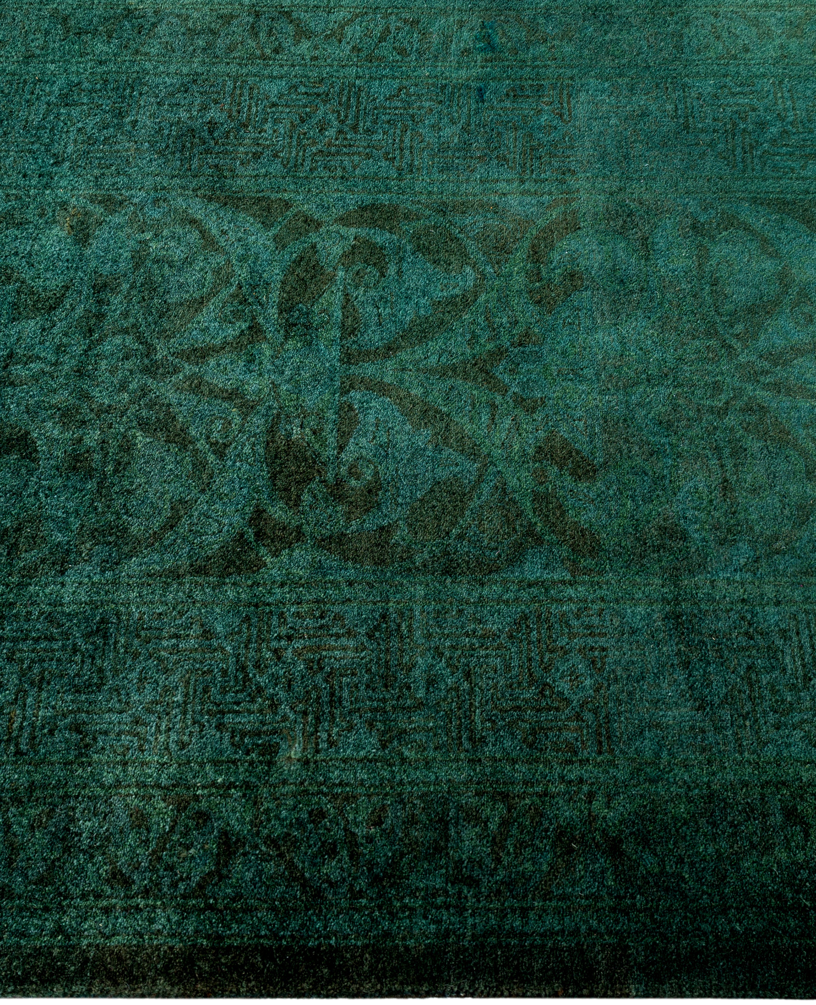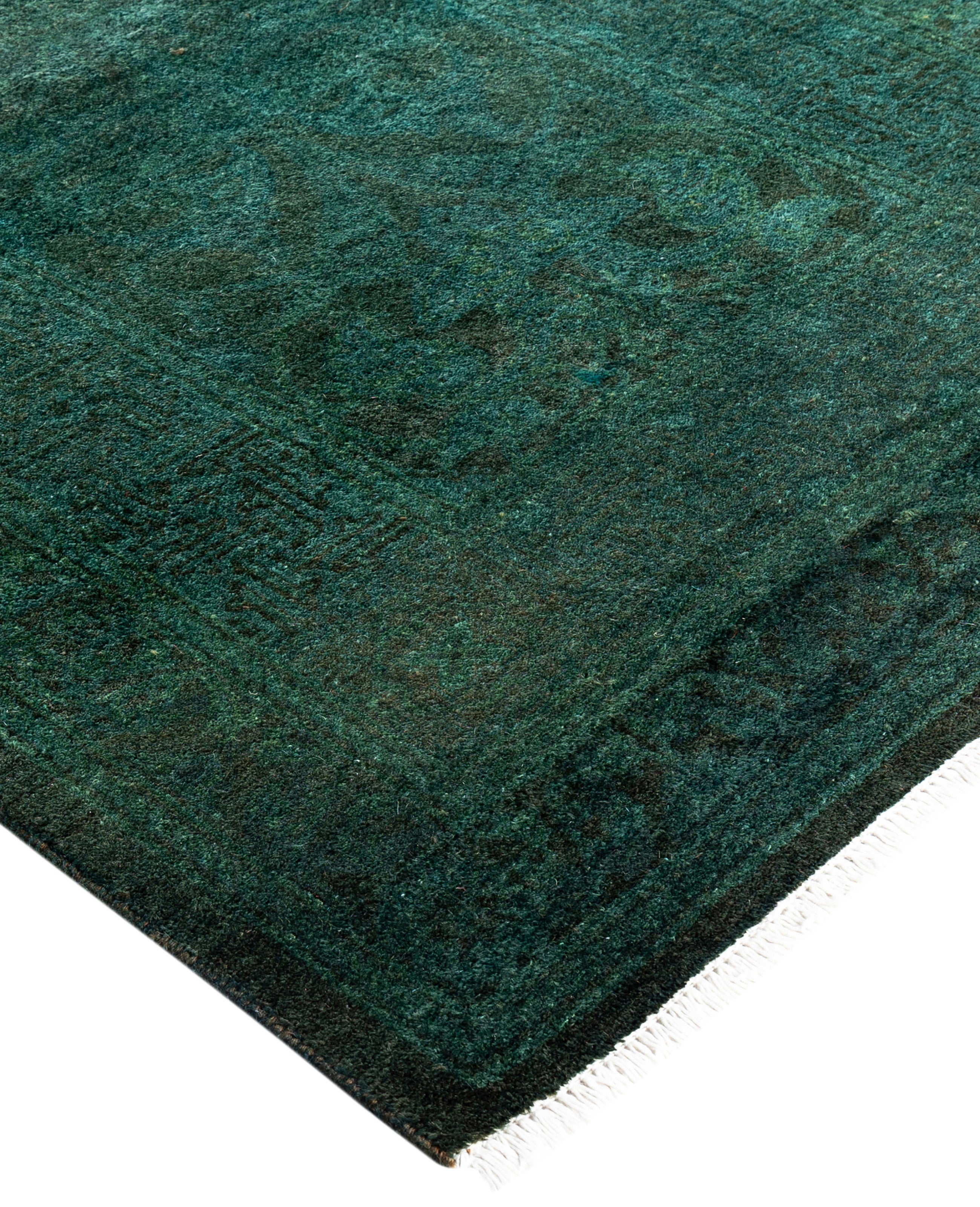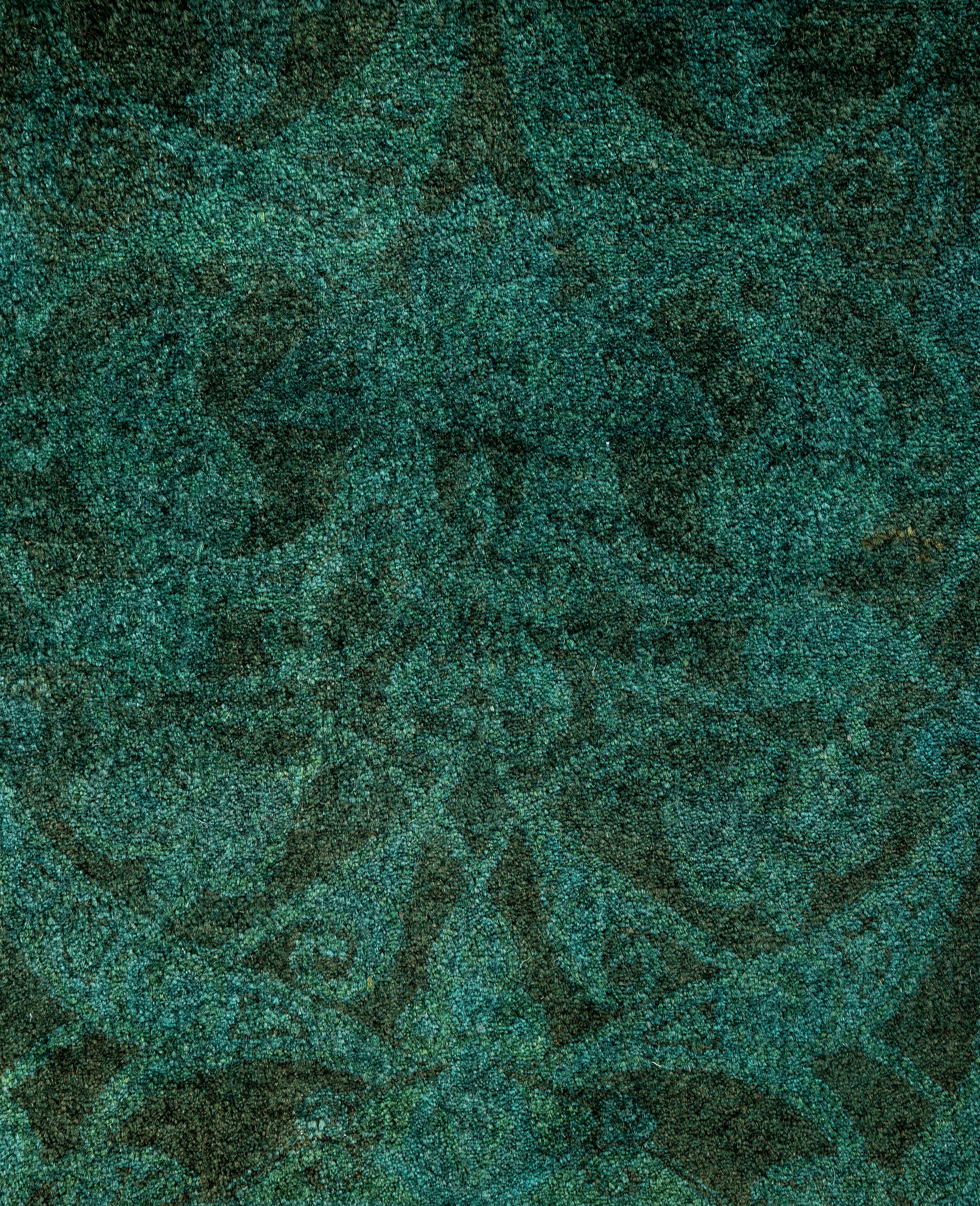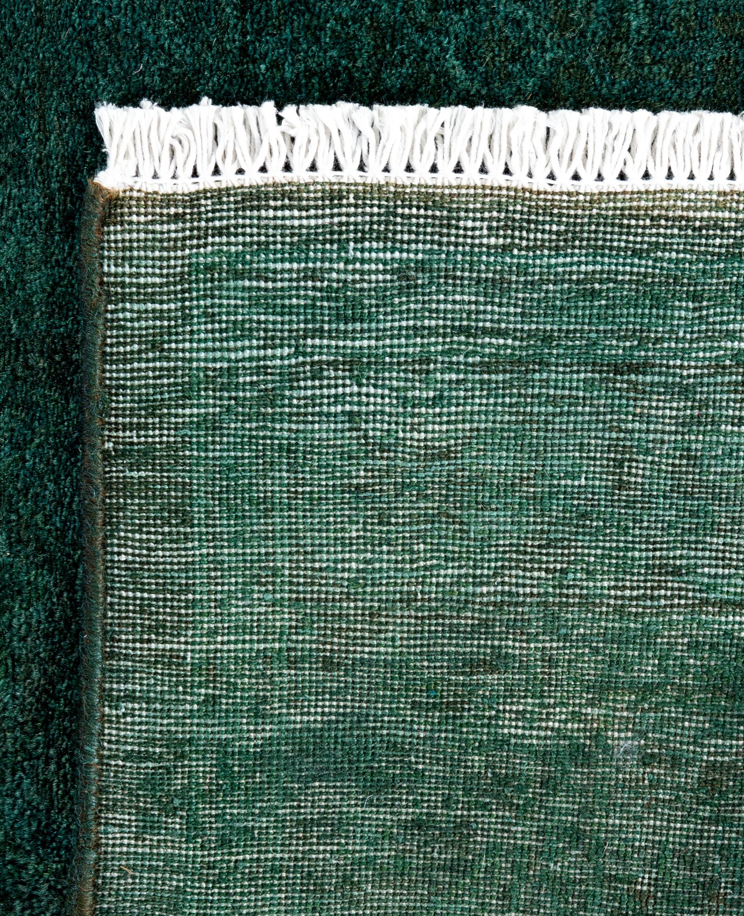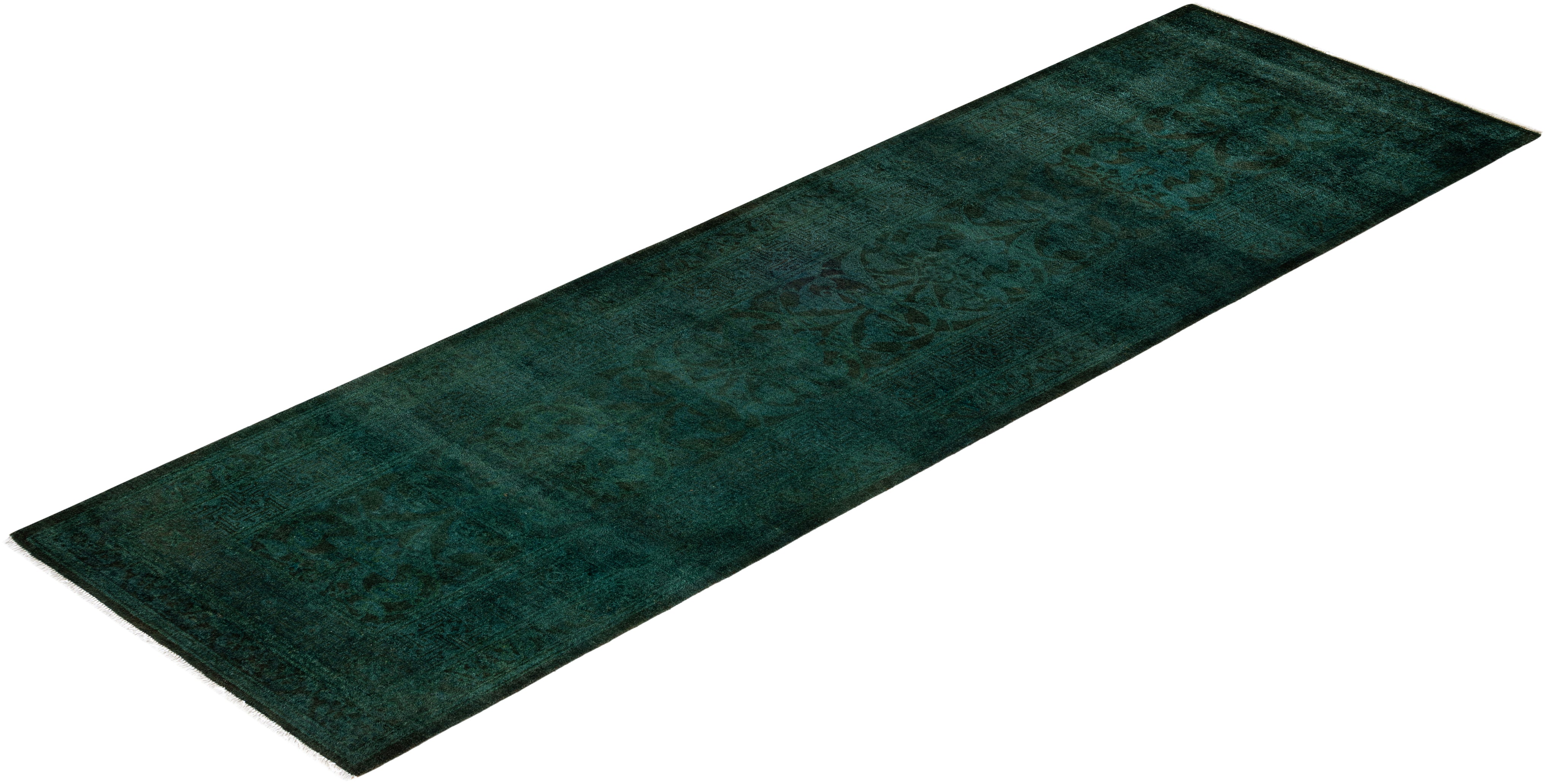 Contemporary Overdyed Wool Hand Knotted Green Runner 2' 7" x 8' 7"