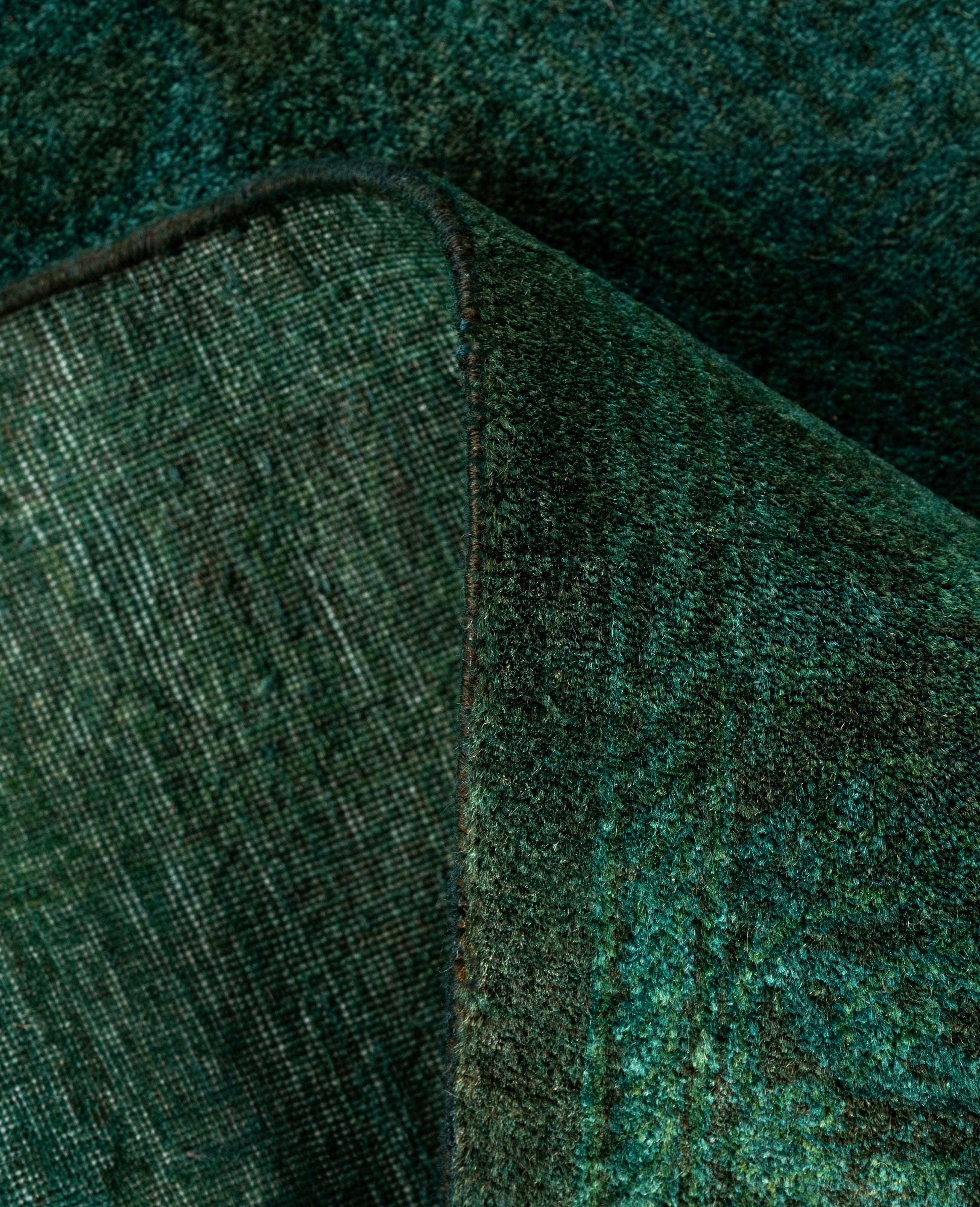 Over-dyed area rugs are created by taking vintage or traditional rugs and applying a vibrant, monochromatic dye over the existing patterns. This technique results in a bold, modern aesthetic while preserving the intricate designs beneath, blending the old with the new. The rugs are often faded and distressed before dyeing, which adds texture and depth to their appearance. The over-dye process breathes new life into worn or antique rugs, giving them a contemporary twist with rich, saturated colors like deep blues, purples, or bright reds. These rugs work well in both eclectic and modern spaces, offering a unique, artistic flair to any room. They provide a dynamic focal point, balancing between traditional craftsmanship and contemporary design trends. Over-dyed rugs are perfect for those looking to add a pop of color and character to their home decor.