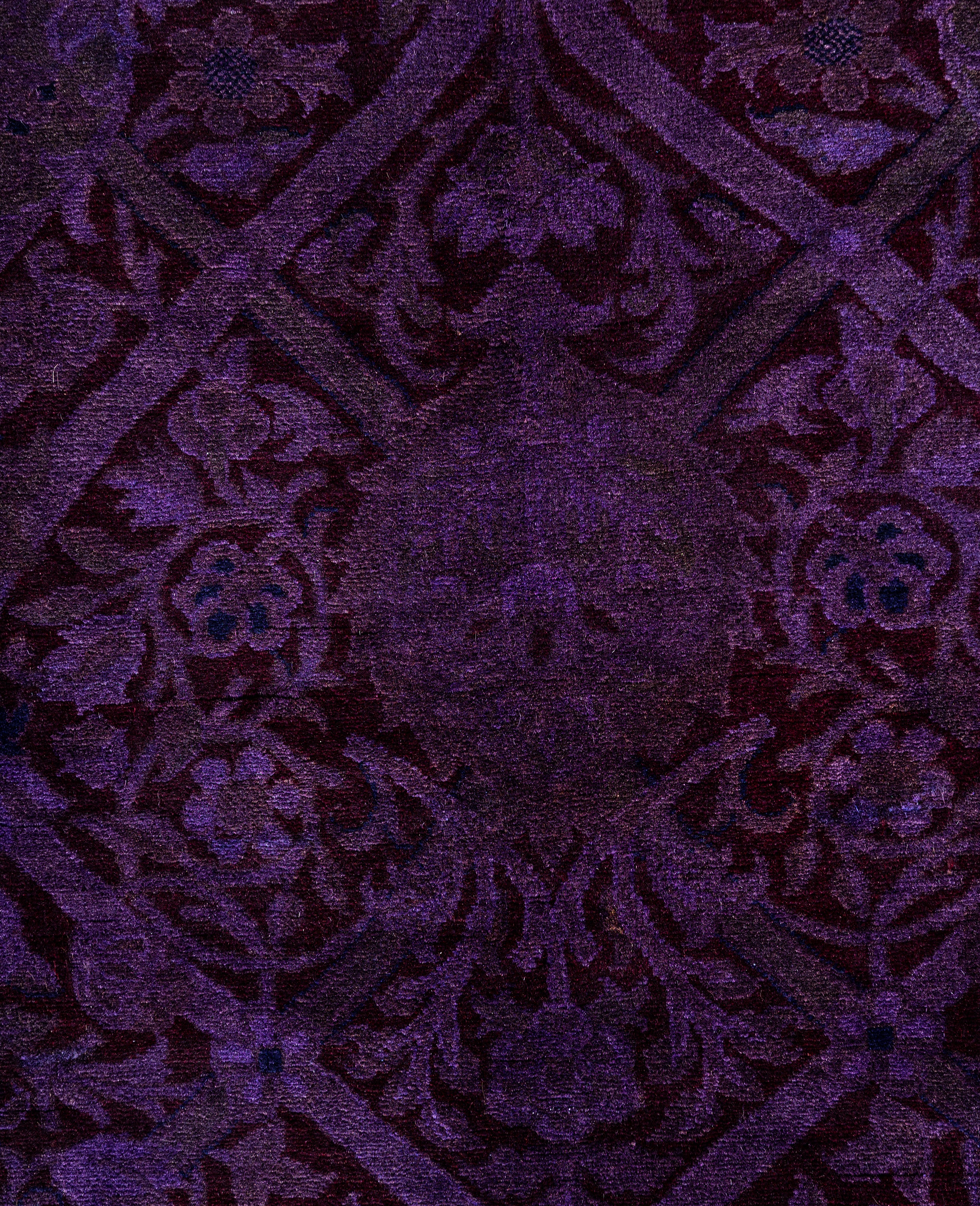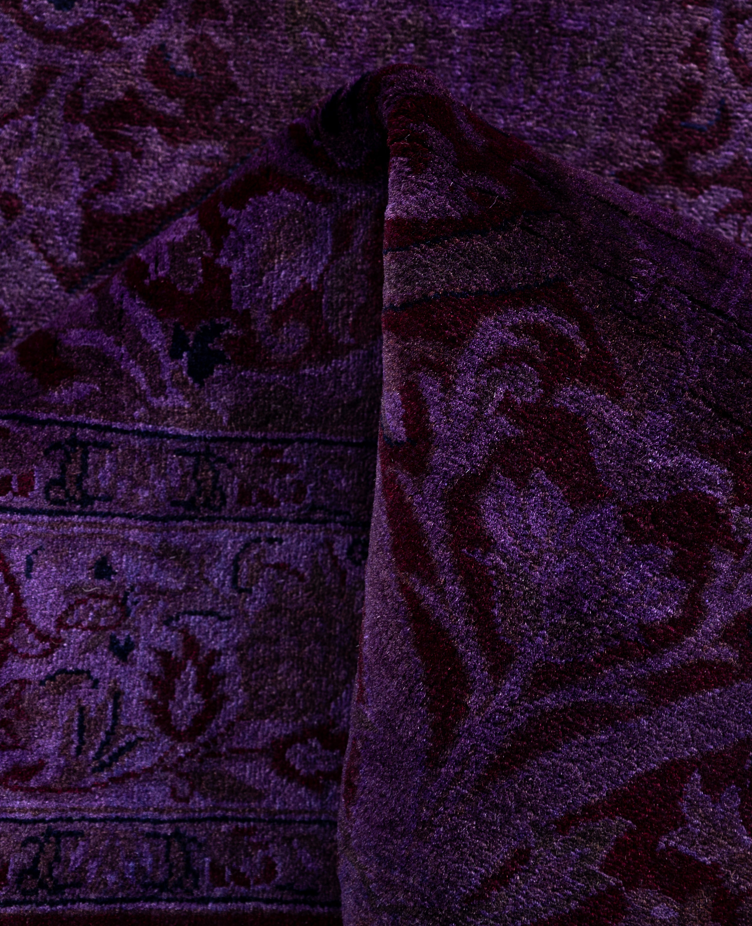 Over-dyed area rugs are created by taking vintage or traditional rugs and applying a vibrant, monochromatic dye over the existing patterns. This technique results in a bold, modern aesthetic while preserving the intricate designs beneath, blending the old with the new. The rugs are often faded and distressed before dyeing, which adds texture and depth to their appearance. The over-dye process breathes new life into worn or antique rugs, giving them a contemporary twist with rich, saturated colors like deep blues, purples, or bright reds. These rugs work well in both eclectic and modern spaces, offering a unique, artistic flair to any room. They provide a dynamic focal point, balancing between traditional craftsmanship and contemporary design trends. Over-dyed rugs are perfect for those looking to add a pop of color and character to their home decor.