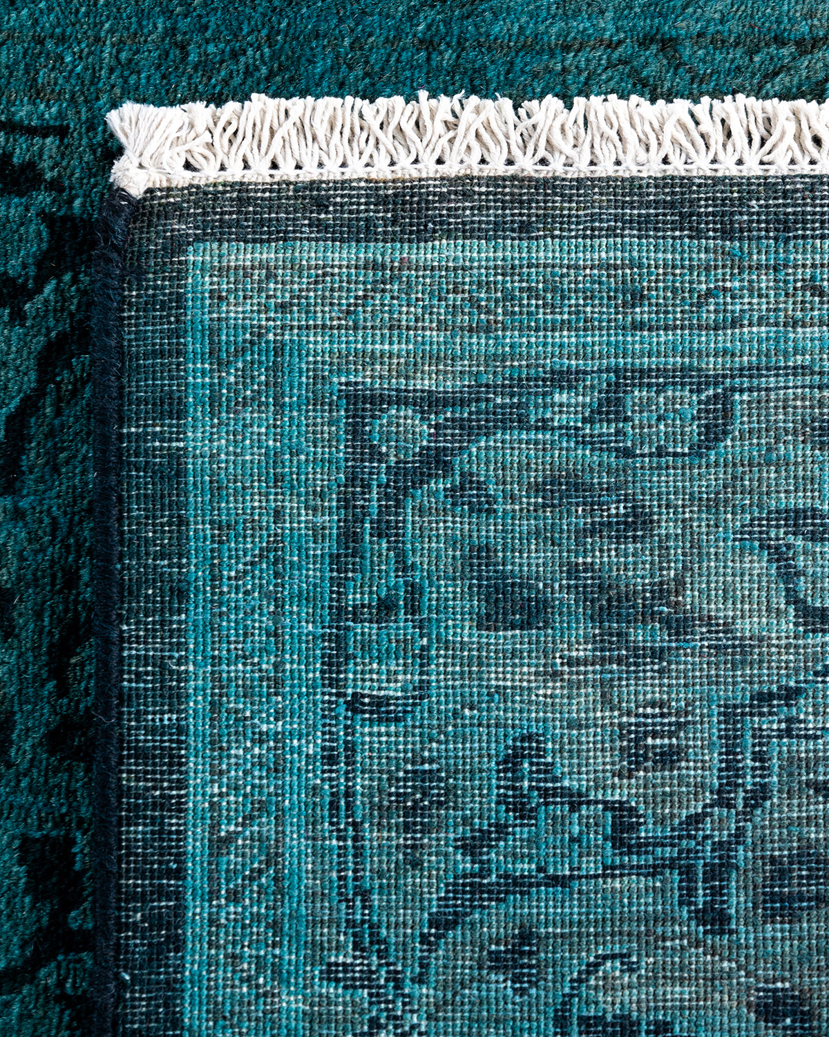 Contemporary Hand-Knotted Overdyed Blue Runner 2' 8" x 9' 10"