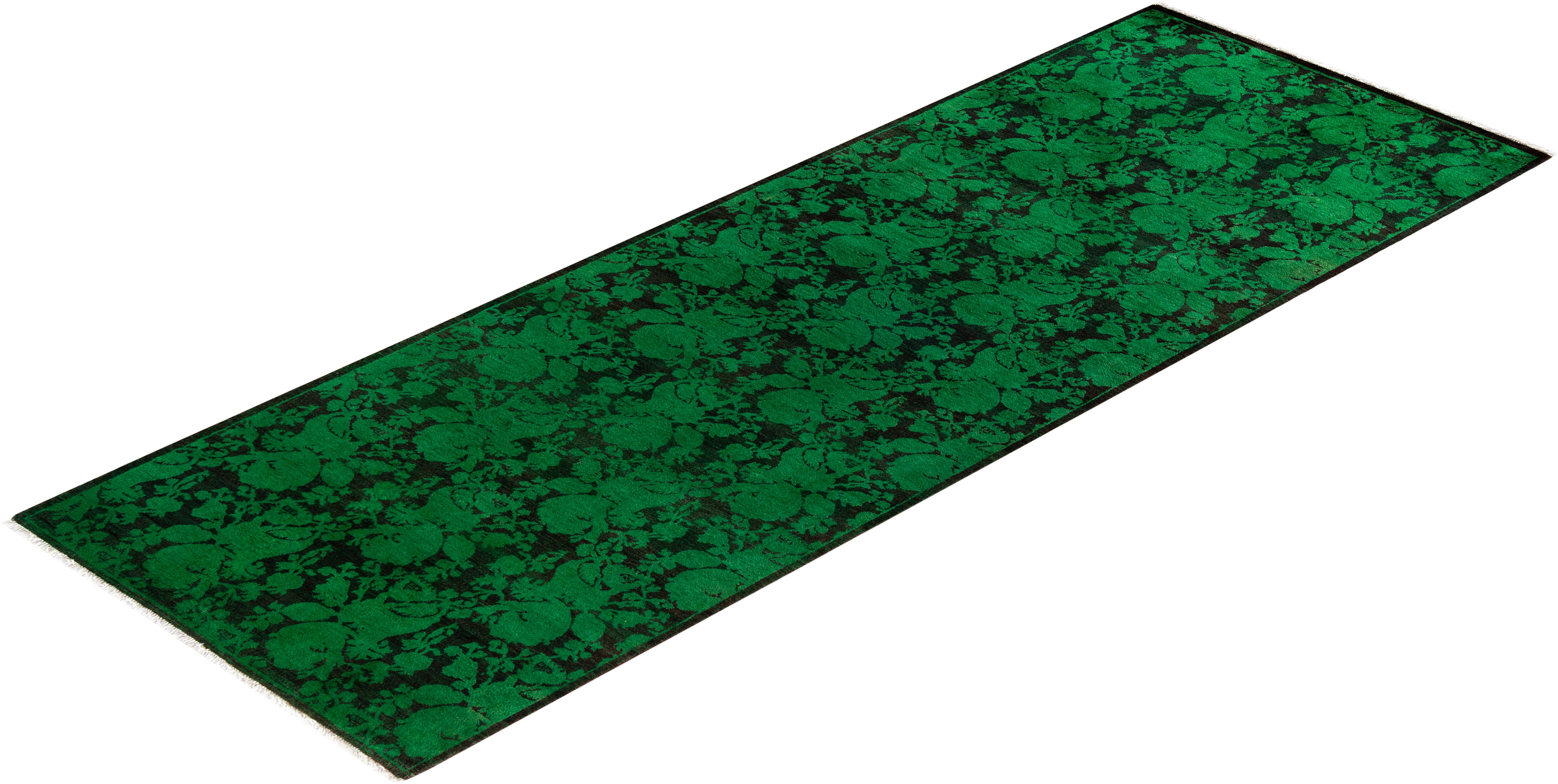 Contemporary Hand-Knotted Overdyed Green Runner 2' 8" x 7' 9"