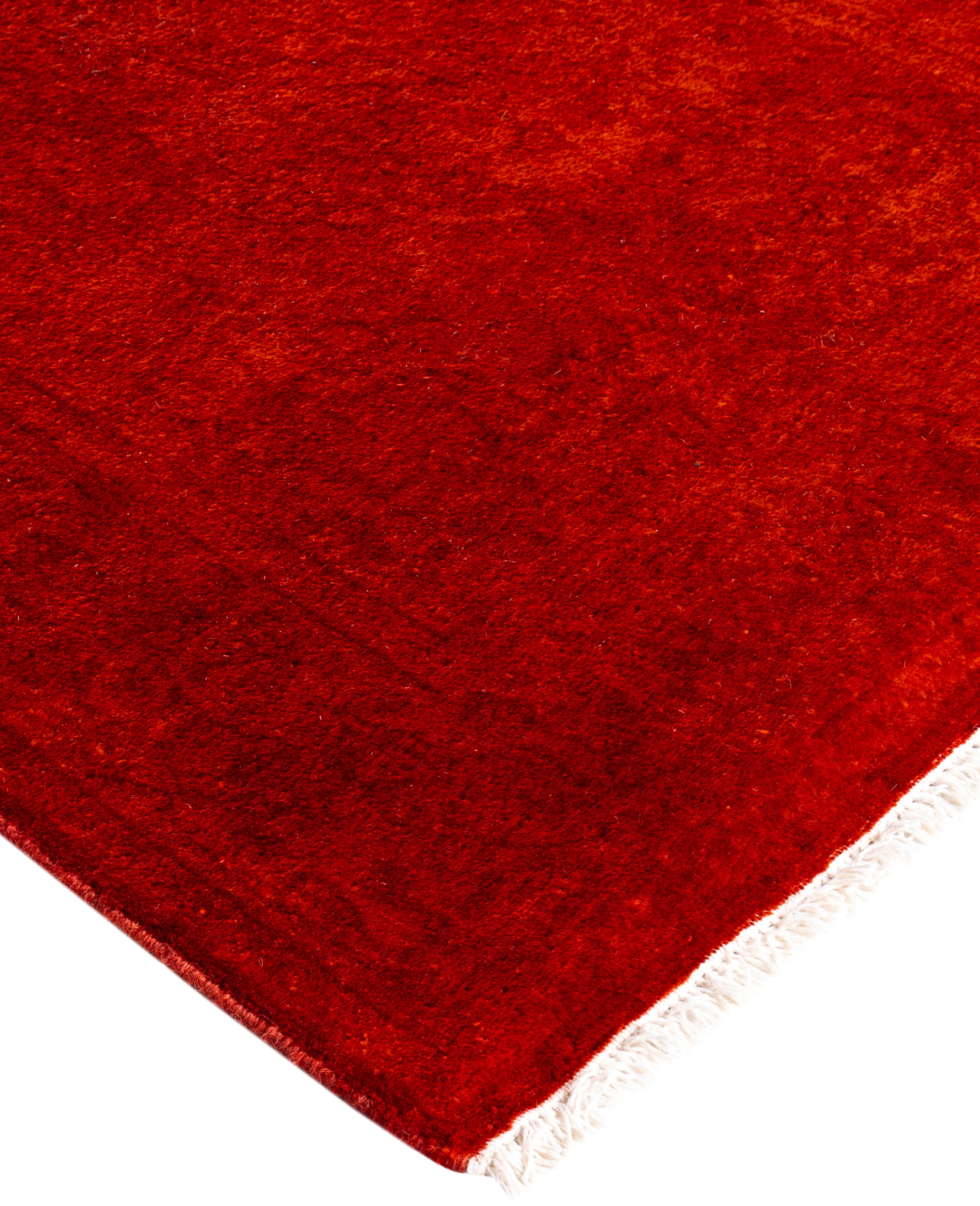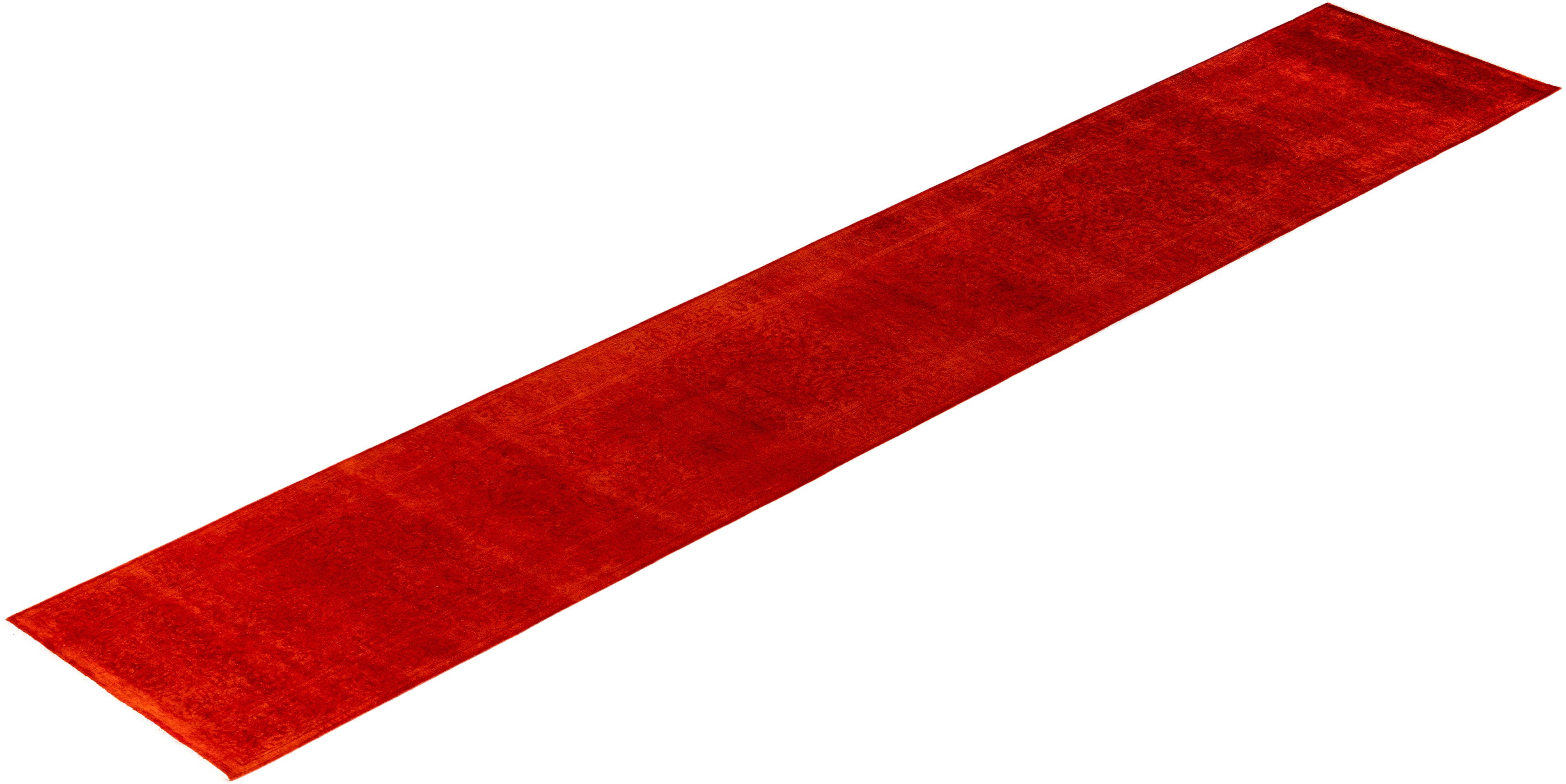 Contemporary Overdyed Wool Hand Knotted Orange Runner 2' 6" x 13' 8"