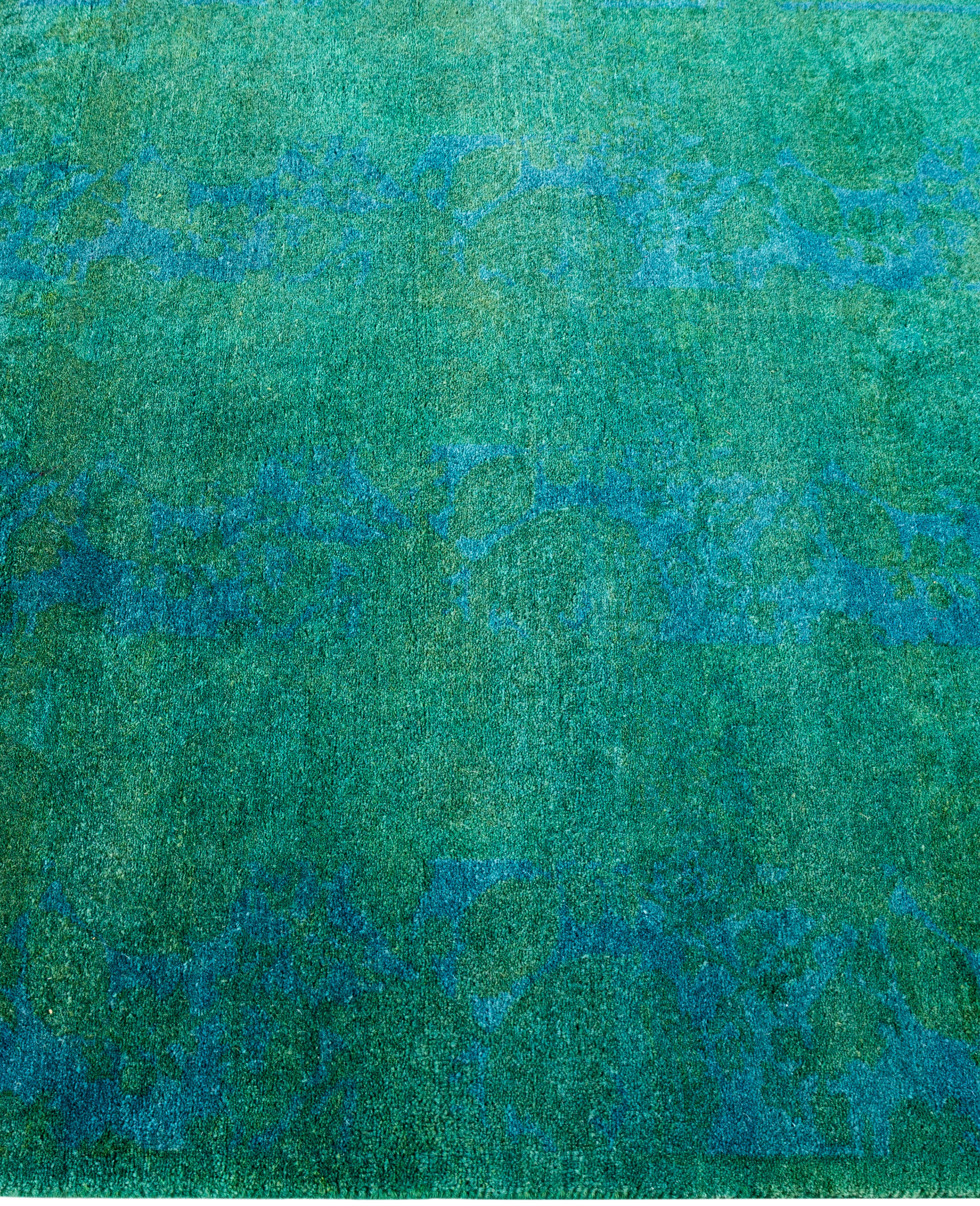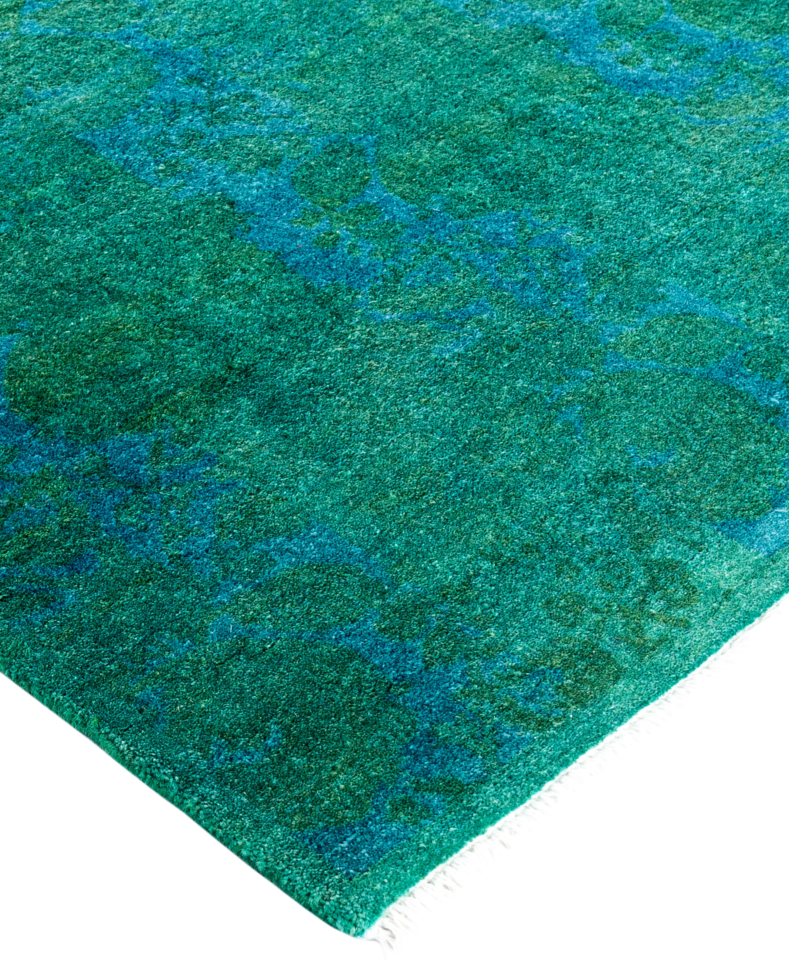 Contemporary Overdyed Wool Hand Knotted Green Runner 2' 9" x 4' 2"