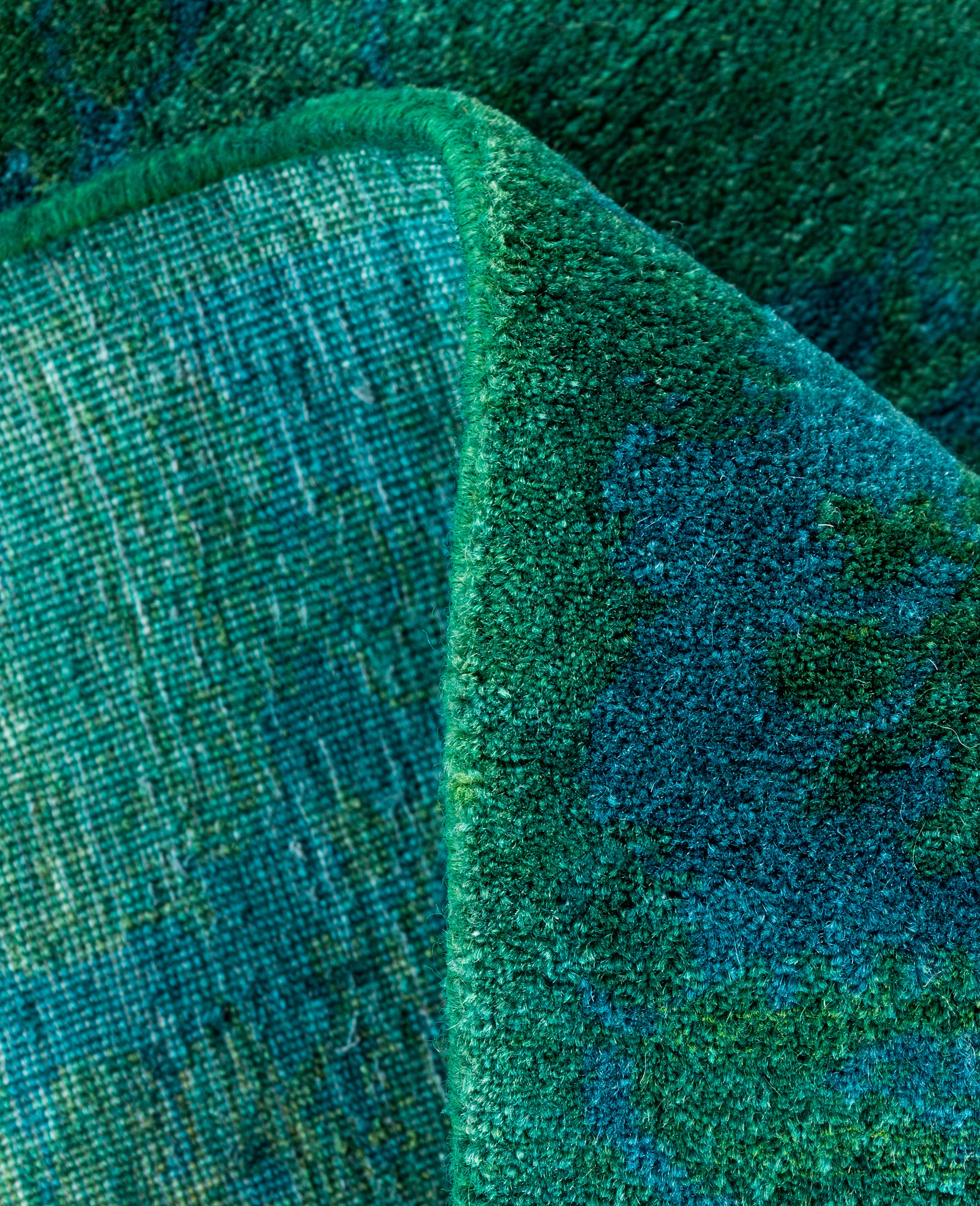 Over-dyed area rugs are created by taking vintage or traditional rugs and applying a vibrant, monochromatic dye over the existing patterns. This technique results in a bold, modern aesthetic while preserving the intricate designs beneath, blending the old with the new. The rugs are often faded and distressed before dyeing, which adds texture and depth to their appearance. The over-dye process breathes new life into worn or antique rugs, giving them a contemporary twist with rich, saturated colors like deep blues, purples, or bright reds. These rugs work well in both eclectic and modern spaces, offering a unique, artistic flair to any room. They provide a dynamic focal point, balancing between traditional craftsmanship and contemporary design trends. Over-dyed rugs are perfect for those looking to add a pop of color and character to their home decor.