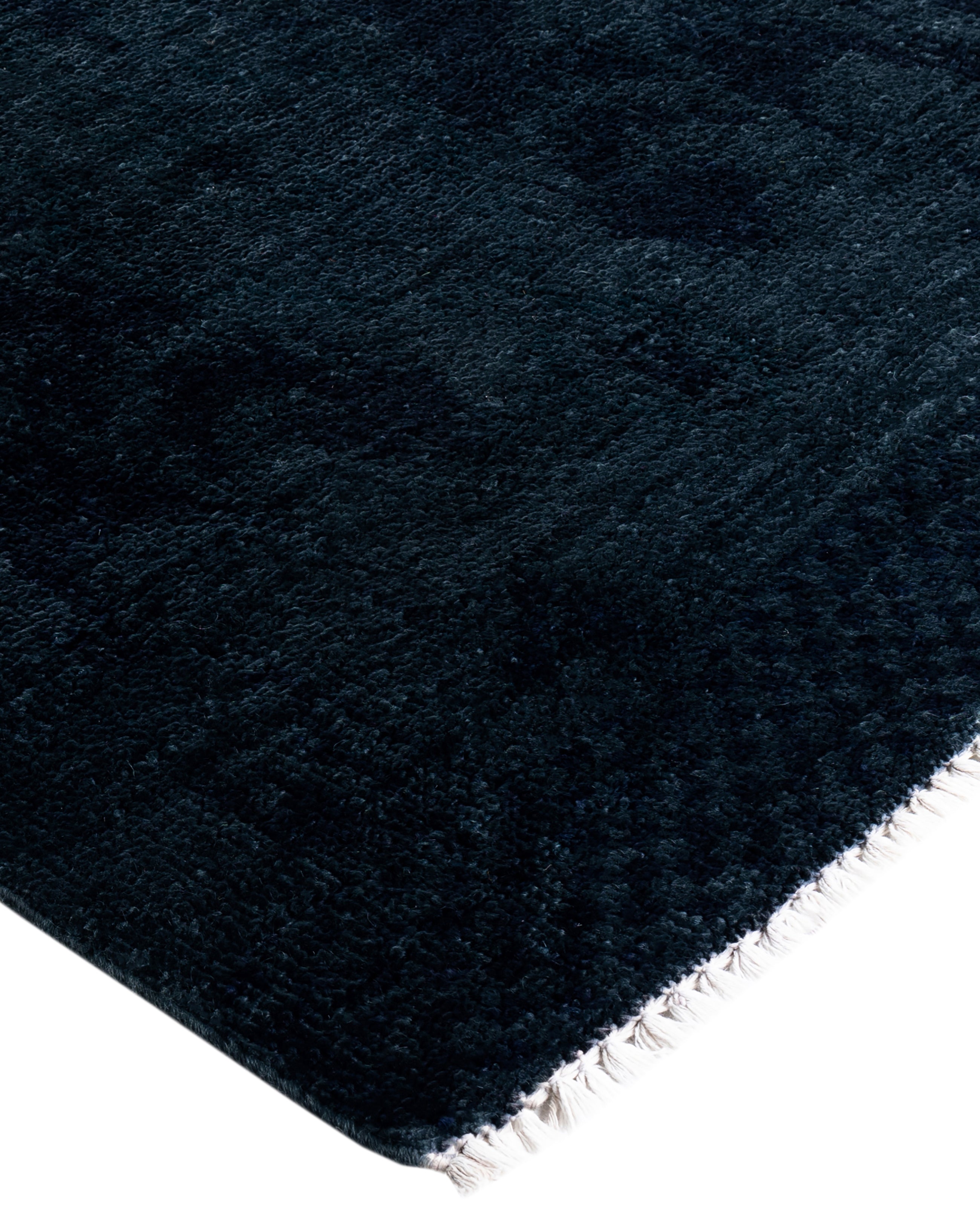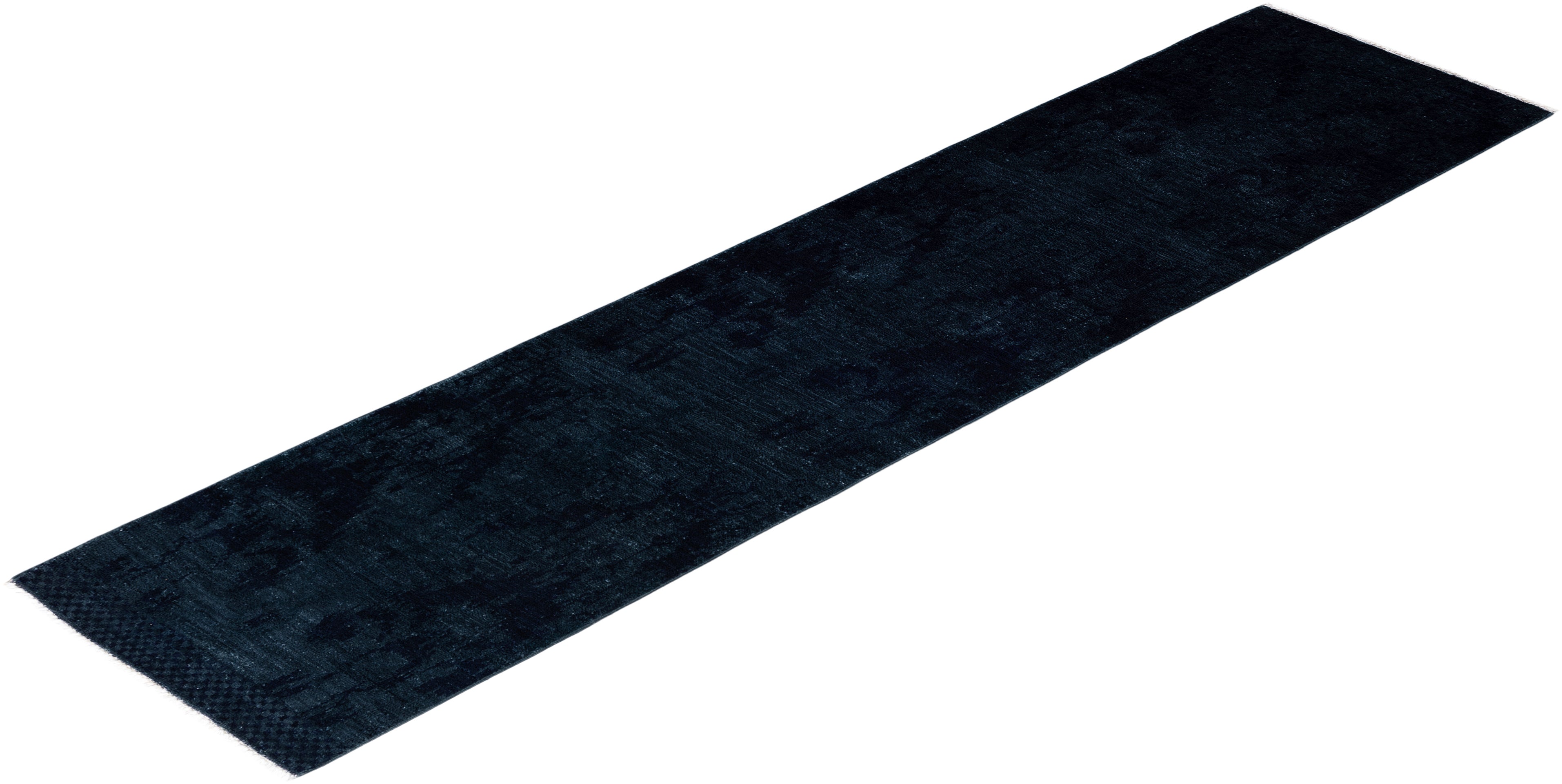 Contemporary Overdyed Wool Hand Knotted Black Runner 2' 5" x 10' 4"