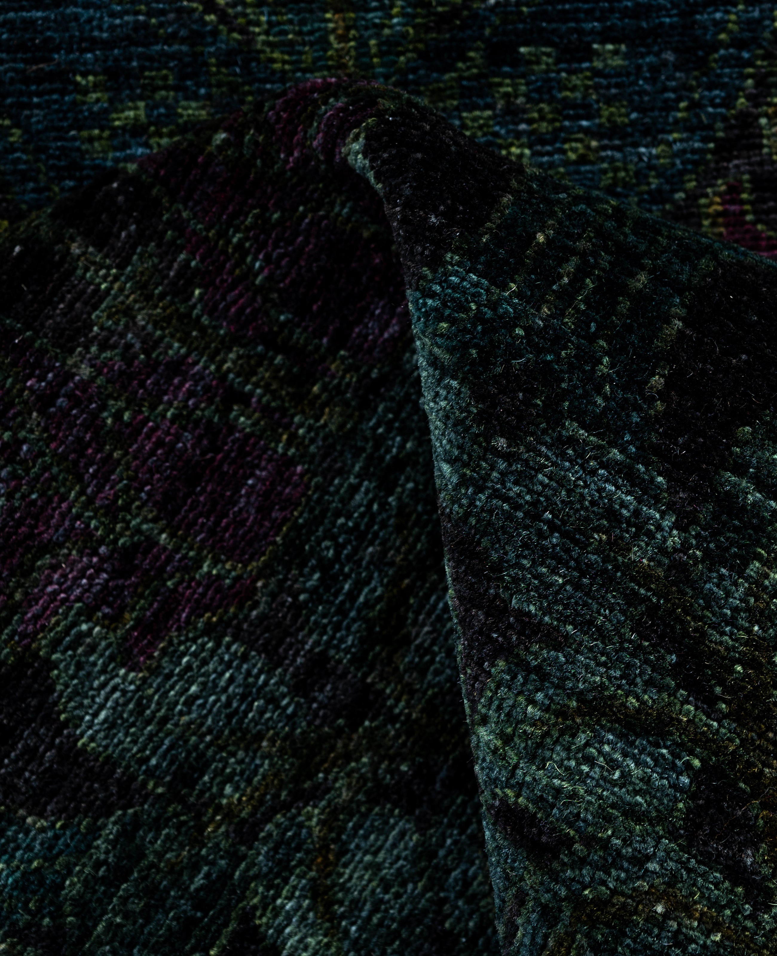 Over-dyed area rugs are created by taking vintage or traditional rugs and applying a vibrant, monochromatic dye over the existing patterns. This technique results in a bold, modern aesthetic while preserving the intricate designs beneath, blending the old with the new. The rugs are often faded and distressed before dyeing, which adds texture and depth to their appearance. The over-dye process breathes new life into worn or antique rugs, giving them a contemporary twist with rich, saturated colors like deep blues, purples, or bright reds. These rugs work well in both eclectic and modern spaces, offering a unique, artistic flair to any room. They provide a dynamic focal point, balancing between traditional craftsmanship and contemporary design trends. Over-dyed rugs are perfect for those looking to add a pop of color and character to their home decor.