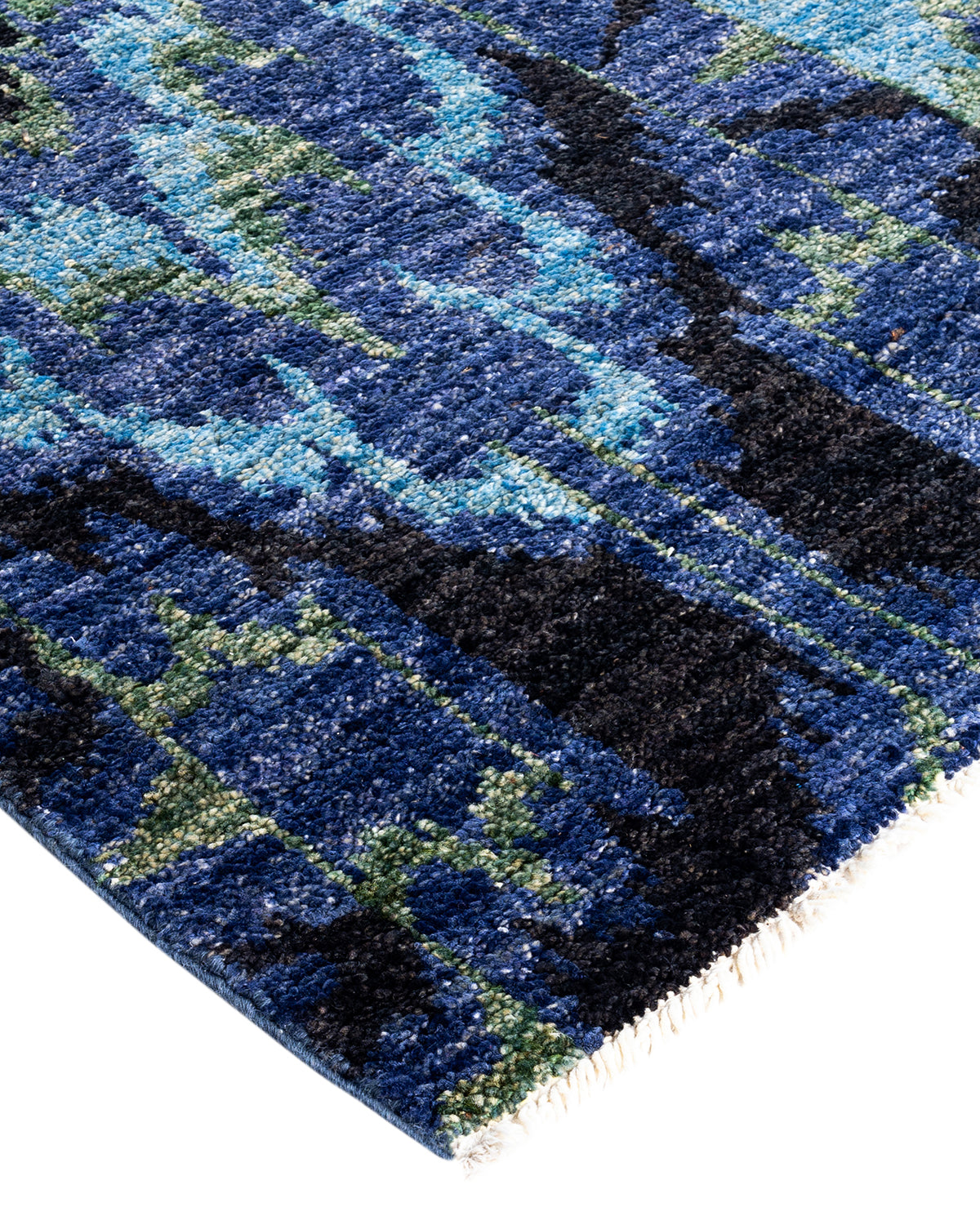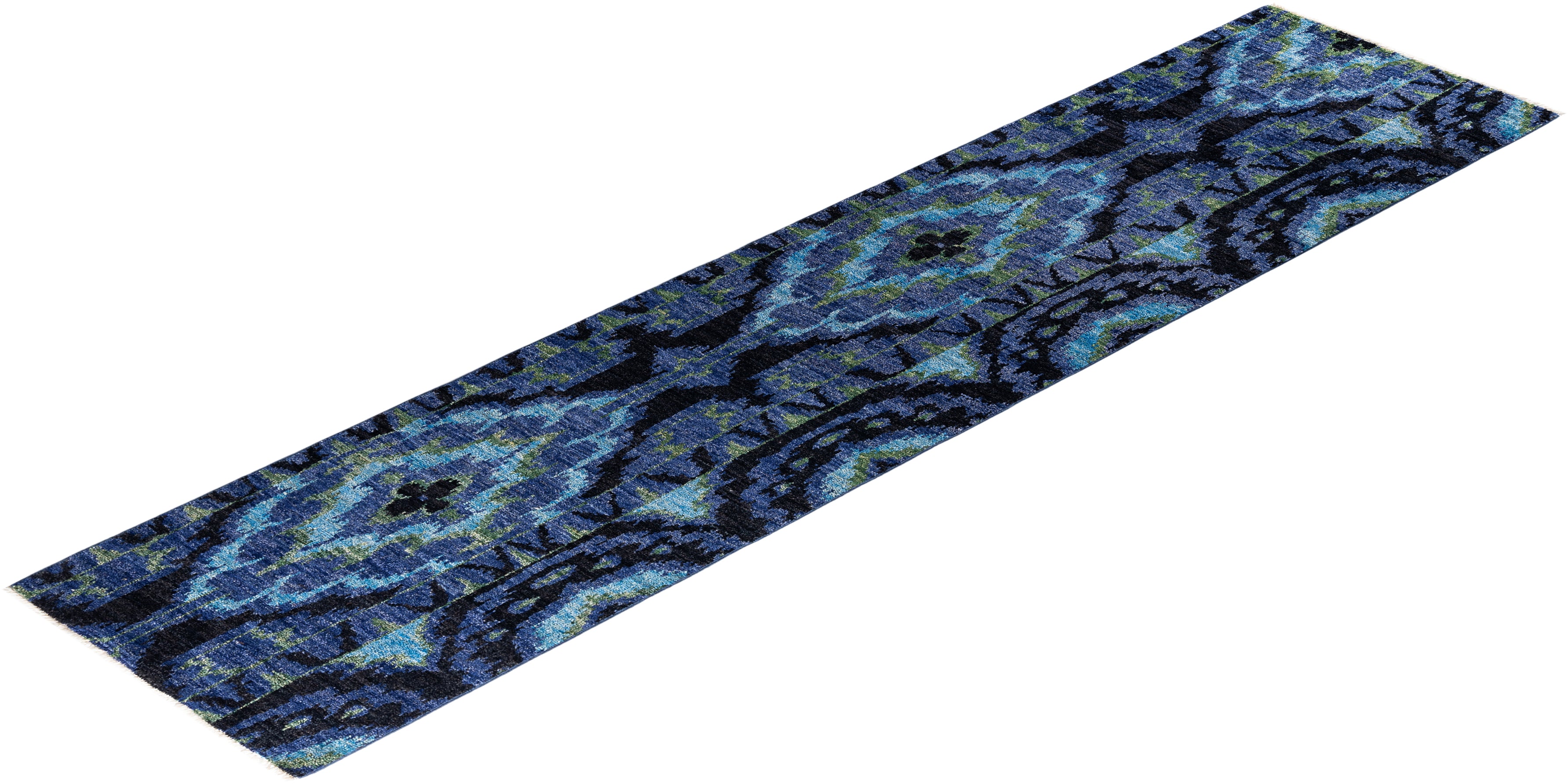 Contemporary Hand-Knotted Modern Abstract Black Runner 2' 6" x 10' 8"