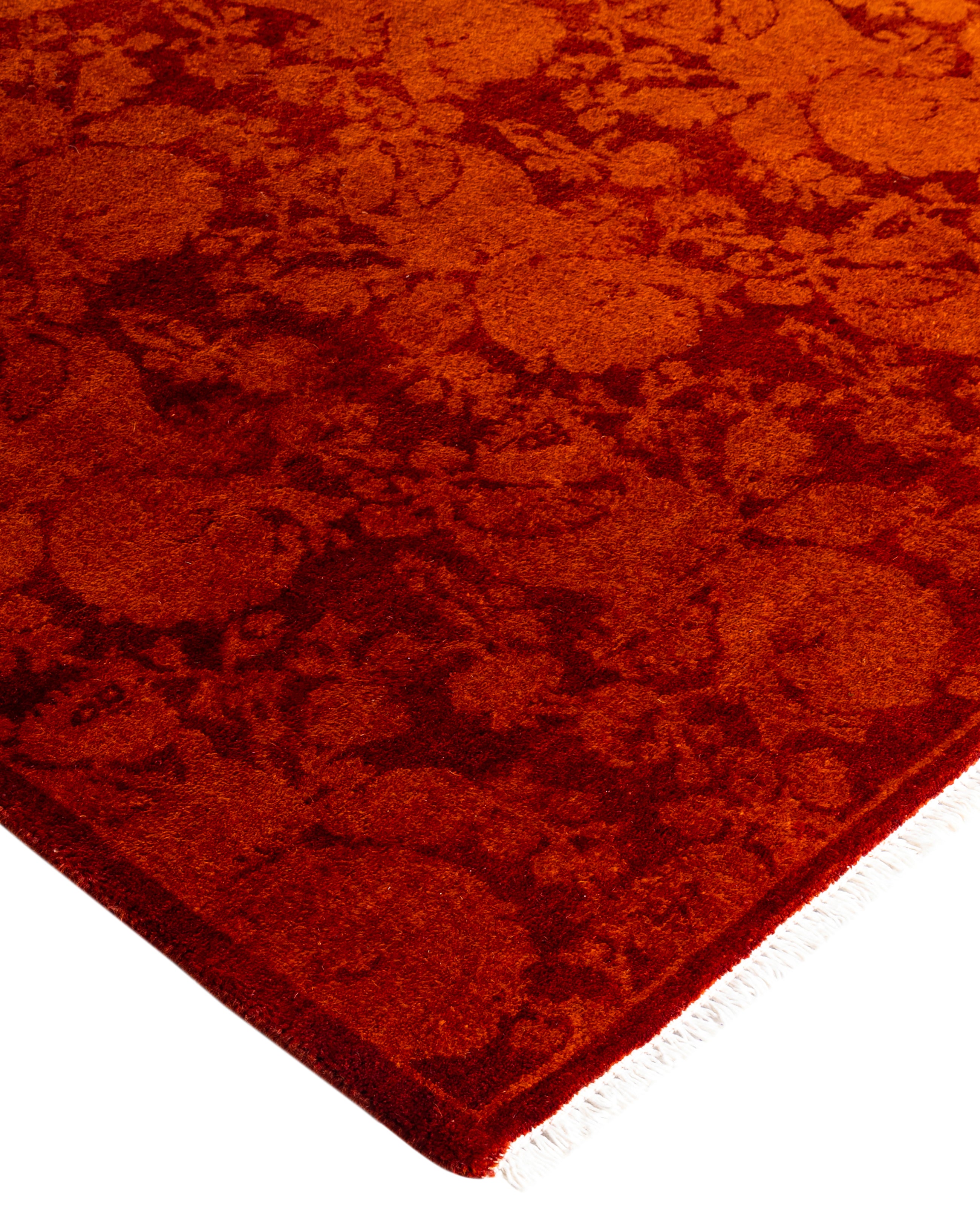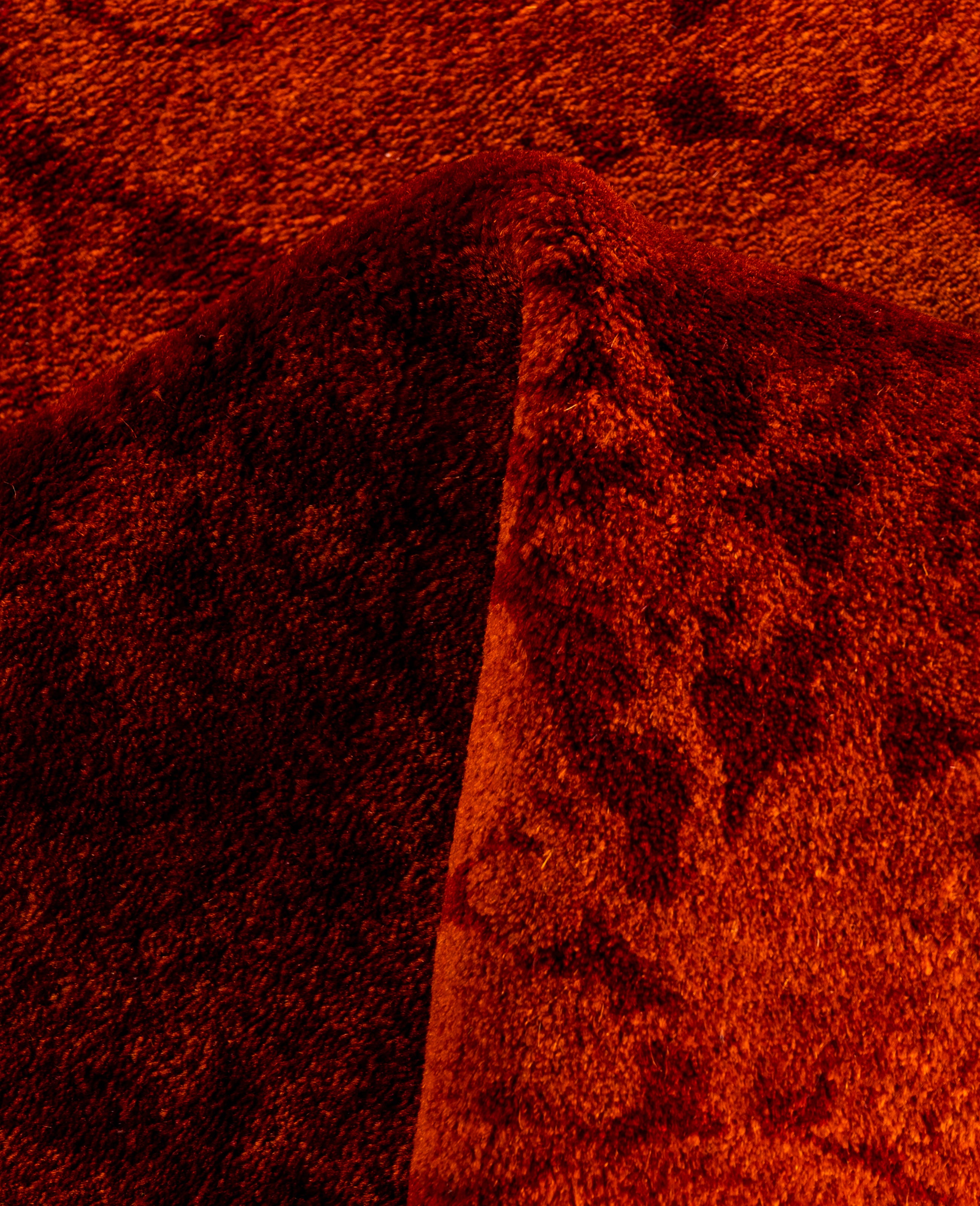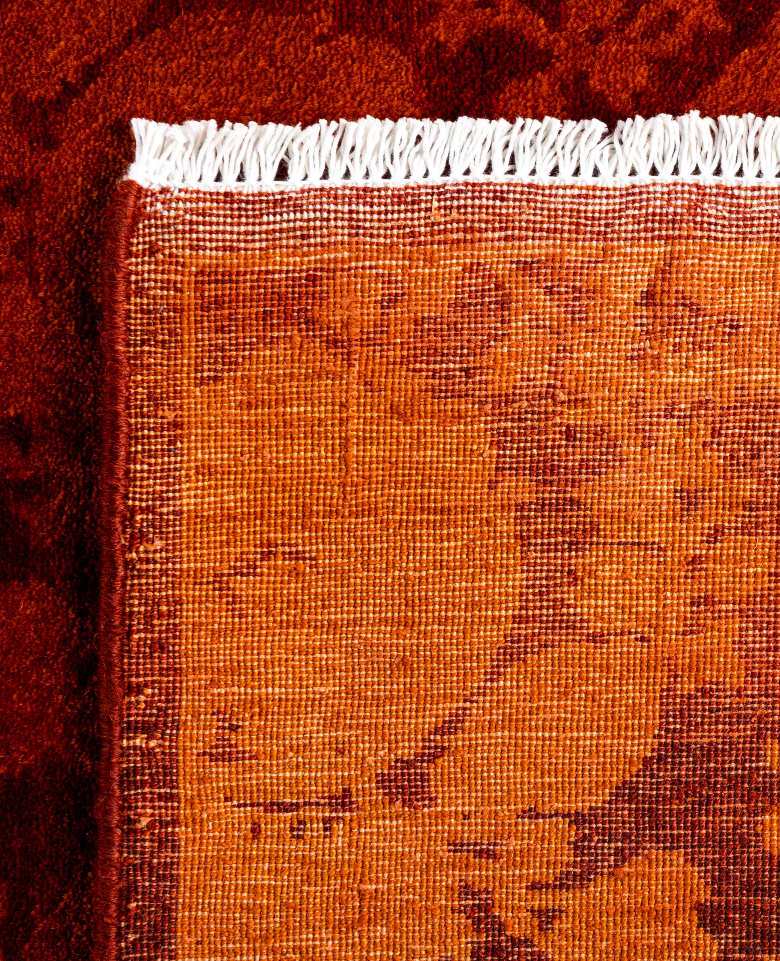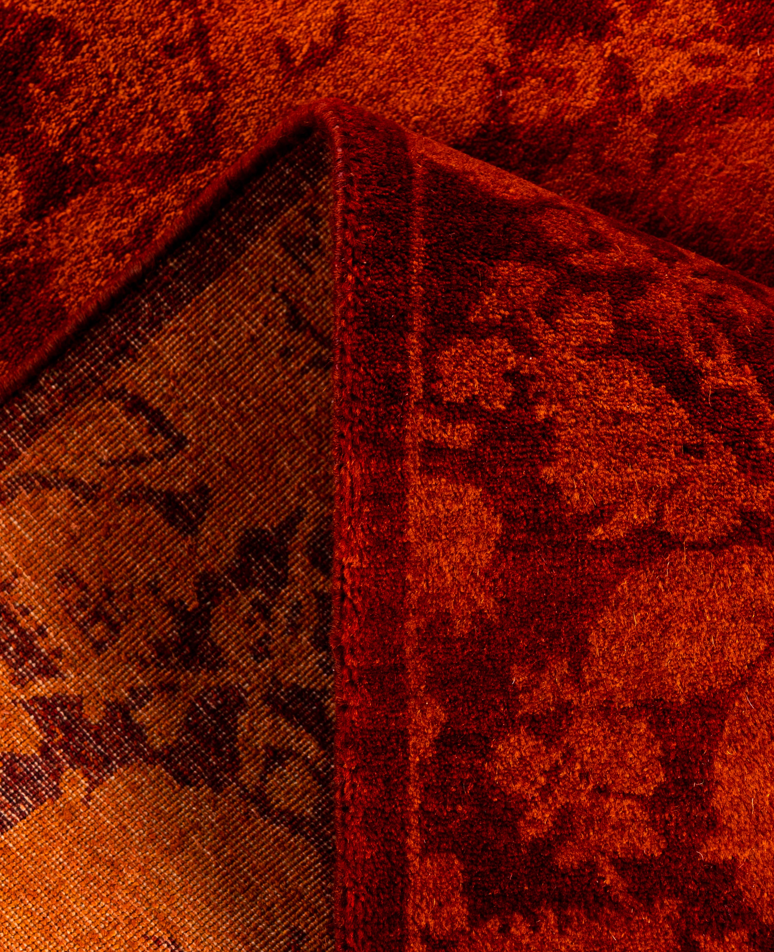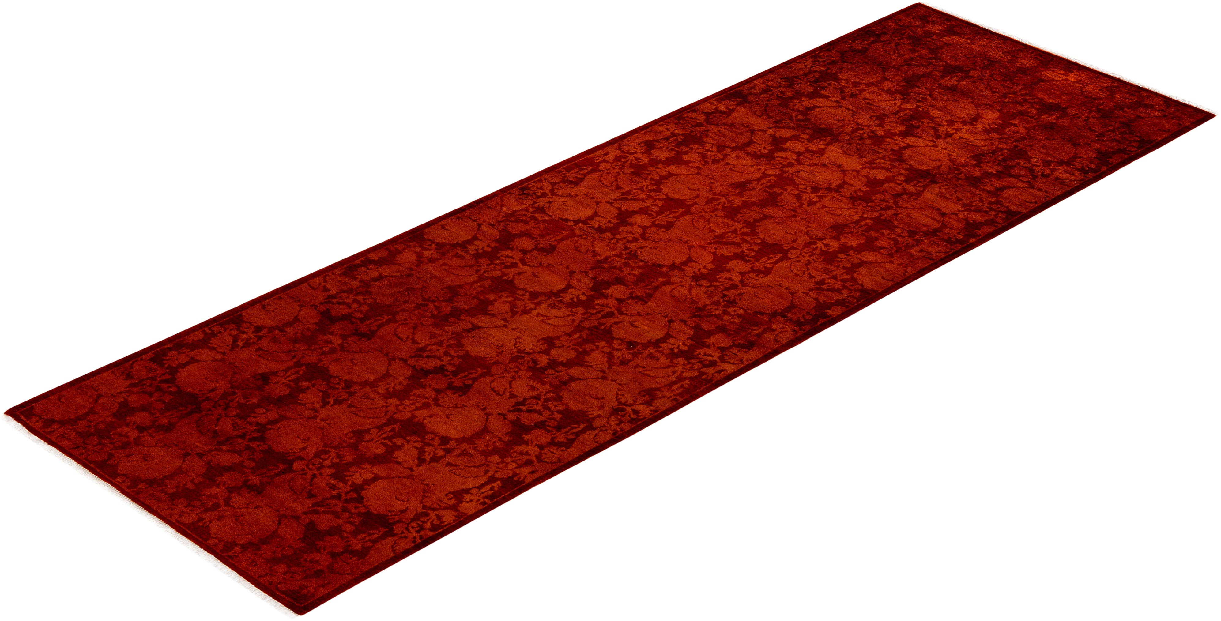 Contemporary Overdyed Wool Hand Knotted Orange Runner 2' 8" x 8' 1"