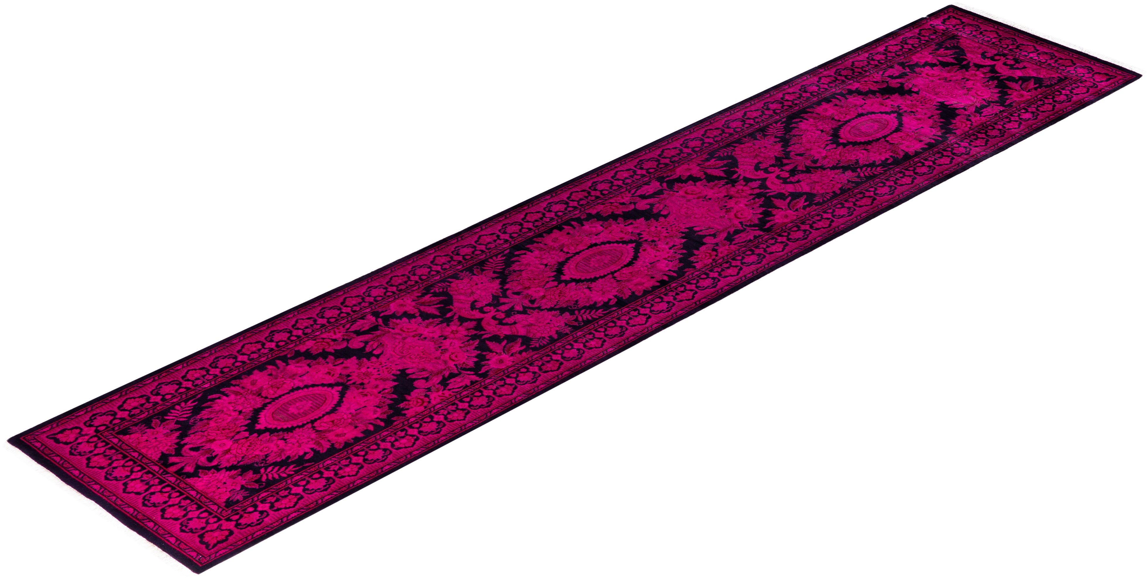 Contemporary Overdyed Wool Hand Knotted Pink Runner 2' 6" x 12' 3"