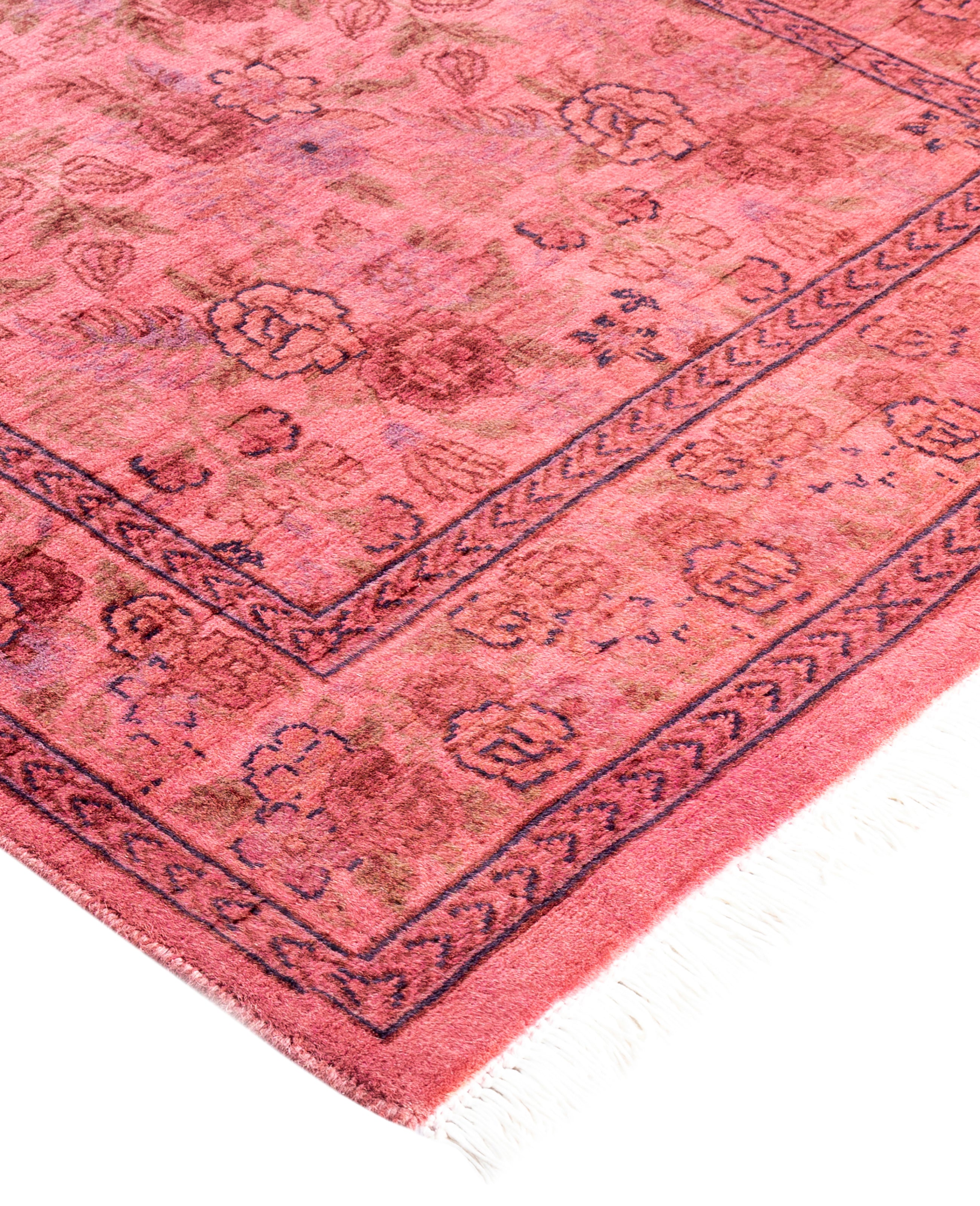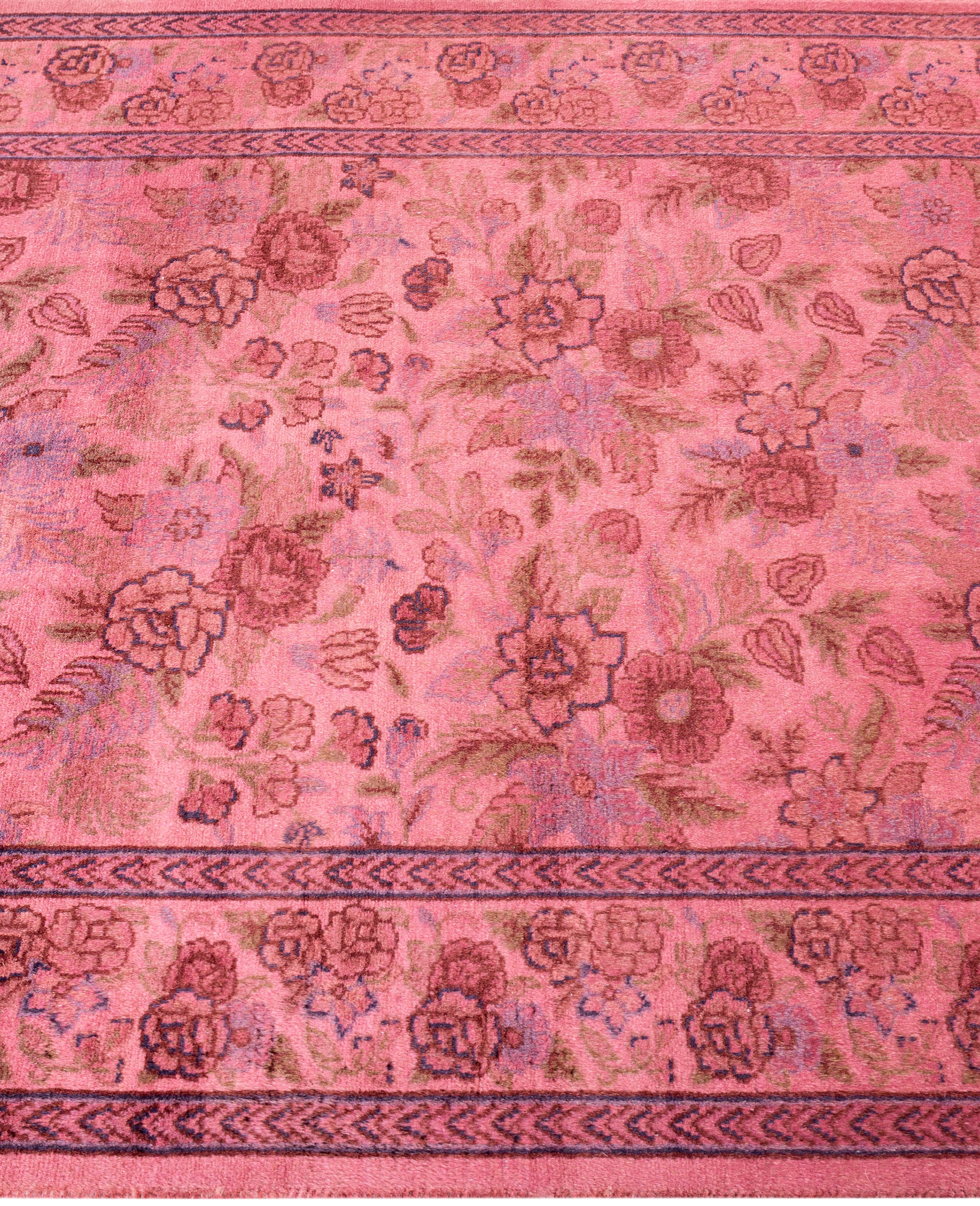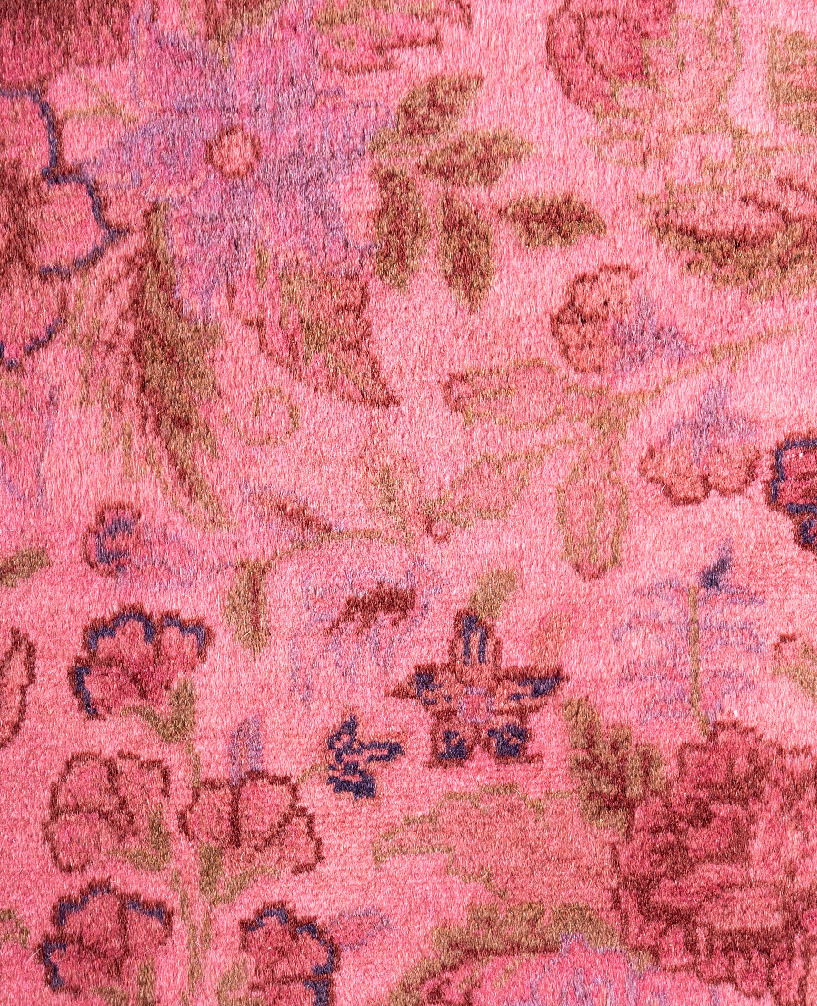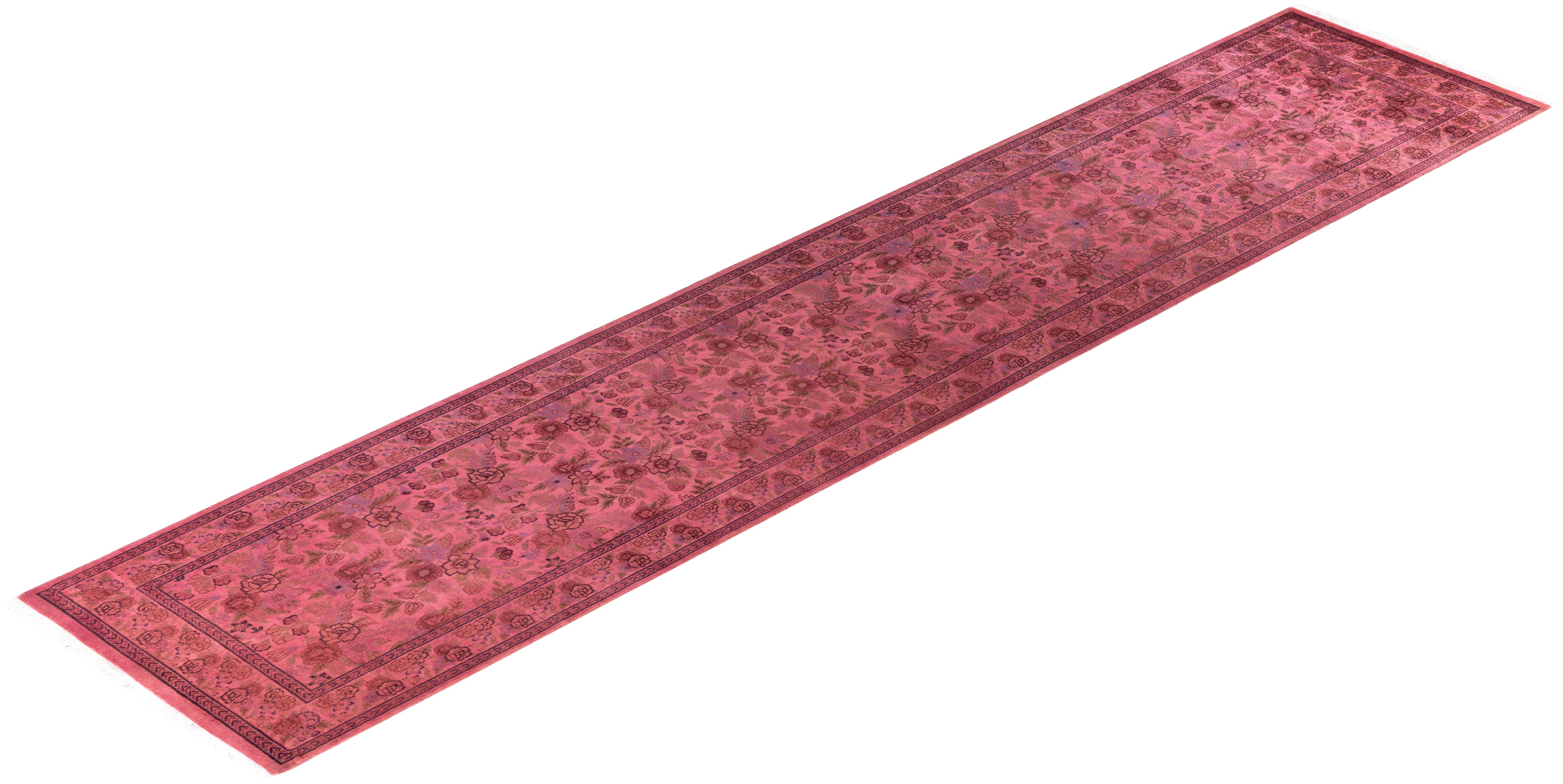 Contemporary Overdyed Wool Hand Knotted Pink Runner 2' 6" x 12' 3"
