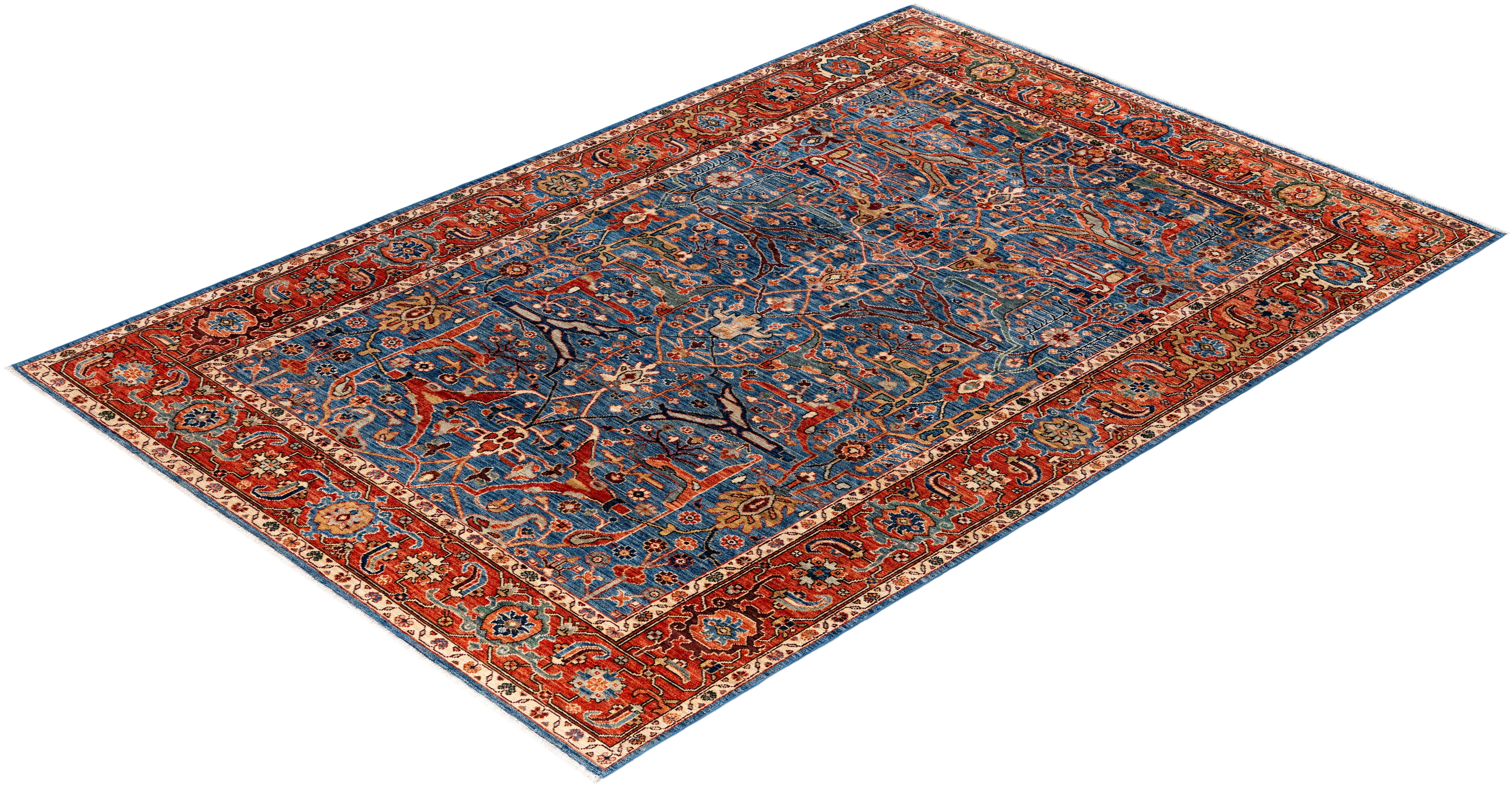 Serapi One of a kind Wool Light Blue Area Rug 6' 1" x 9' 0"