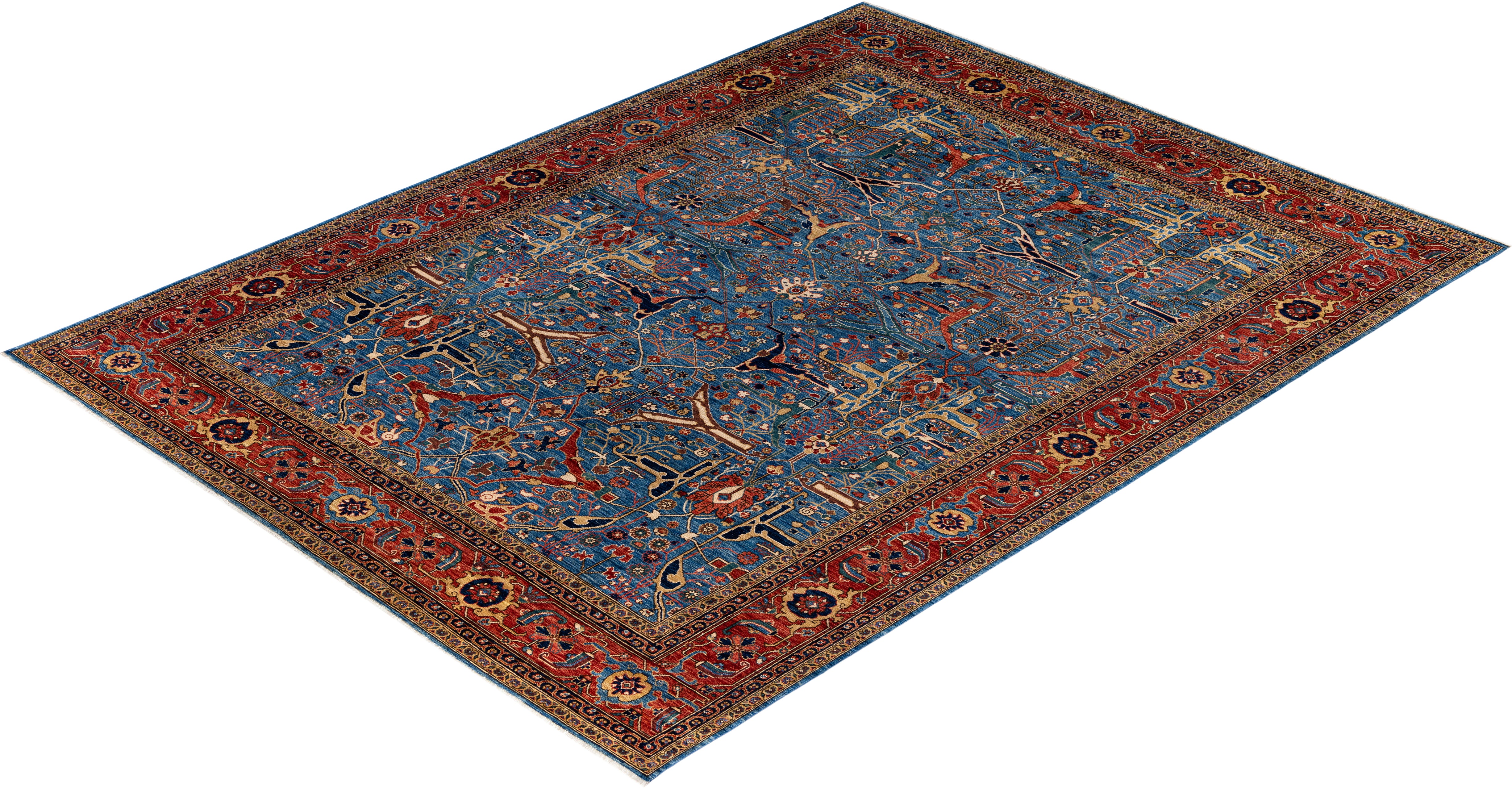 Serapi One of a kind Wool Light Blue Area Rug 9' 0" x 11' 11"