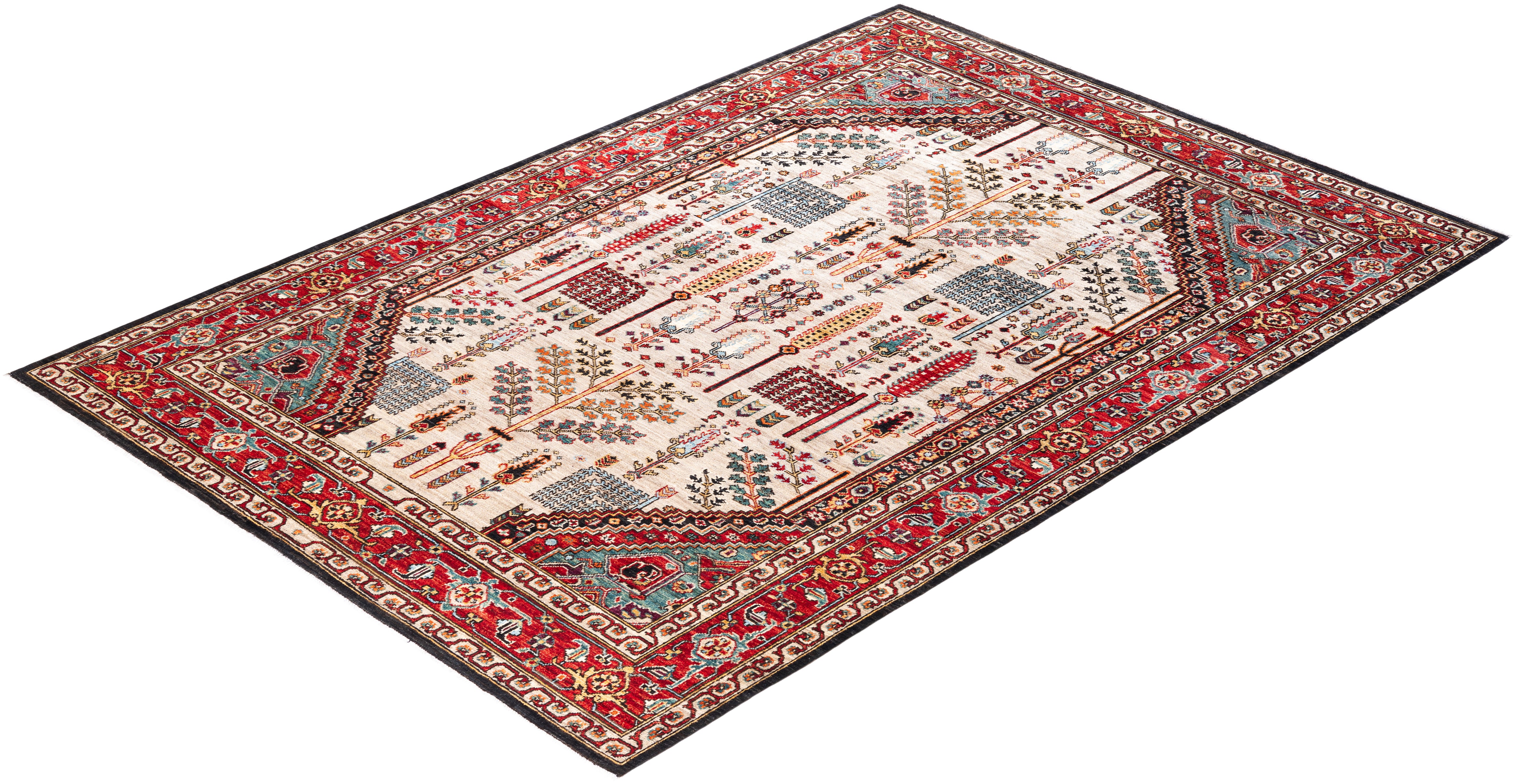 Traditional Hand-Knotted Serapi Beige Area Rug 6' 3" x 9' 1"