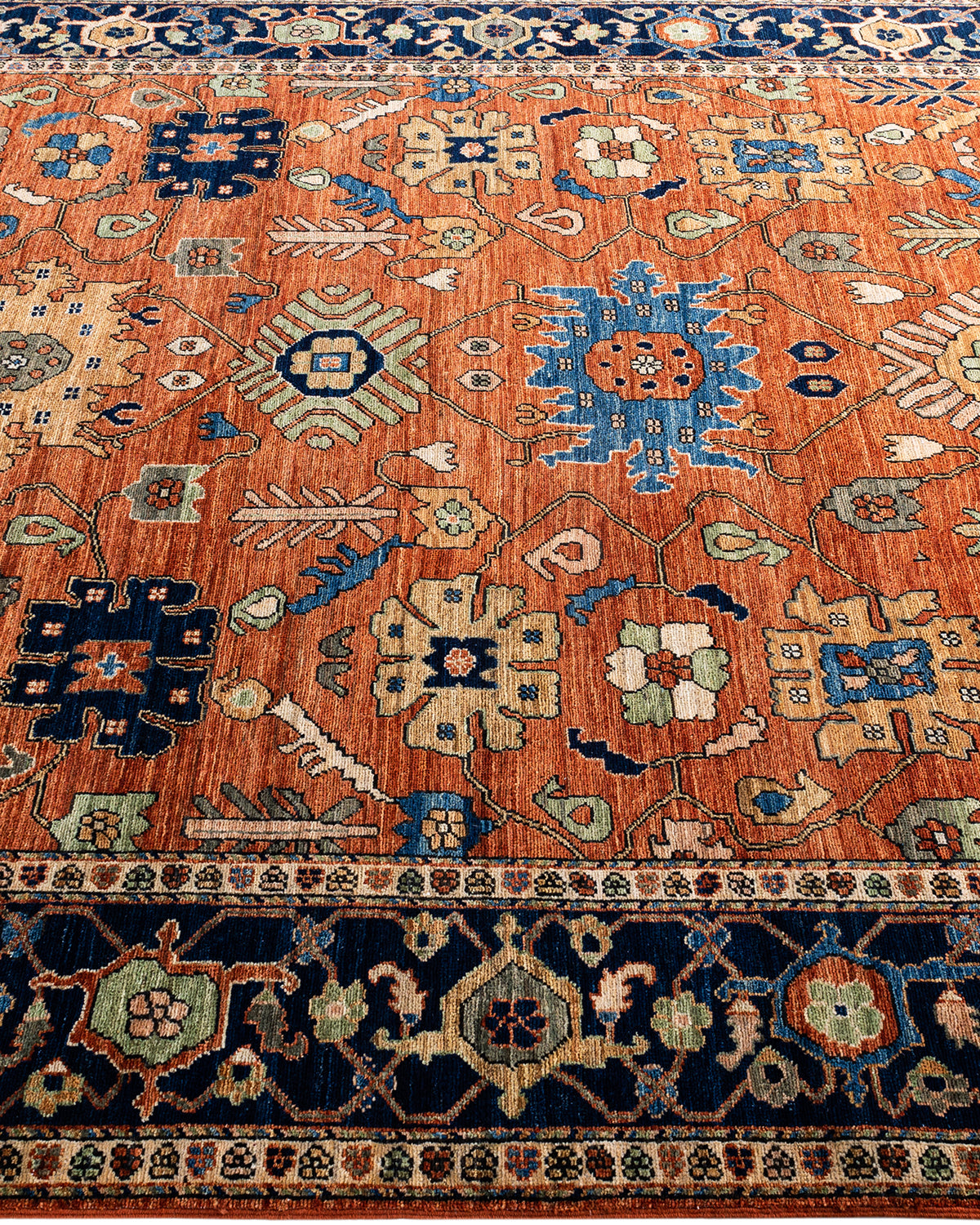 Persian rug-making at its finest inspired the rich colors, elaborate geometric motifs, and botanical detailing of the Serapi collection. With as many as 100 knots per inch, these handcrafted rugs are as durable as they are visually stunning, and they will maintain their time-honored allure for years, if not generations.