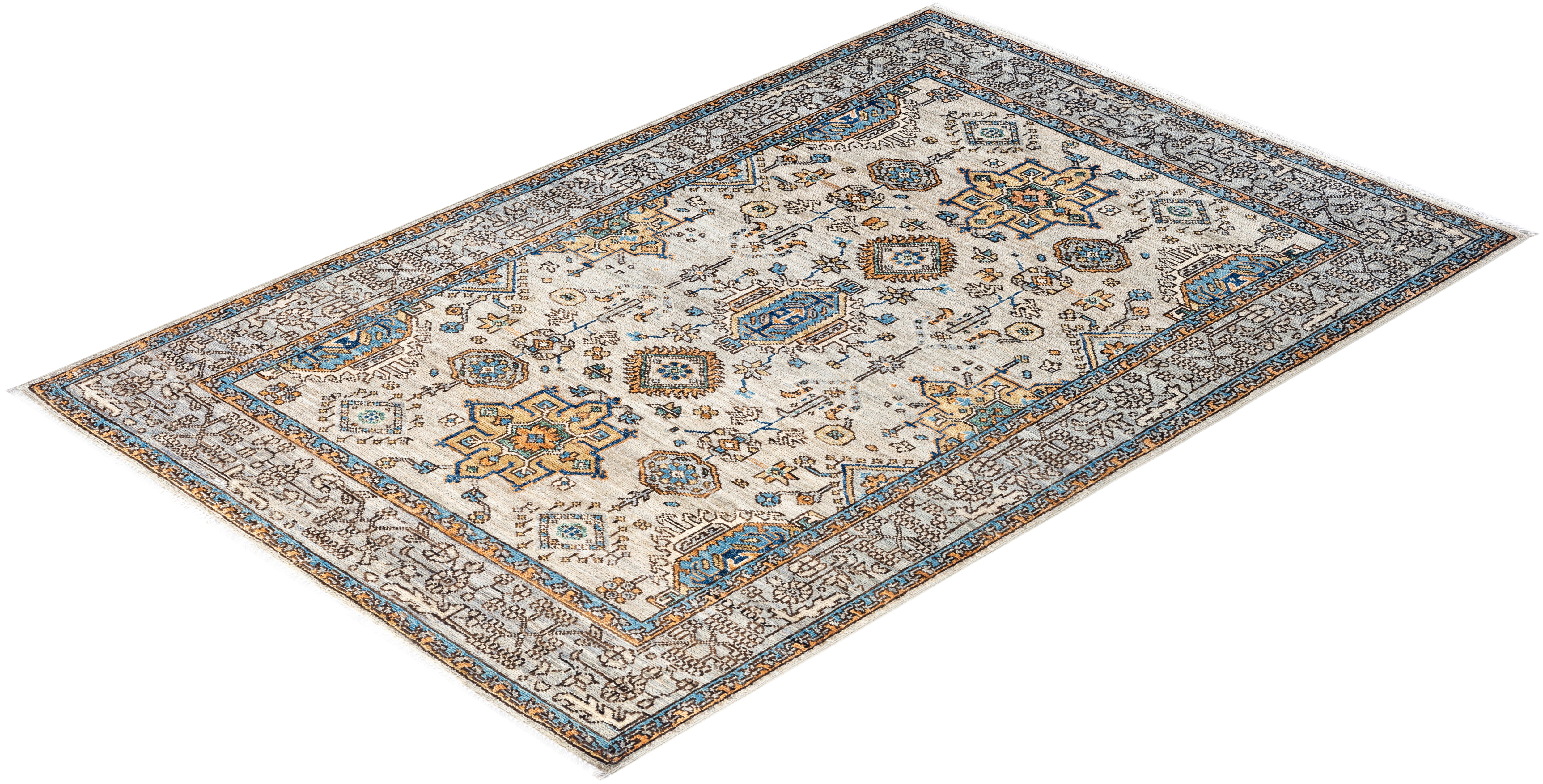 Traditional Hand-Knotted Serapi Beige Area Rug 3' 11" x 5' 10"
