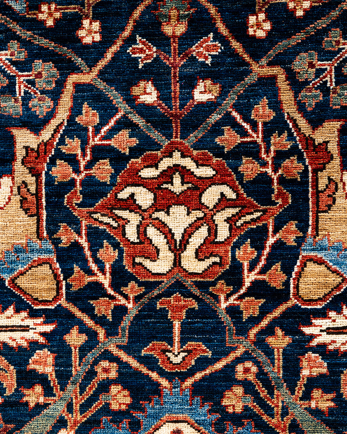 Persian rug-making at its finest inspired the rich colors, elaborate geometric motifs, and botanical detailing of the Serapi collection. With as many as 100 knots per inch, these handcrafted rugs are as durable as they are visually stunning, and they will maintain their time-honored allure for years, if not generations.