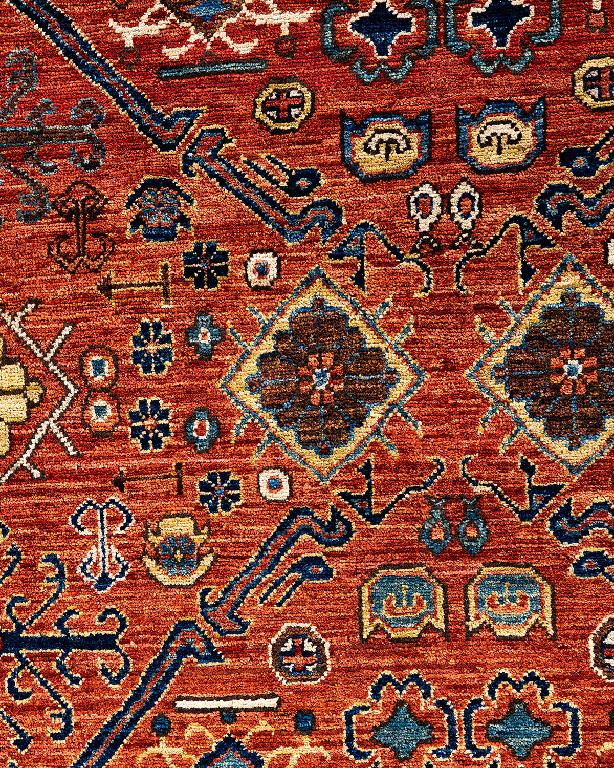 Persian rug-making at its finest inspired the rich colors, elaborate geometric motifs, and botanical detailing of the Serapi collection. With as many as 100 knots per inch, these handcrafted rugs are as durable as they are visually stunning, and they will maintain their time-honored allure for years, if not generations.