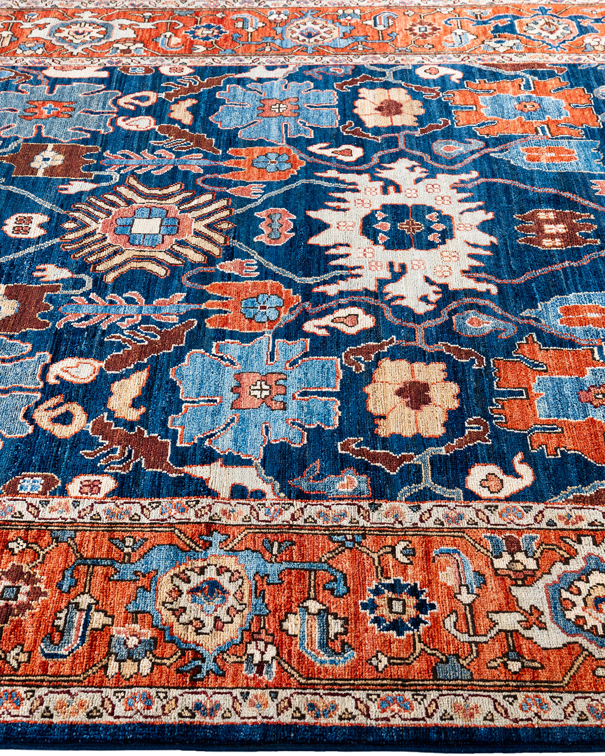 Persian rug-making at its finest inspired the rich colors, elaborate geometric motifs, and botanical detailing of the Serapi collection. With as many as 100 knots per inch, these handcrafted rugs are as durable as they are visually stunning, and they will maintain their time-honored allure for years, if not generations.