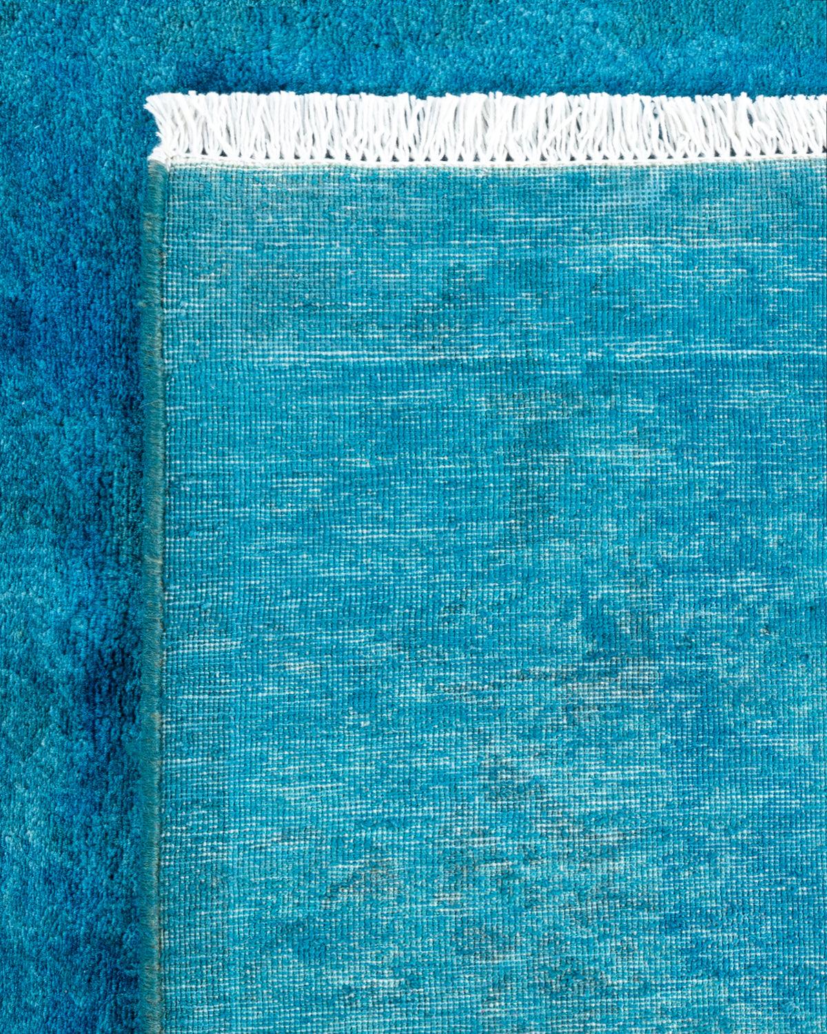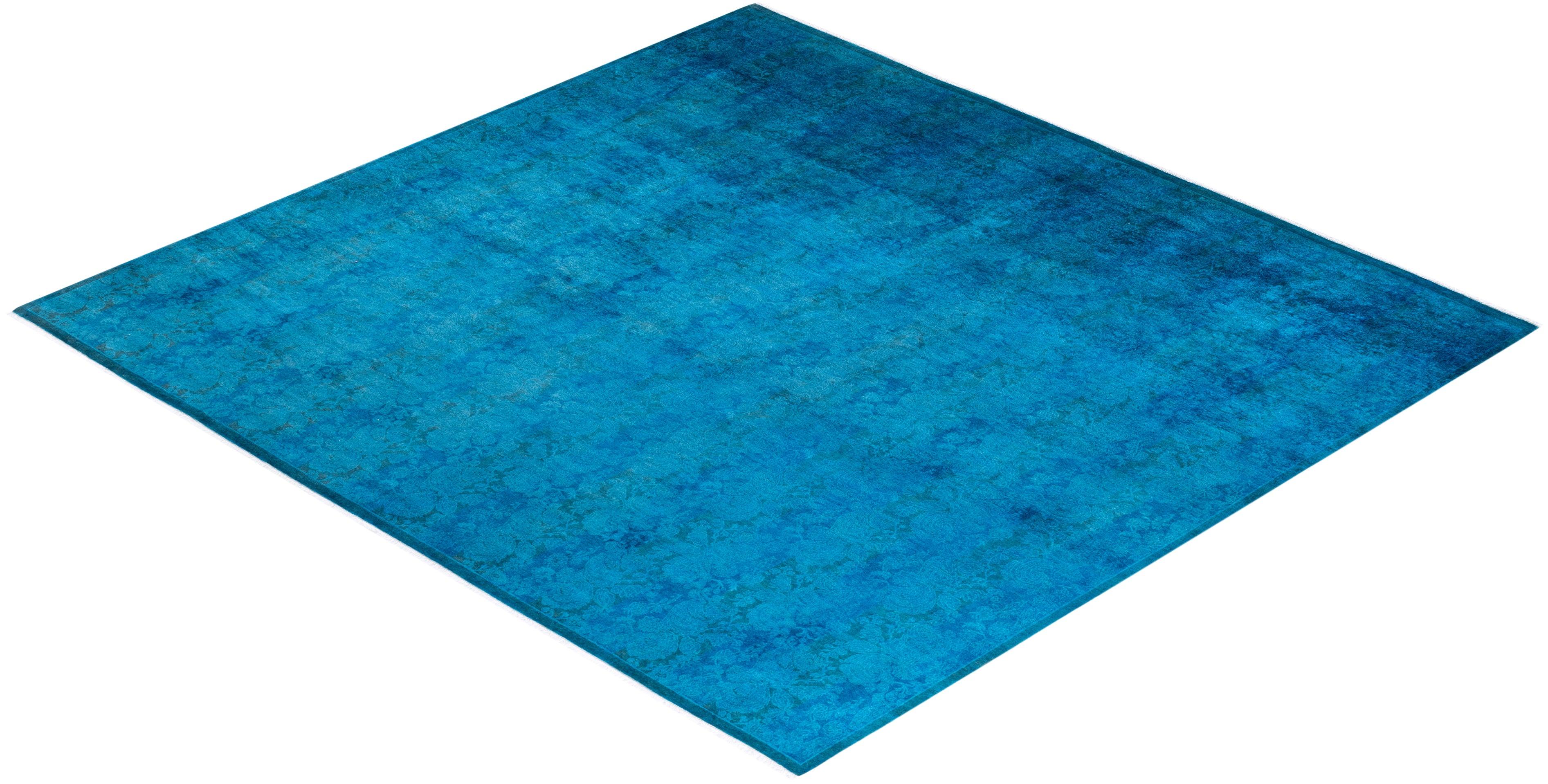 Contemporary Hand Knotted Overdyed Blue Square Area Rug 8' 0" x 8' 4"