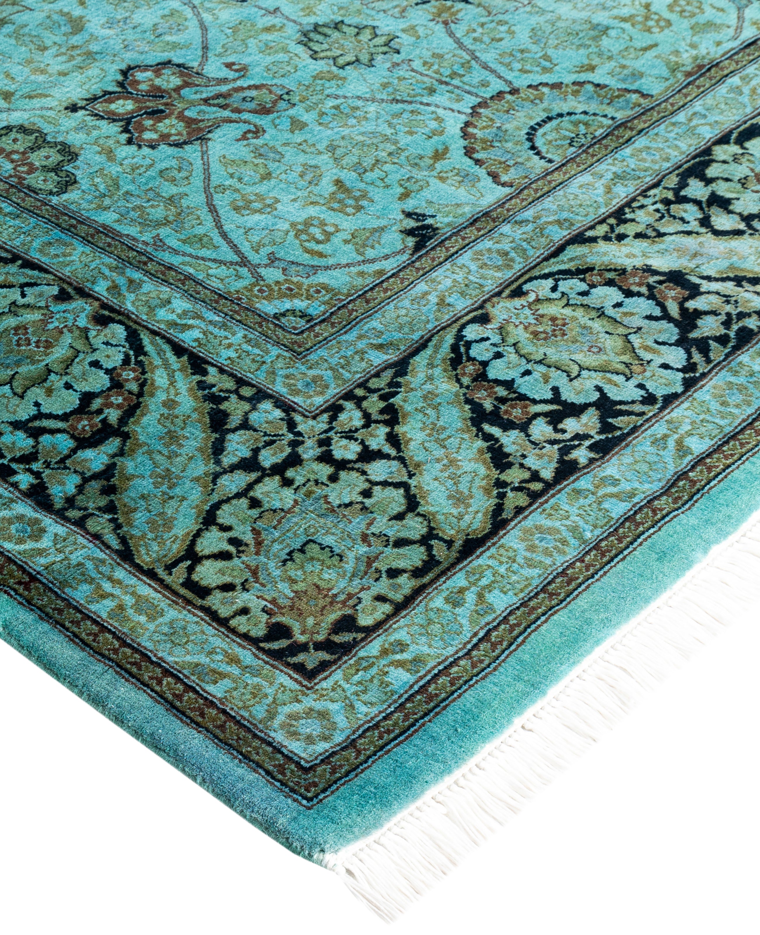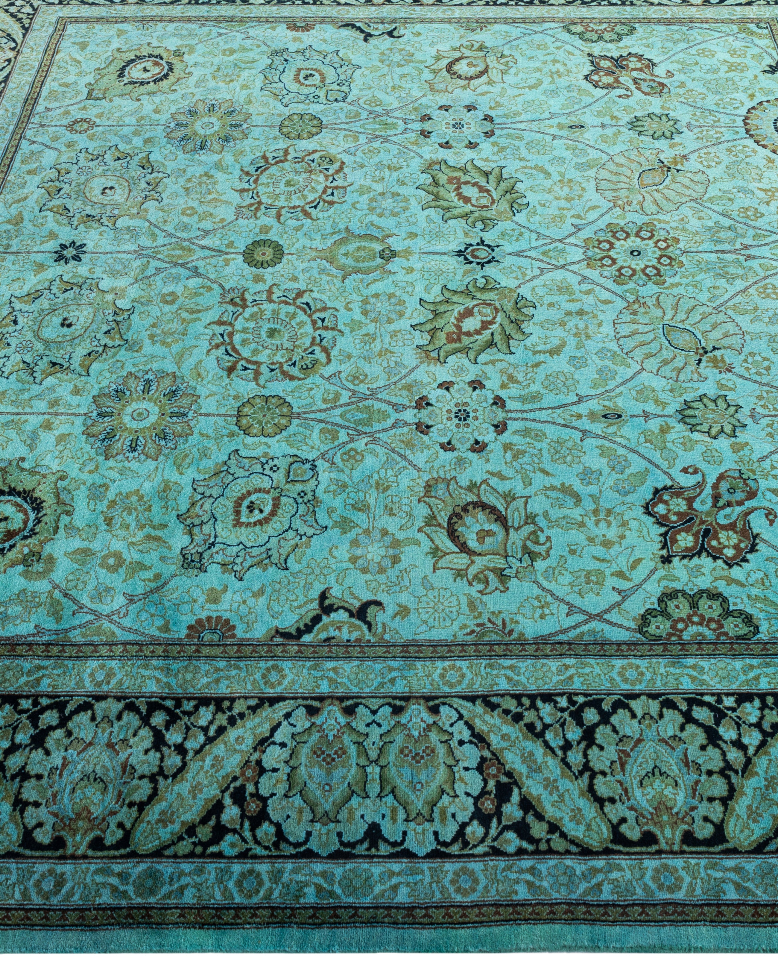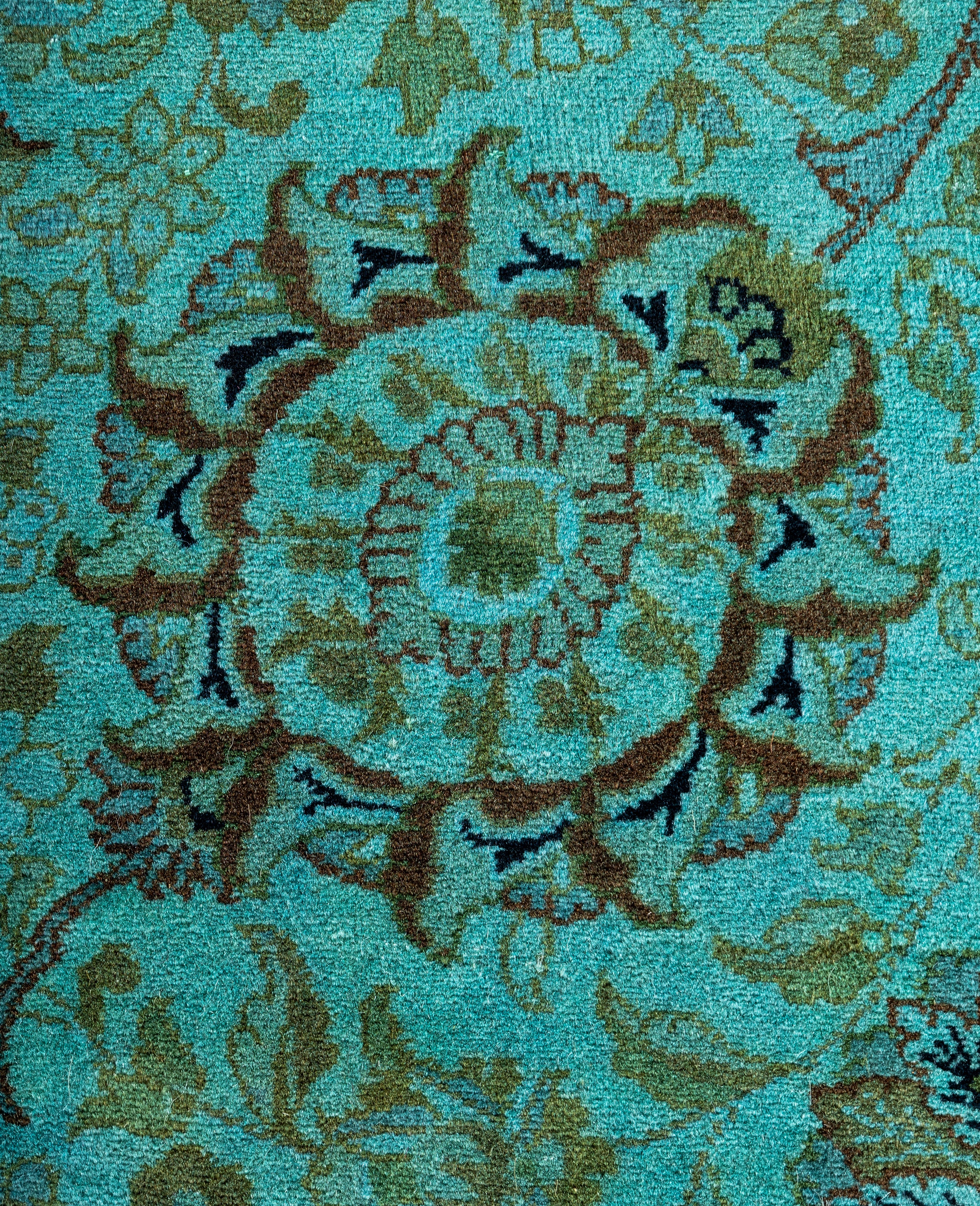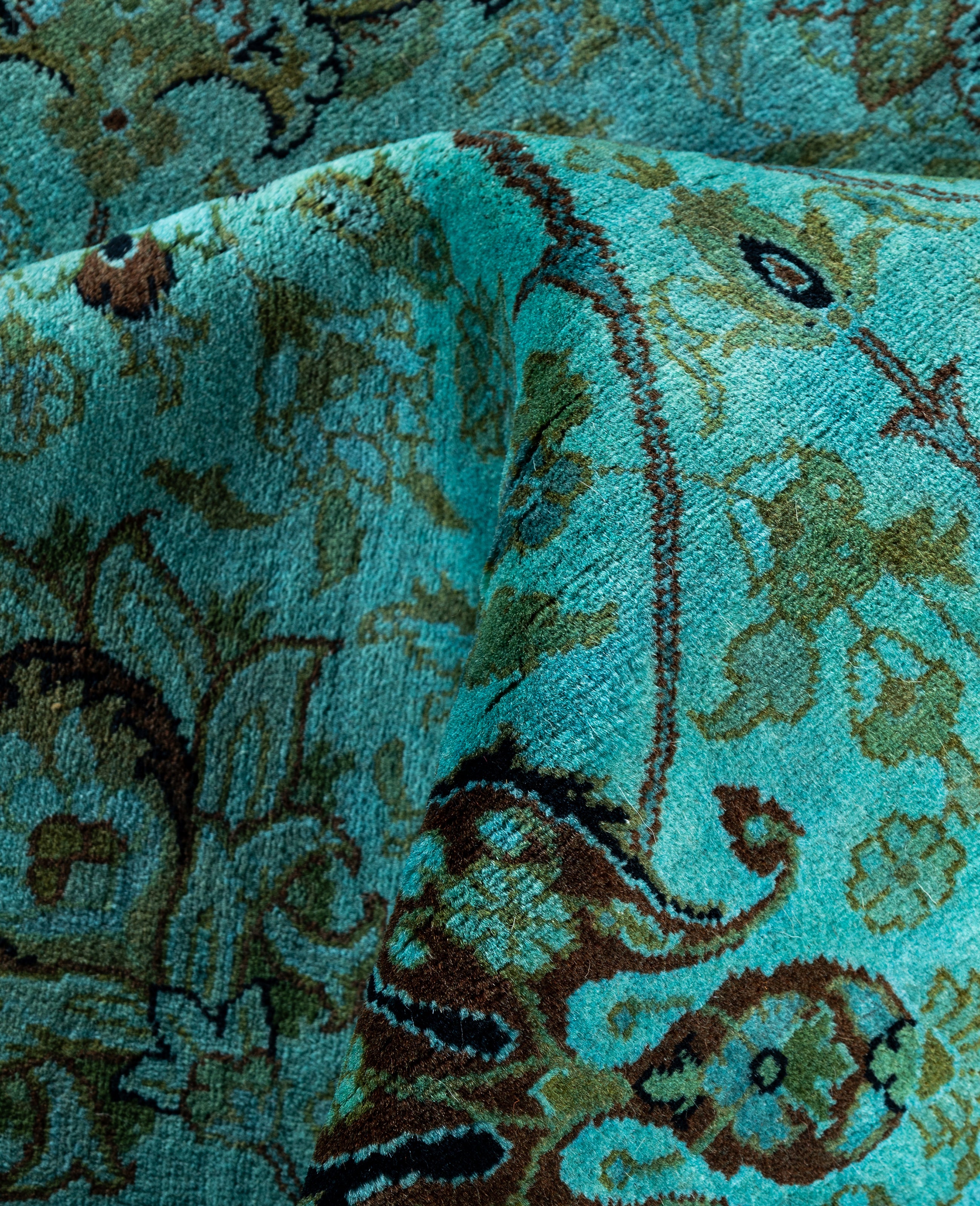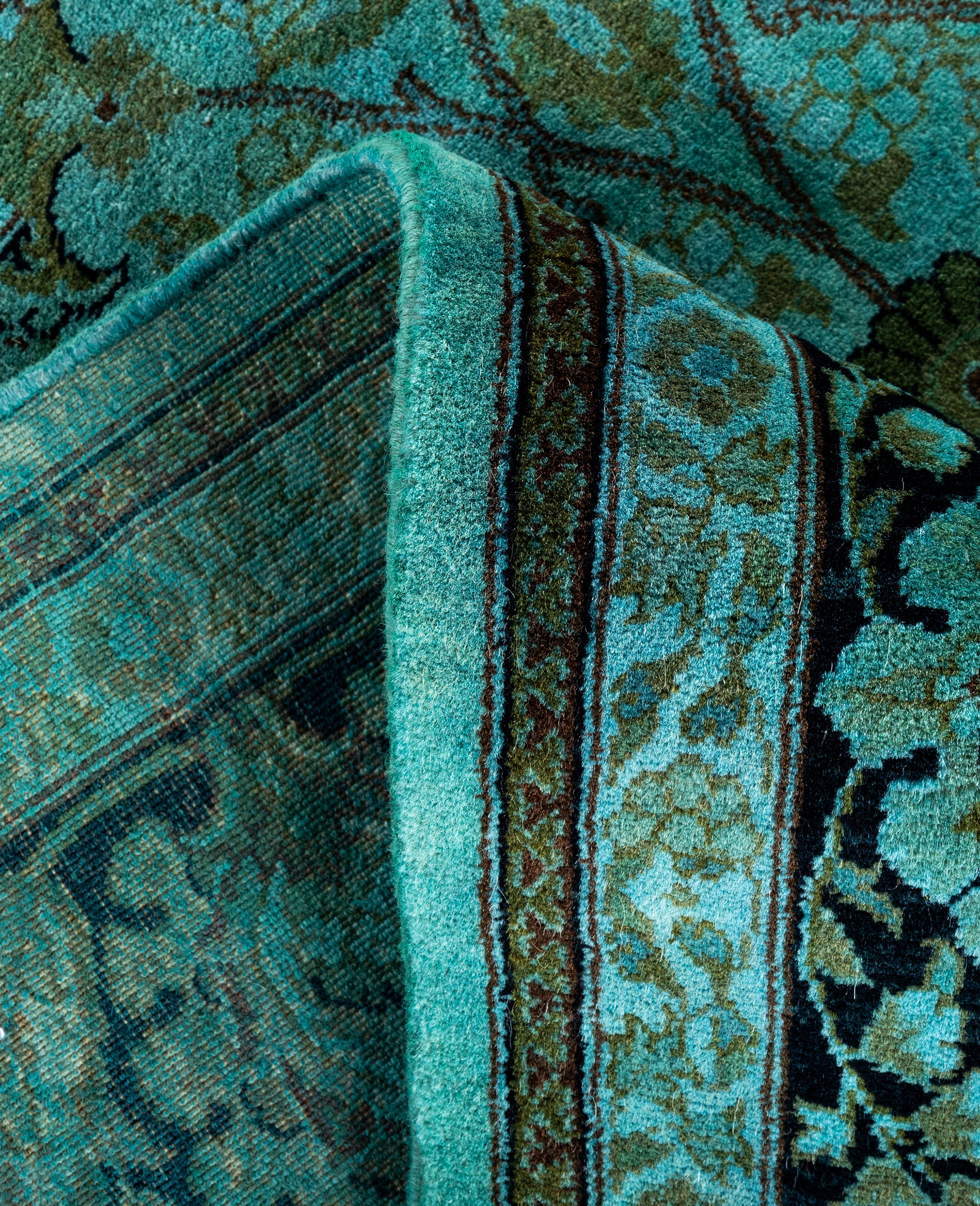 Over-dyed area rugs are created by taking vintage or traditional rugs and applying a vibrant, monochromatic dye over the existing patterns. This technique results in a bold, modern aesthetic while preserving the intricate designs beneath, blending the old with the new. The rugs are often faded and distressed before dyeing, which adds texture and depth to their appearance. The over-dye process breathes new life into worn or antique rugs, giving them a contemporary twist with rich, saturated colors like deep blues, purples, or bright reds. These rugs work well in both eclectic and modern spaces, offering a unique, artistic flair to any room. They provide a dynamic focal point, balancing between traditional craftsmanship and contemporary design trends. Over-dyed rugs are perfect for those looking to add a pop of color and character to their home decor.