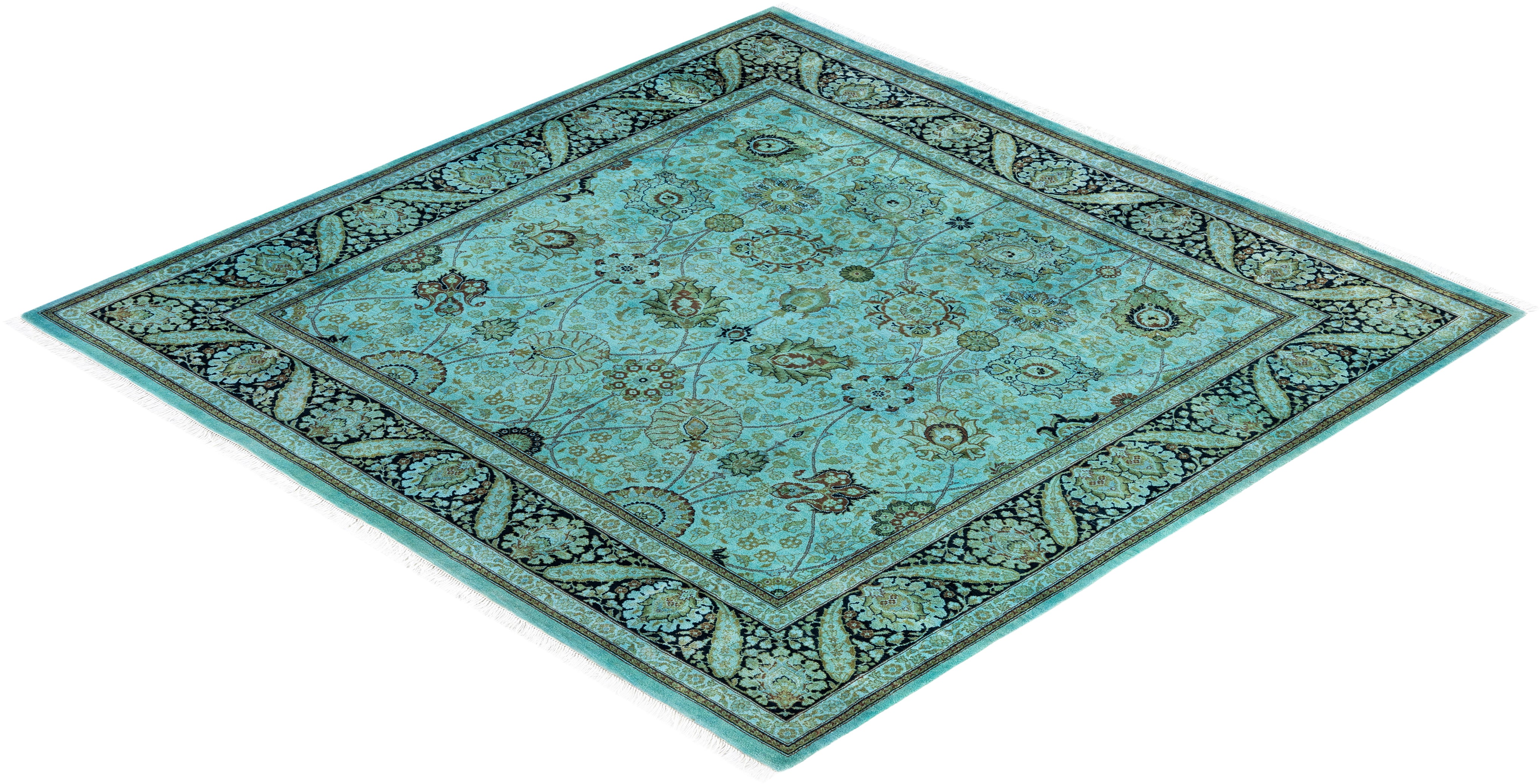 Contemporary Overdyed Wool Hand Knotted Green Round Area Rug 6' 1" x 6' 3"