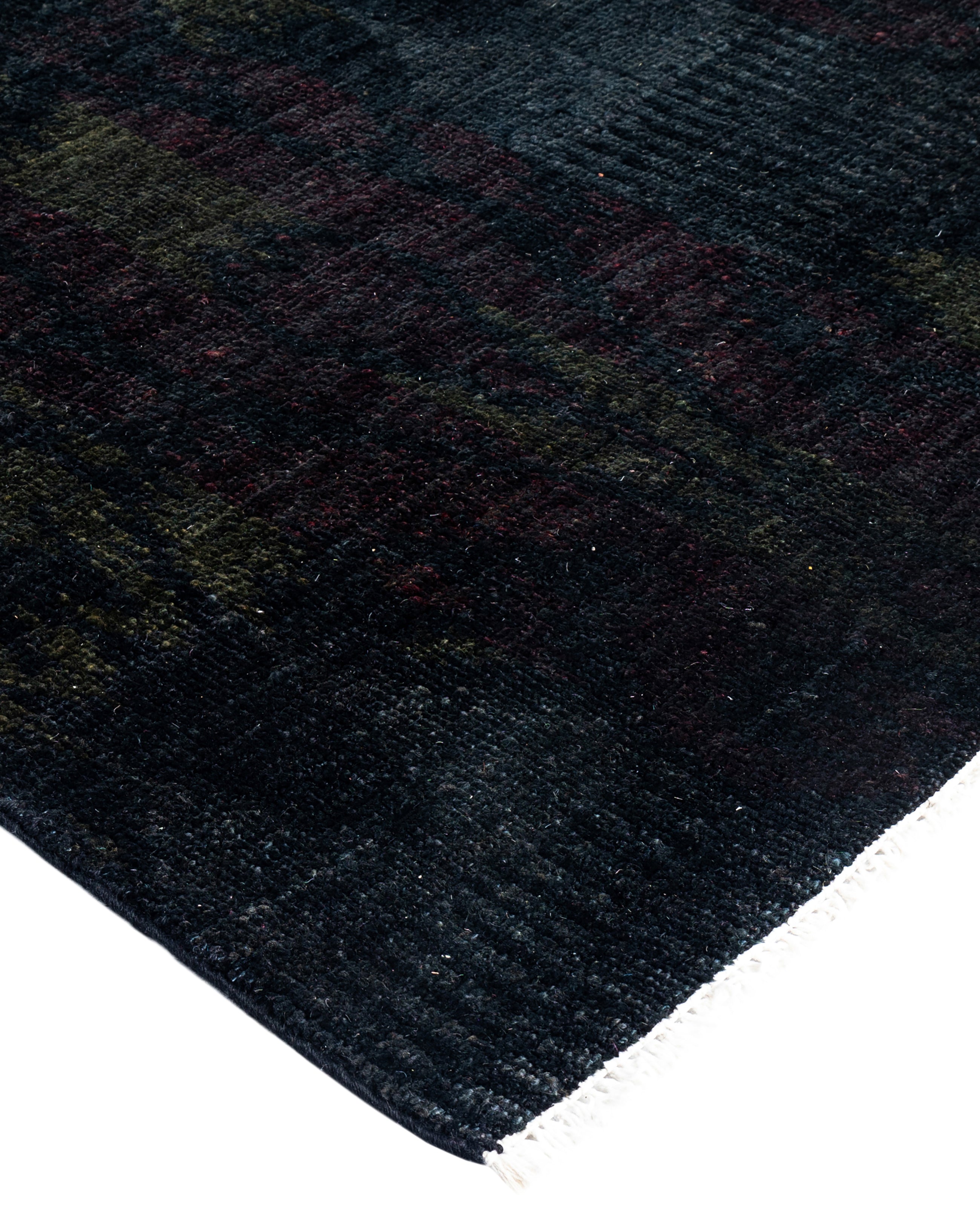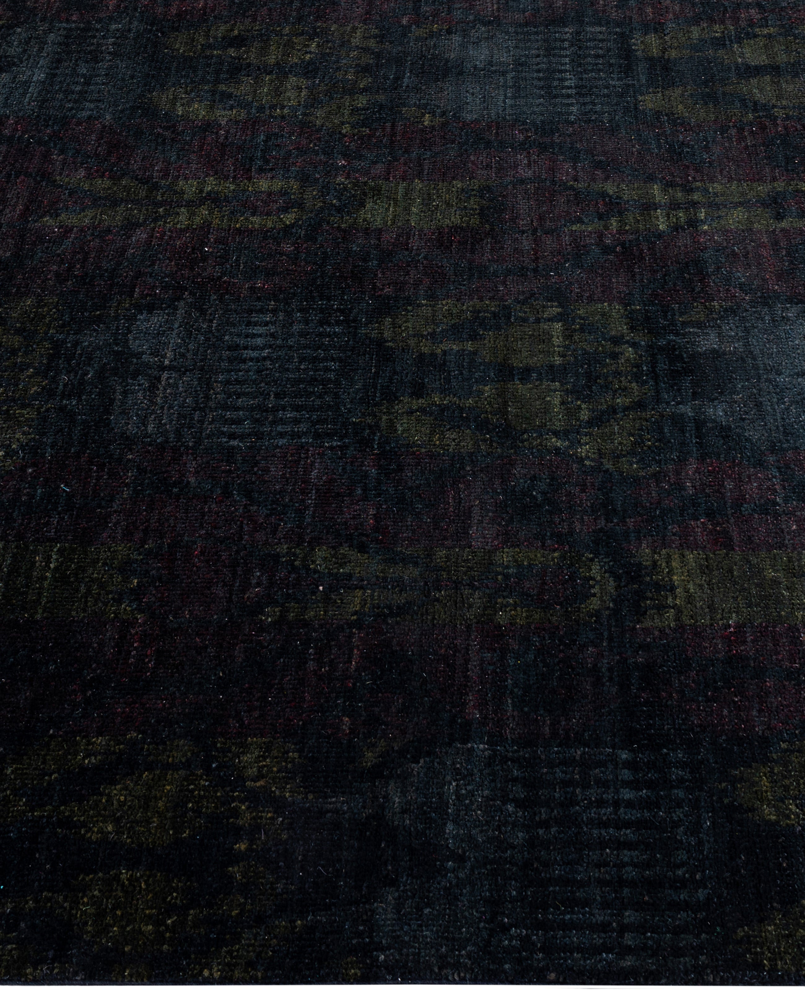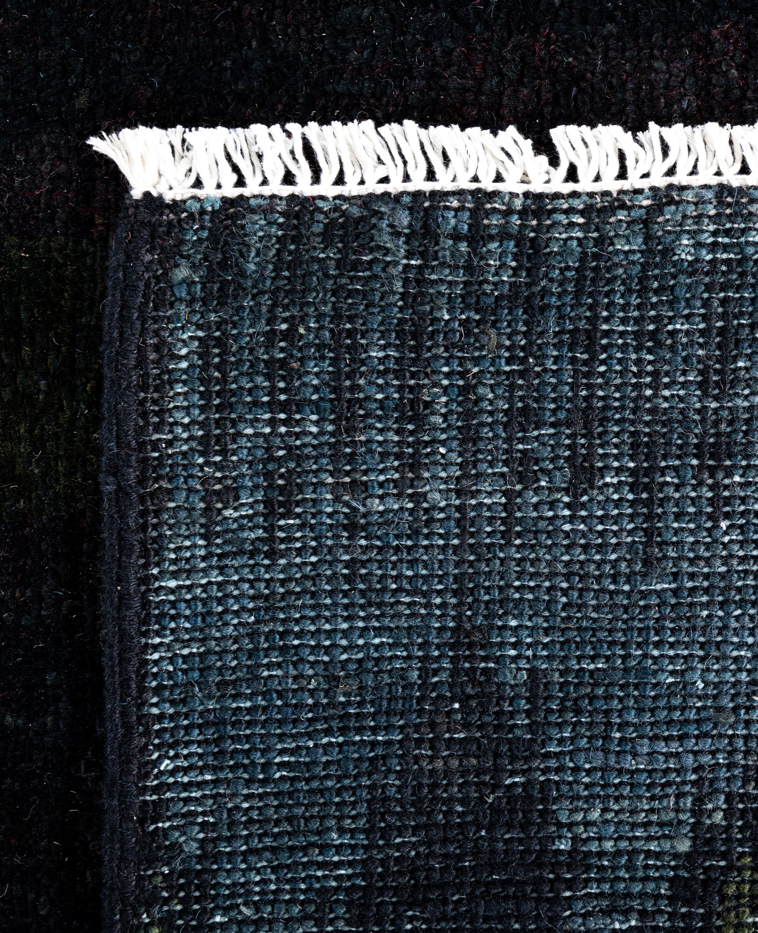Contemporary Overdyed Wool Hand Knotted Black Round Area Rug 5' 0" x 5' 7"