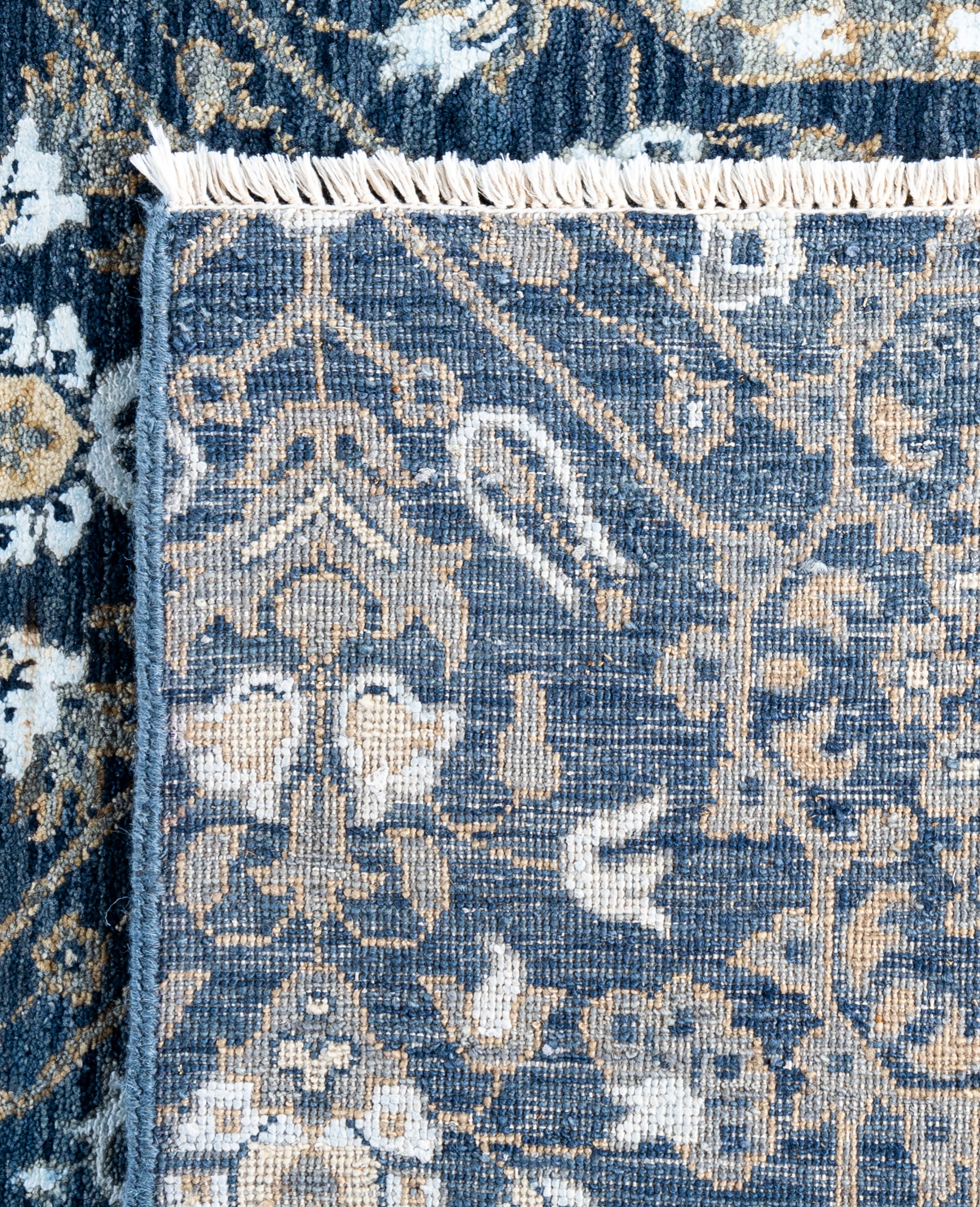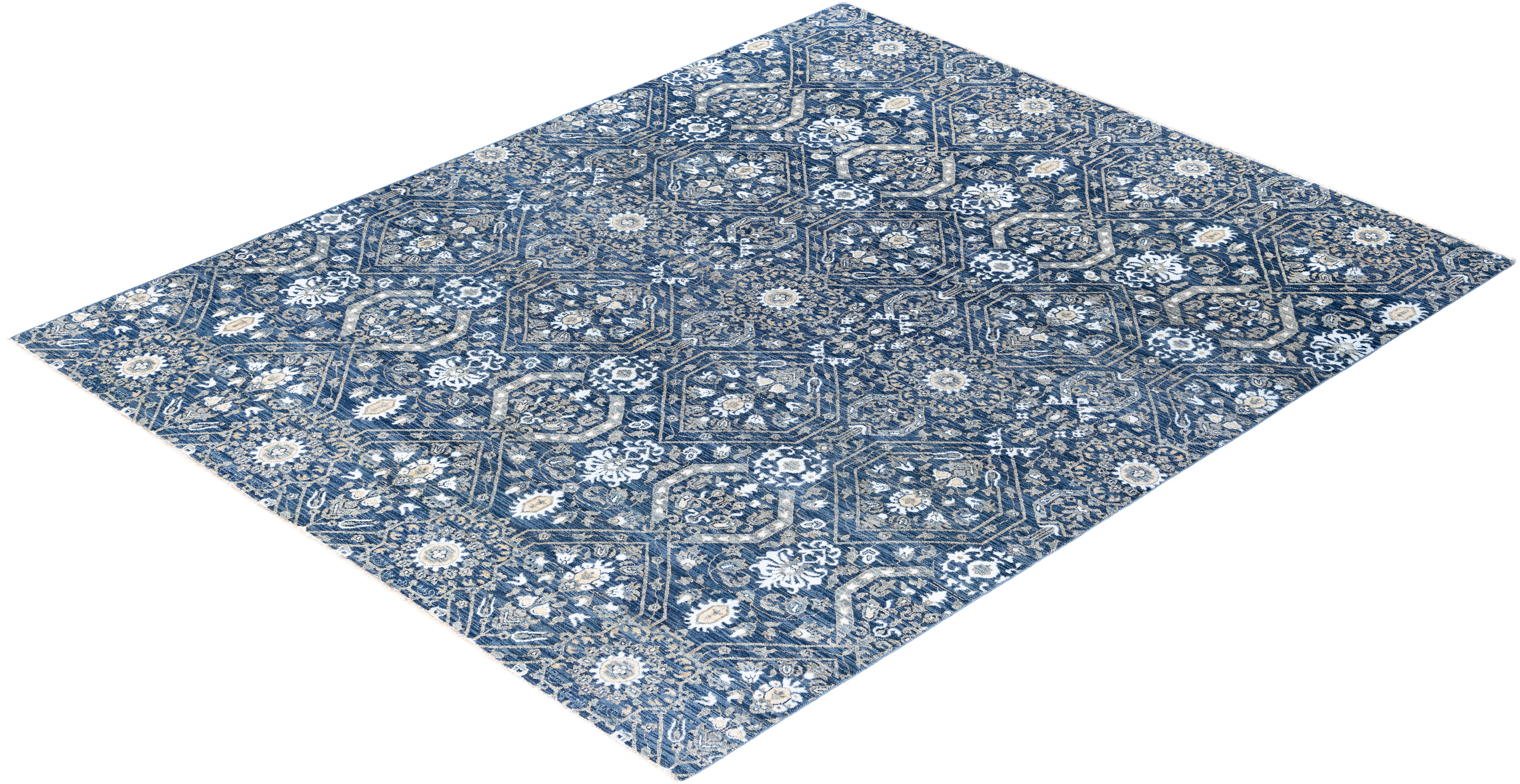 Traditional Floral Wool, Silk Hand Knotted Navy Area Rug 8' 0" x 10' 0"