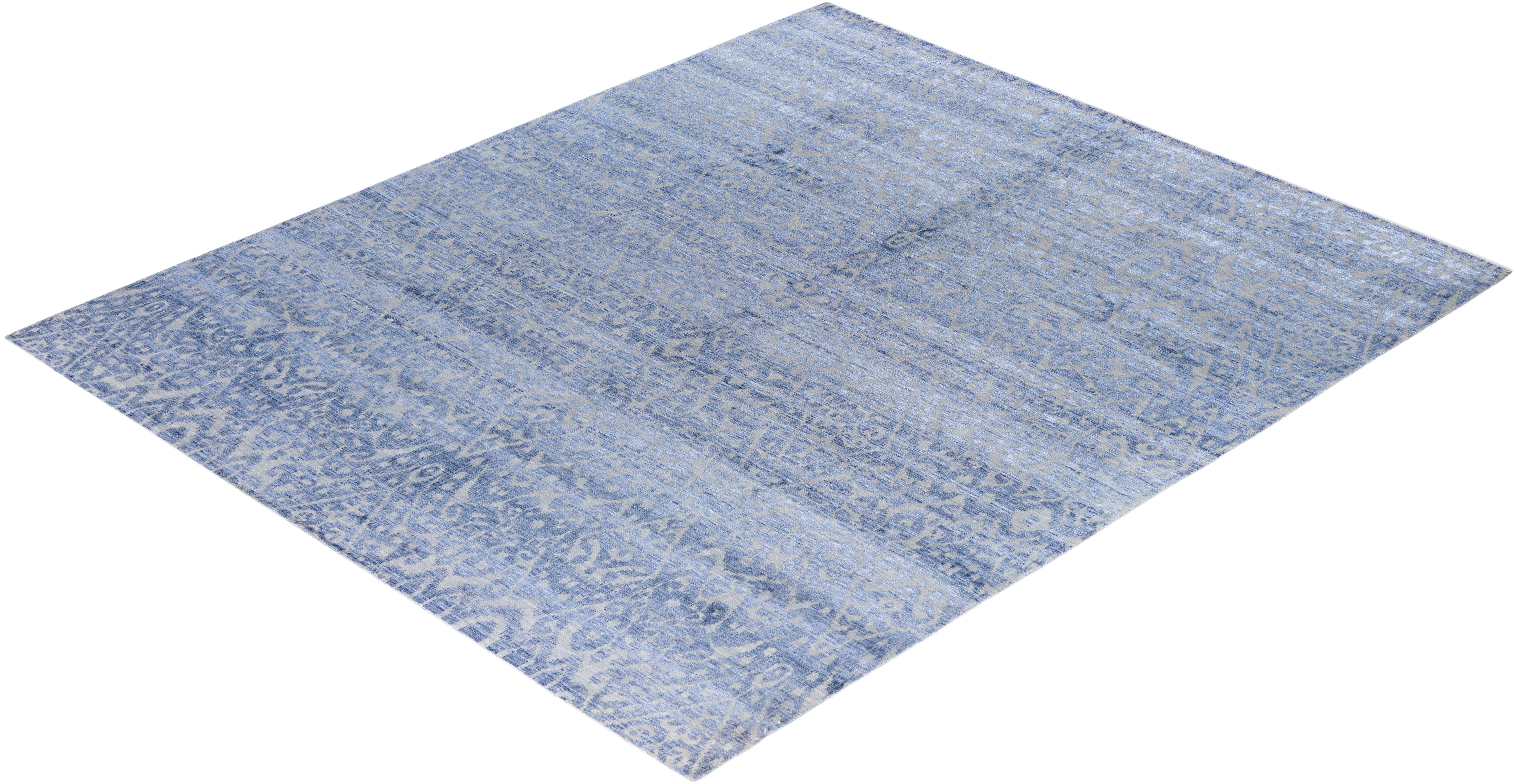 Contemporary Modern Hand Knotted Abstract Silk & Wool Blend Gray Area Rug 8' 1" x 9' 8"