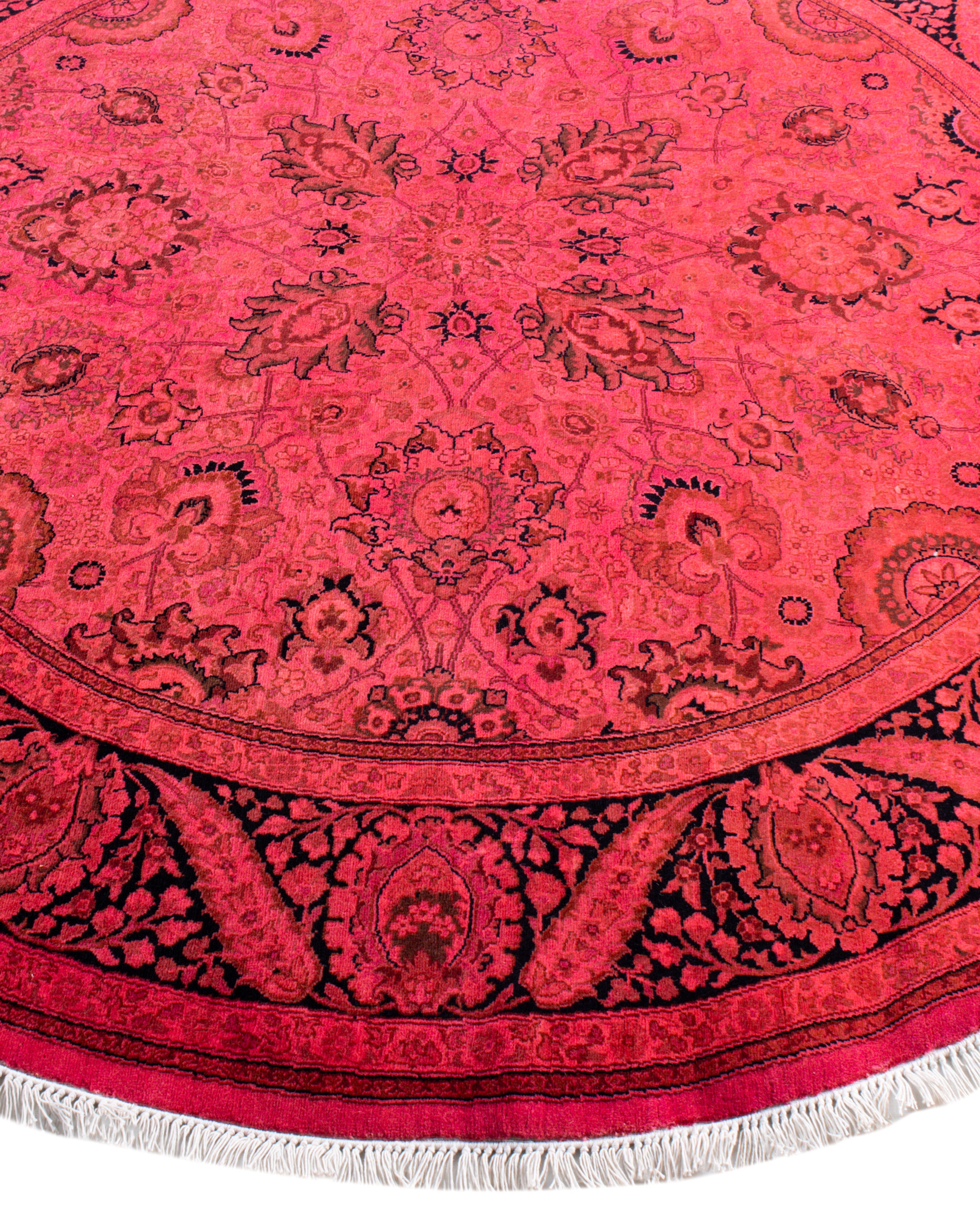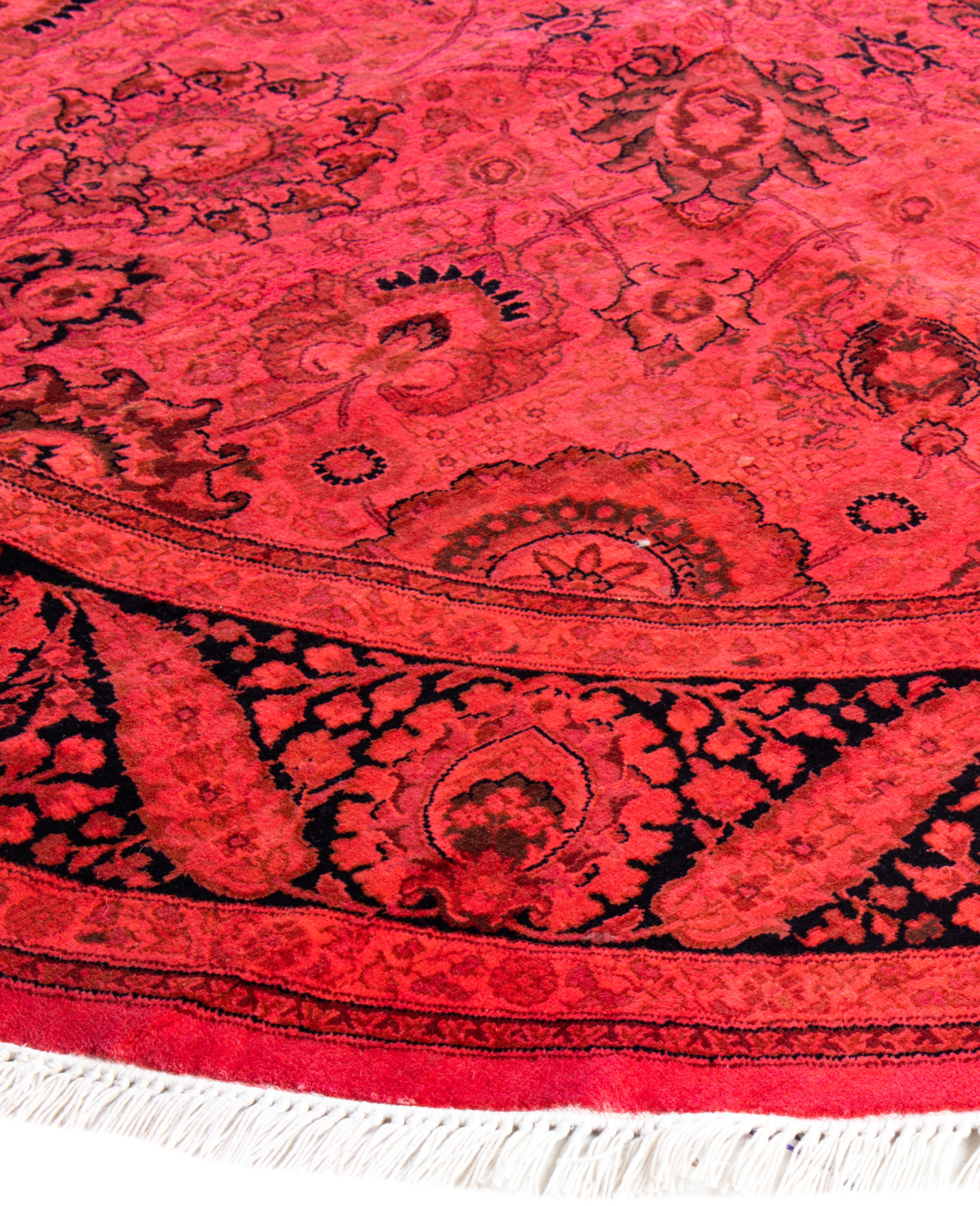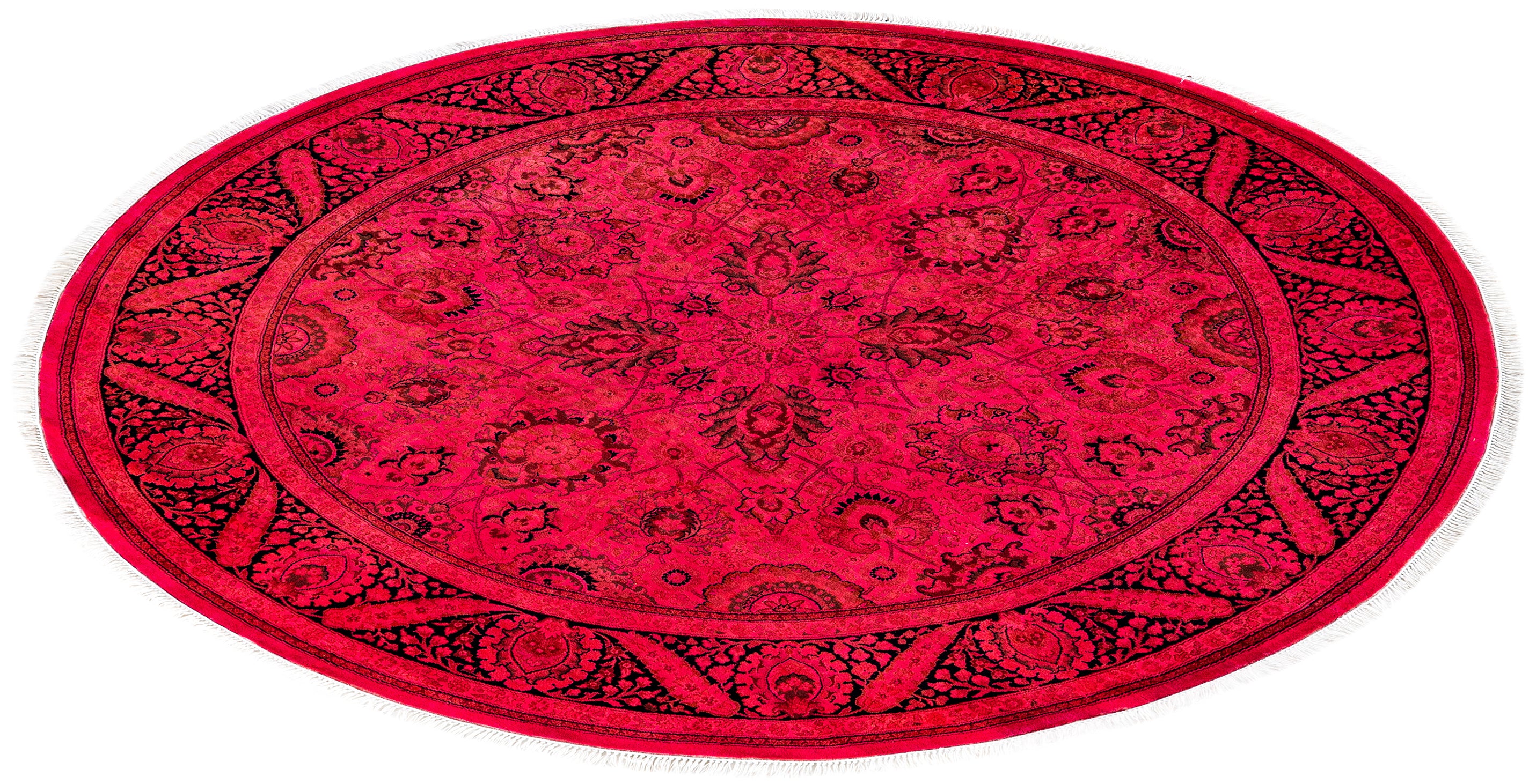 Contemporary Overdyed Wool Hand Knotted Pink Round Area Rug 6' 1" x 6' 1"