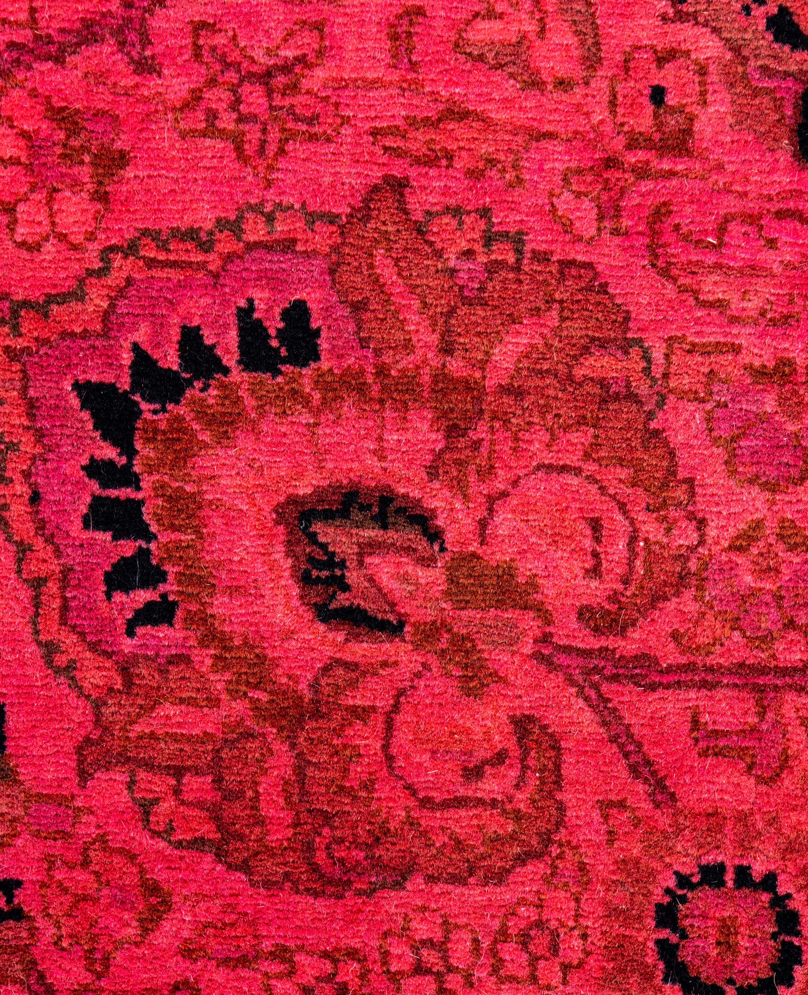 Over-dyed area rugs are created by taking vintage or traditional rugs and applying a vibrant, monochromatic dye over the existing patterns. This technique results in a bold, modern aesthetic while preserving the intricate designs beneath, blending the old with the new. The rugs are often faded and distressed before dyeing, which adds texture and depth to their appearance. The over-dye process breathes new life into worn or antique rugs, giving them a contemporary twist with rich, saturated colors like deep blues, purples, or bright reds. These rugs work well in both eclectic and modern spaces, offering a unique, artistic flair to any room. They provide a dynamic focal point, balancing between traditional craftsmanship and contemporary design trends. Over-dyed rugs are perfect for those looking to add a pop of color and character to their home decor.