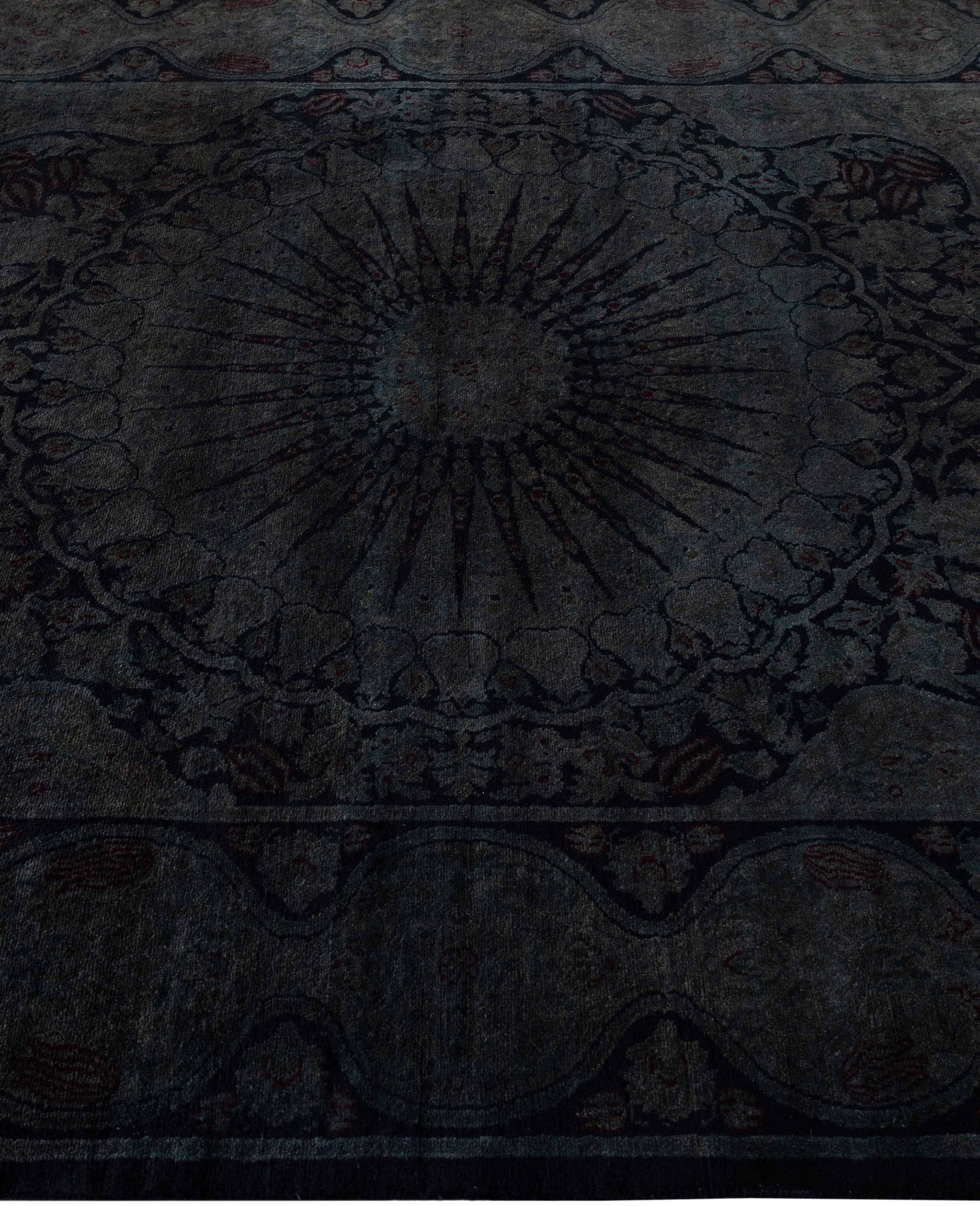 Over-dyed area rugs are created by taking vintage or traditional rugs and applying a vibrant, monochromatic dye over the existing patterns. This technique results in a bold, modern aesthetic while preserving the intricate designs beneath, blending the old with the new. The rugs are often faded and distressed before dyeing, which adds texture and depth to their appearance. The over-dye process breathes new life into worn or antique rugs, giving them a contemporary twist with rich, saturated colors like deep blues, purples, or bright reds. These rugs work well in both eclectic and modern spaces, offering a unique, artistic flair to any room. They provide a dynamic focal point, balancing between traditional craftsmanship and contemporary design trends. Over-dyed rugs are perfect for those looking to add a pop of color and character to their home decor.