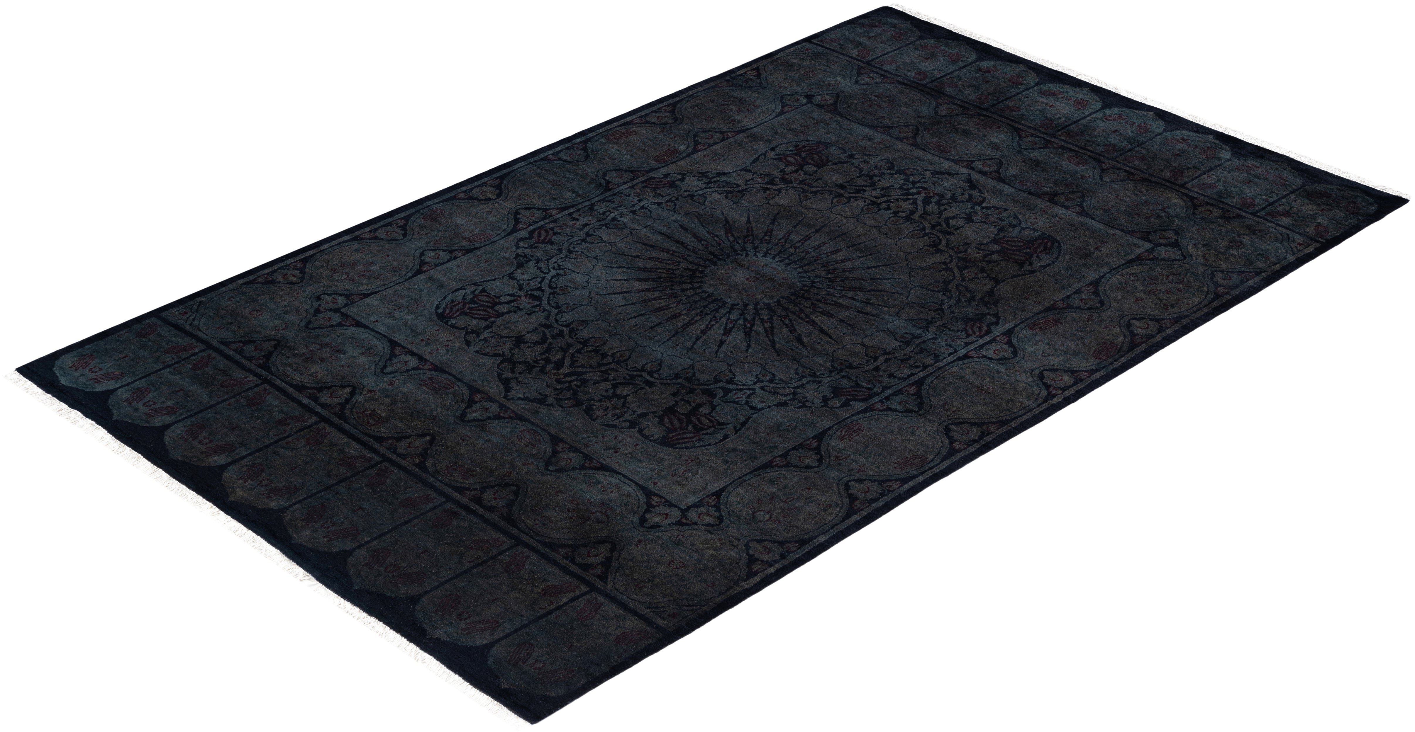 Contemporary Overdyed Wool Hand Knotted Black Area Rug 4' 5" x 7' 2"
