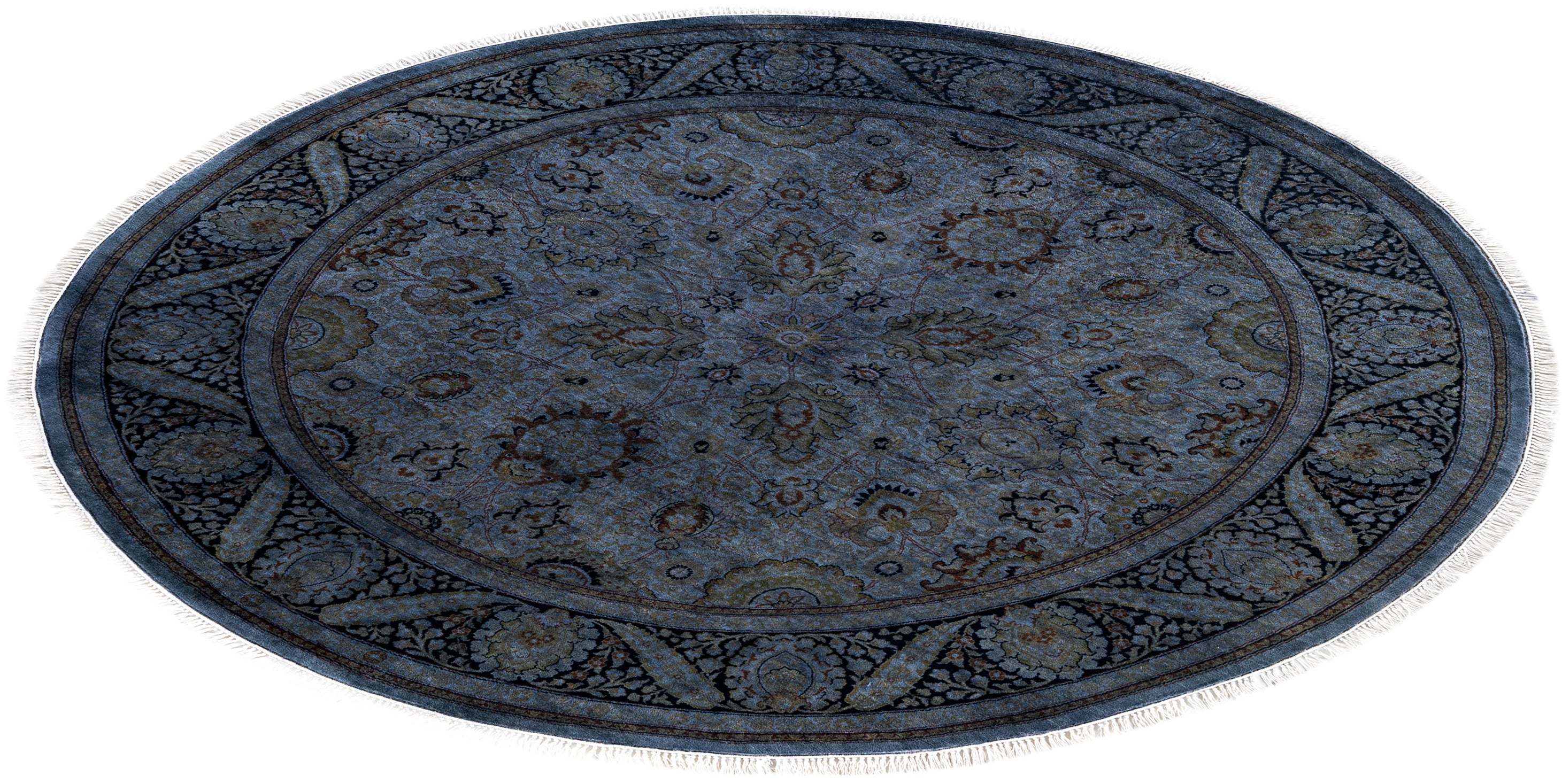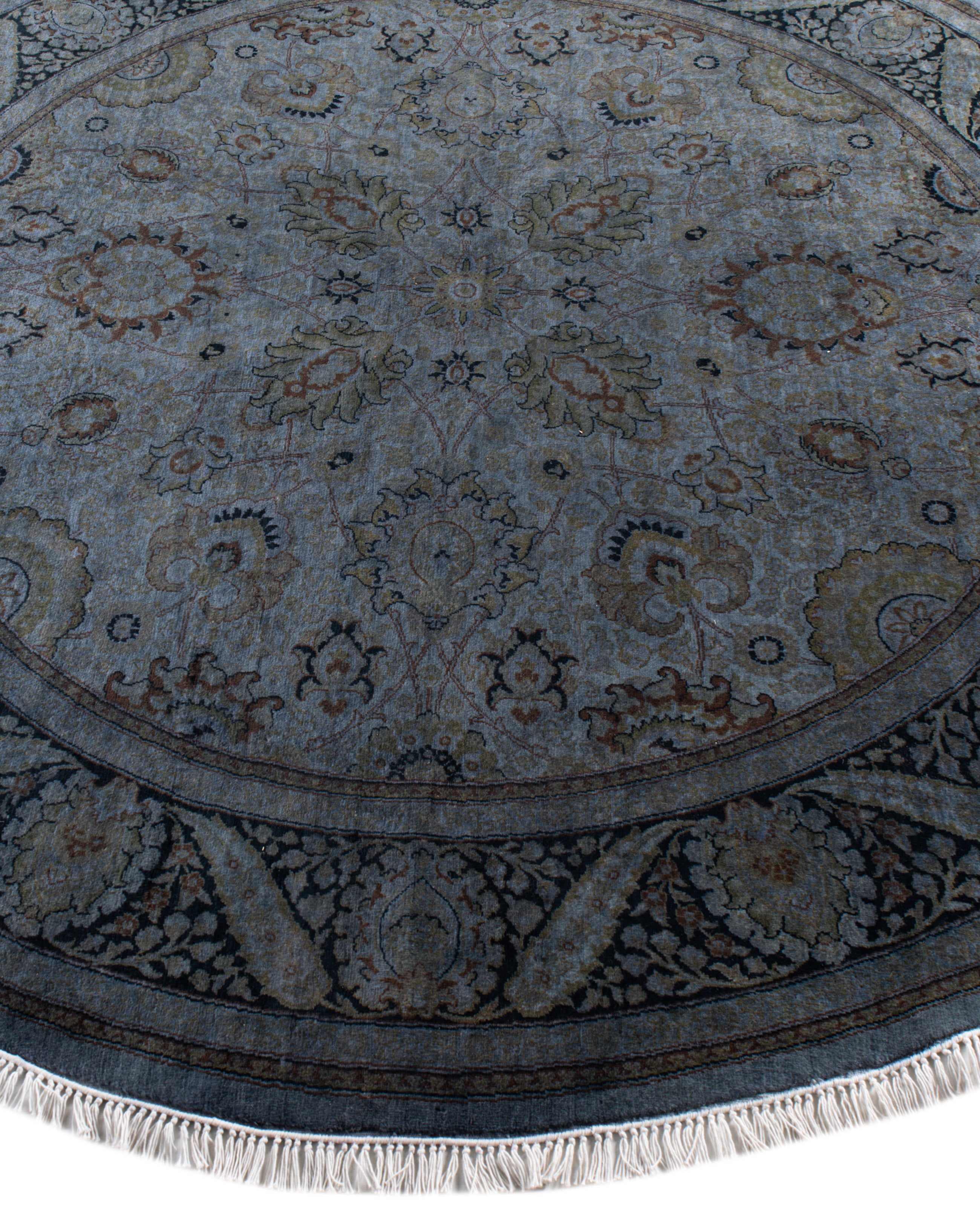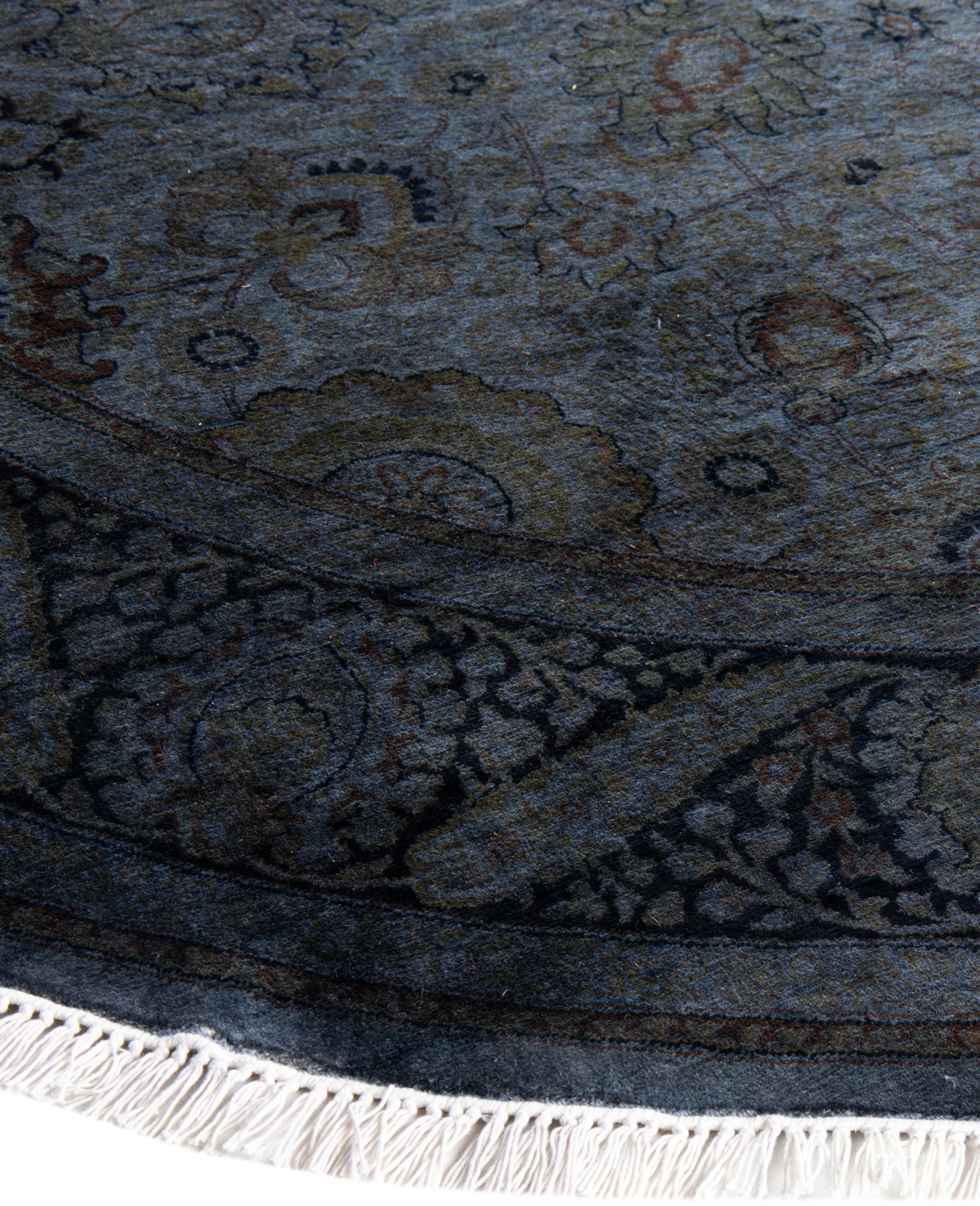 Contemporary Overdyed Wool Hand Knotted Gray Round Area Rug 6' 1" x 6' 1"