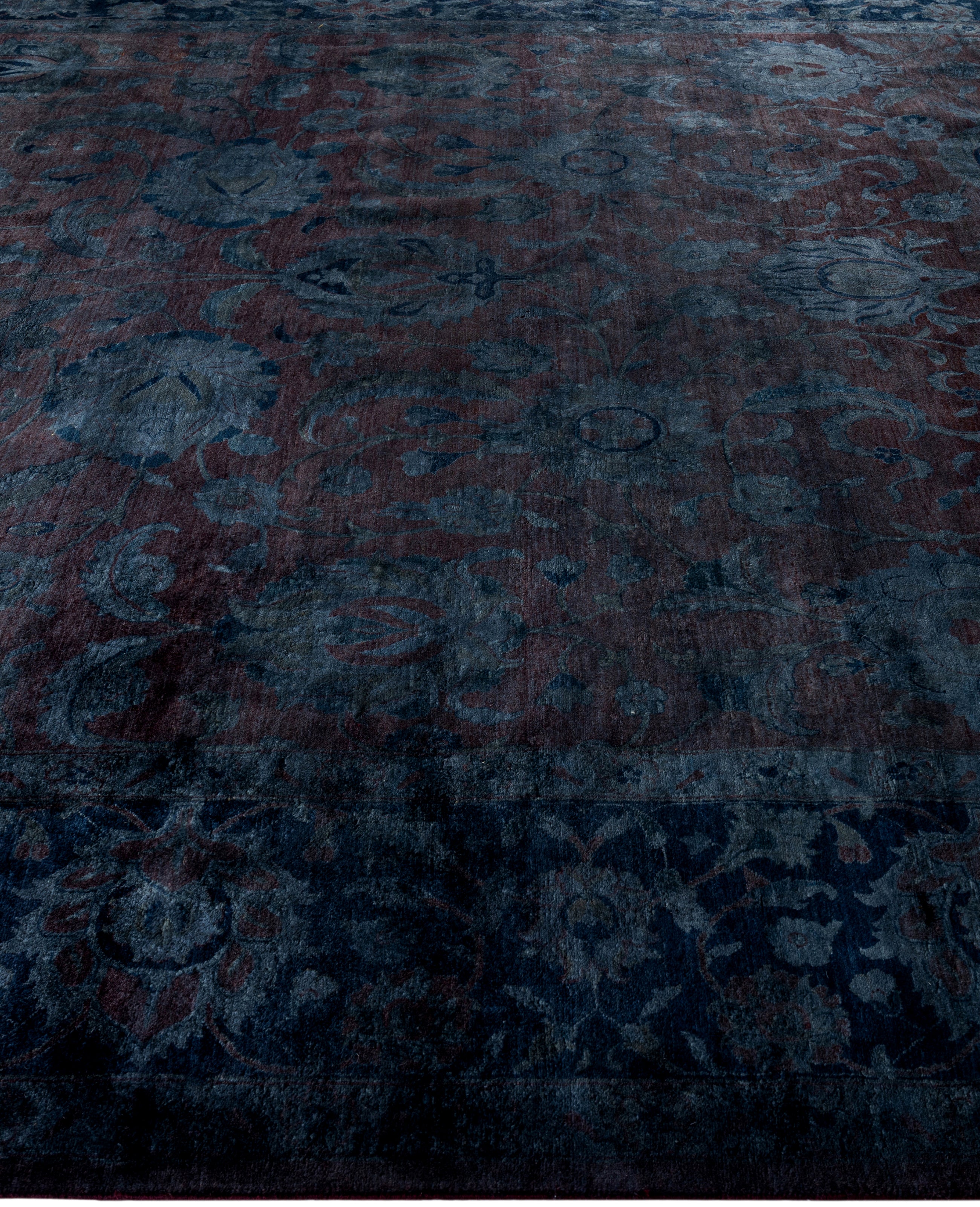Over-dyed area rugs are created by taking vintage or traditional rugs and applying a vibrant, monochromatic dye over the existing patterns. This technique results in a bold, modern aesthetic while preserving the intricate designs beneath, blending the old with the new. The rugs are often faded and distressed before dyeing, which adds texture and depth to their appearance. The over-dye process breathes new life into worn or antique rugs, giving them a contemporary twist with rich, saturated colors like deep blues, purples, or bright reds. These rugs work well in both eclectic and modern spaces, offering a unique, artistic flair to any room. They provide a dynamic focal point, balancing between traditional craftsmanship and contemporary design trends. Over-dyed rugs are perfect for those looking to add a pop of color and character to their home decor.