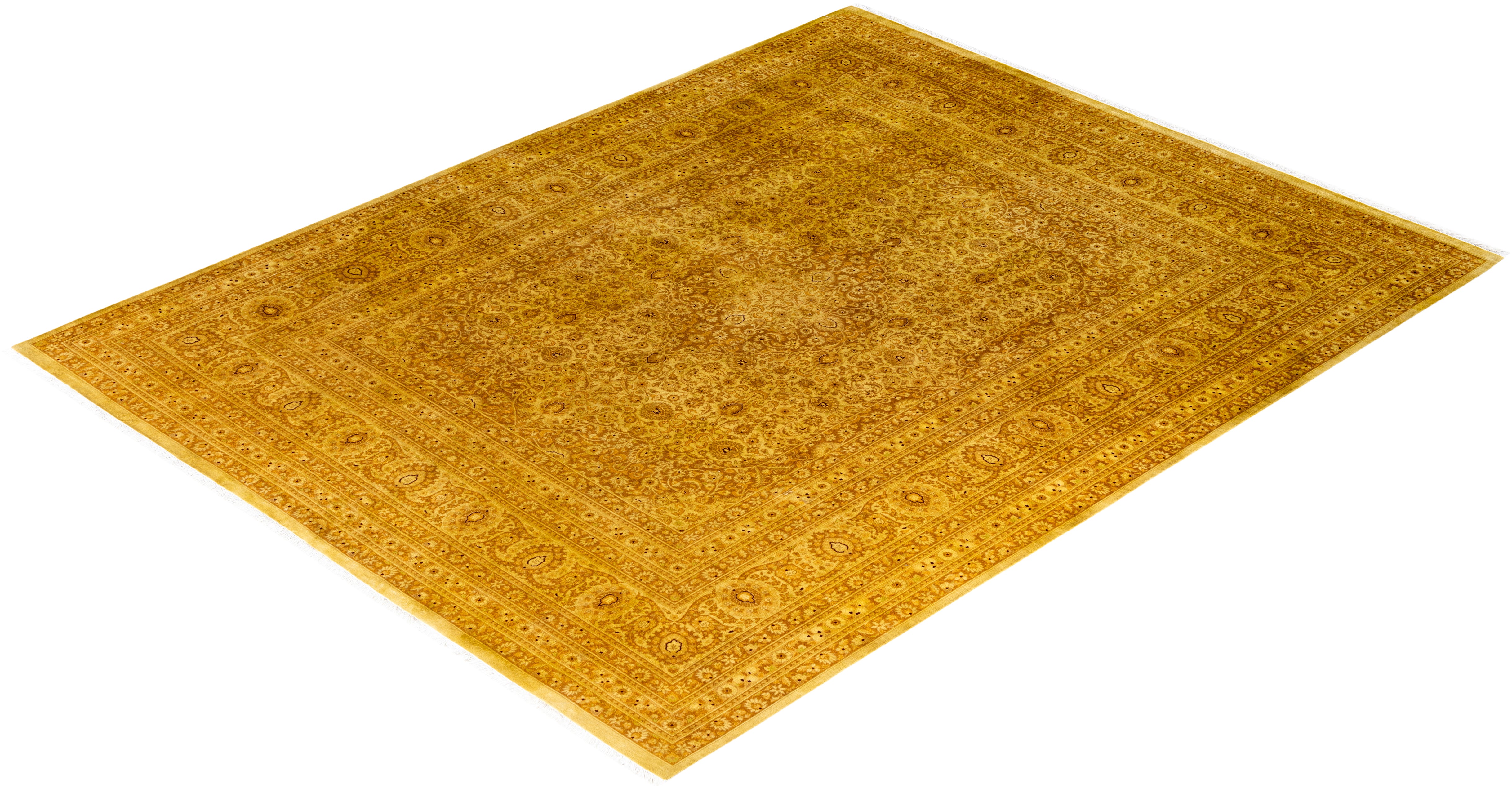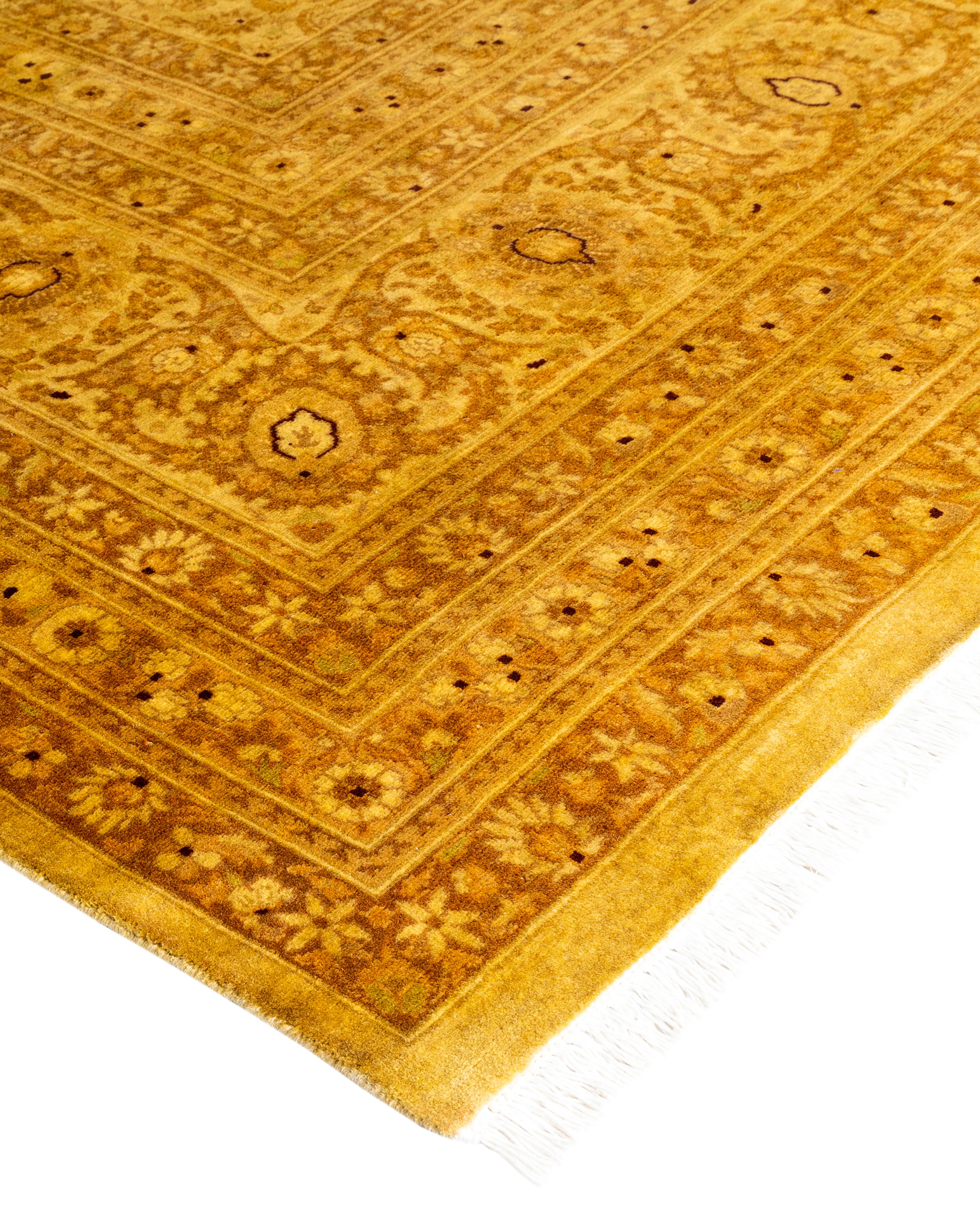 Contemporary Overdyed Wool Hand Knotted Yellow Area Rug 8' 1" x 10' 5"
