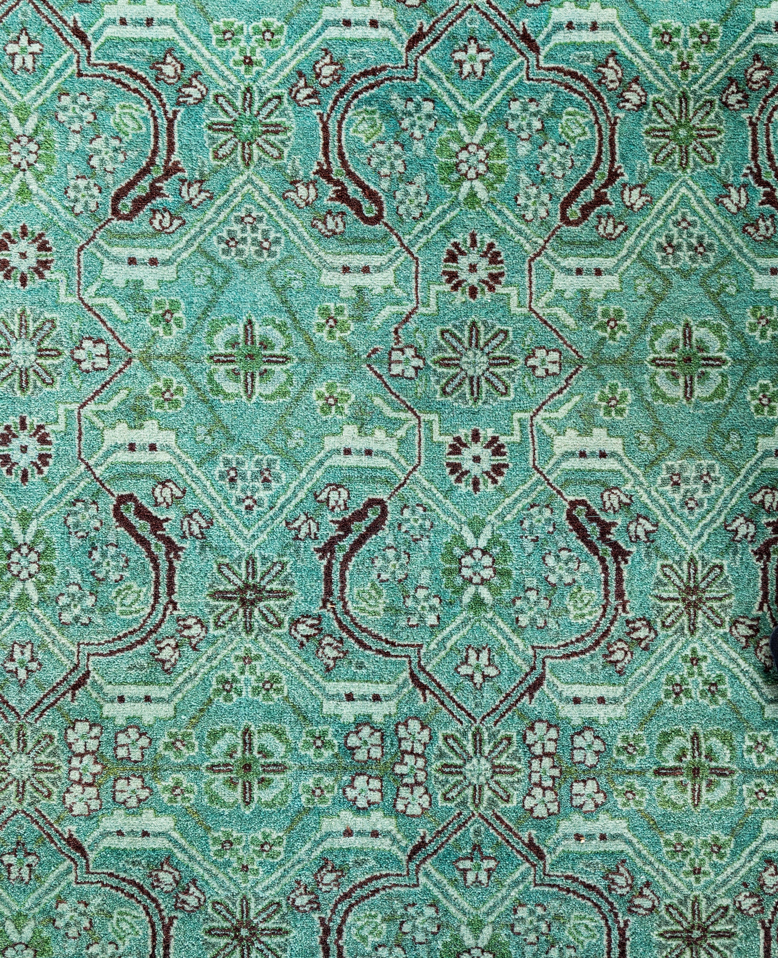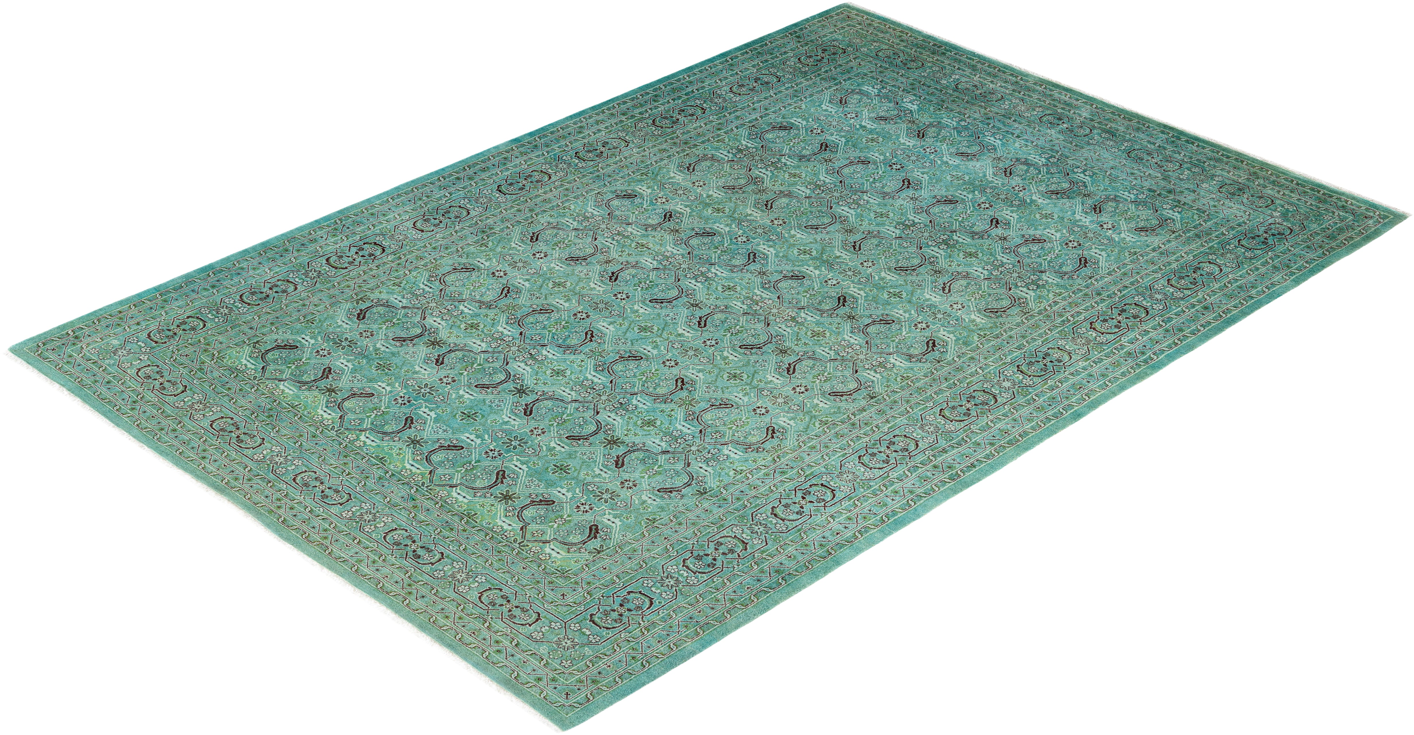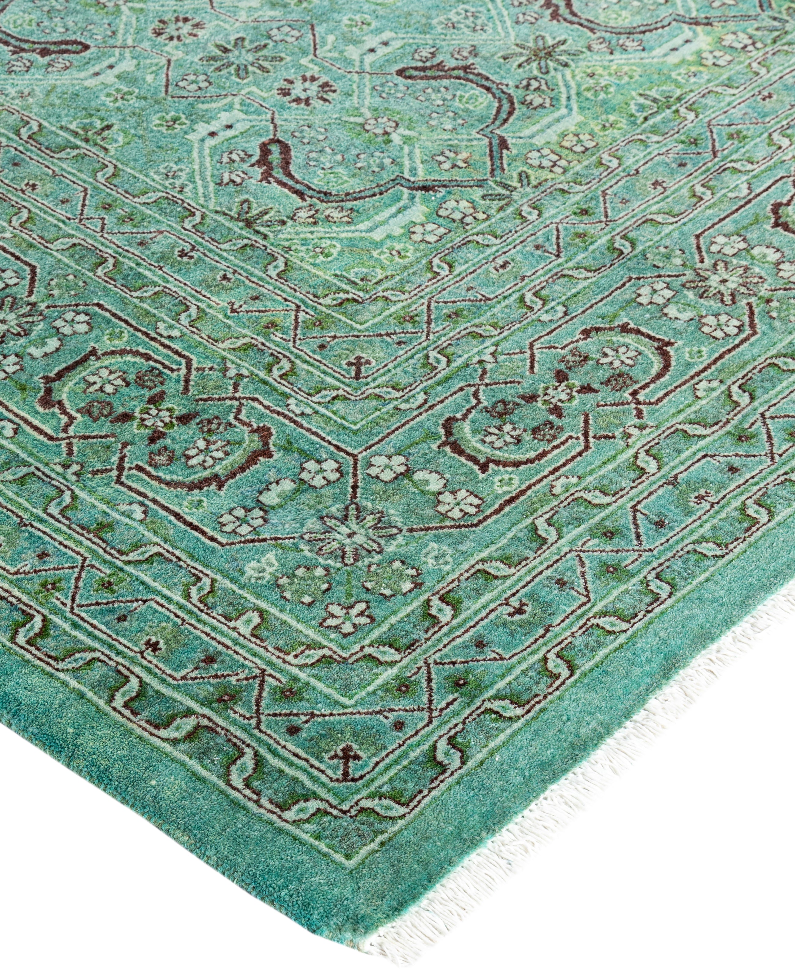 Contemporary Overdyed Wool Hand Knotted Green Area Rug 6' 2" x 9' 1"
