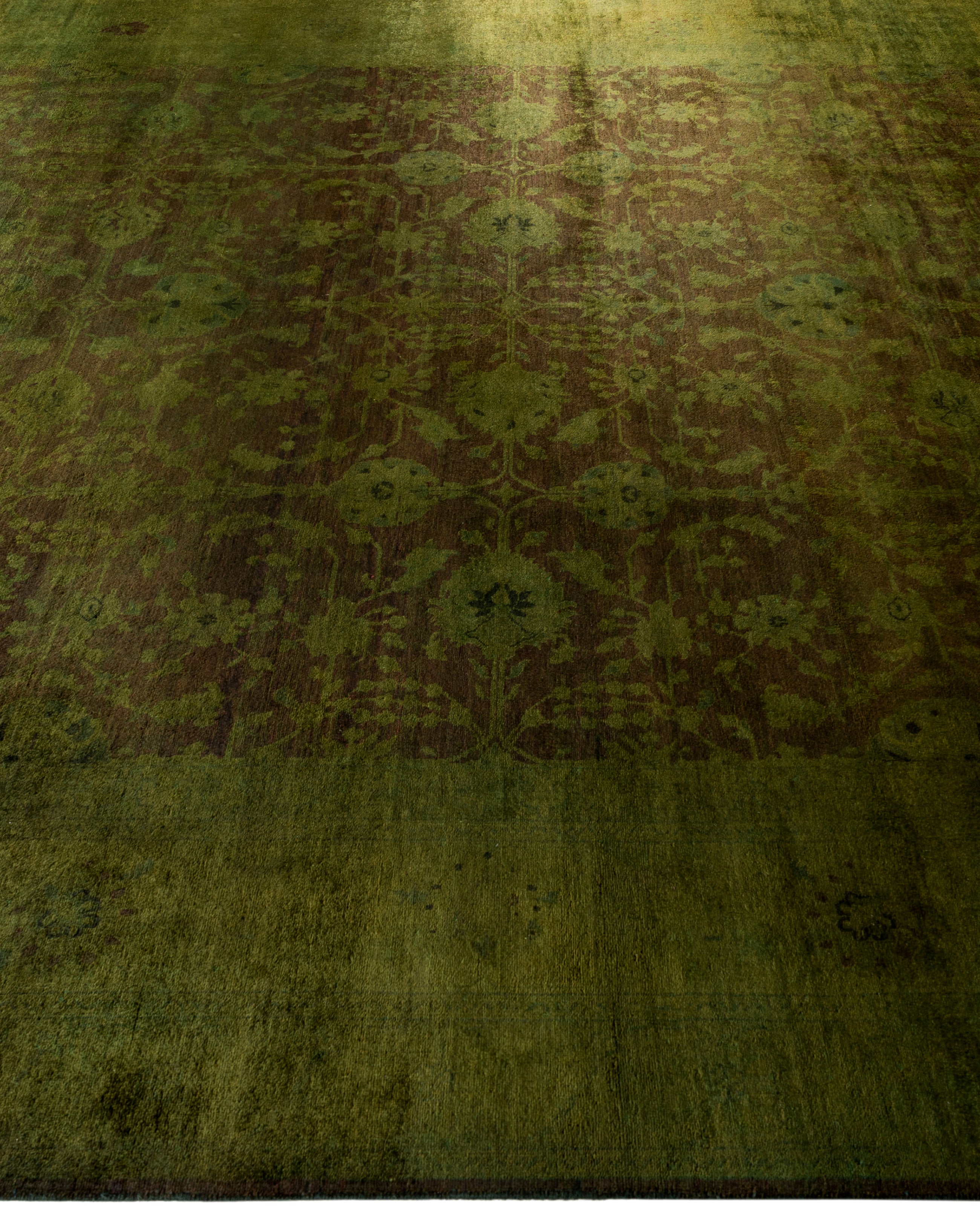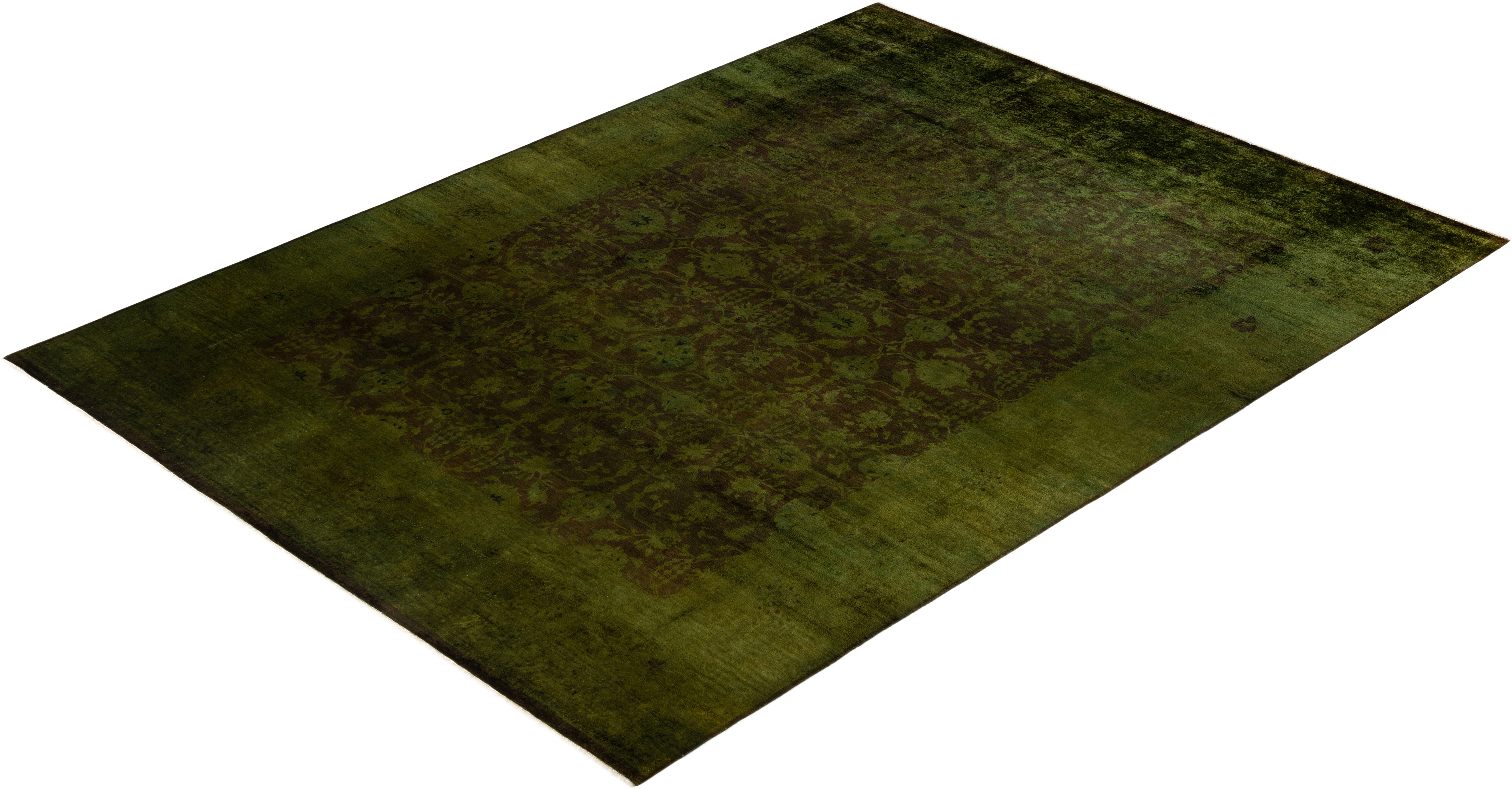 Contemporary Overdyed Wool Hand Knotted Green Area Rug 9' 0" x 12' 1"