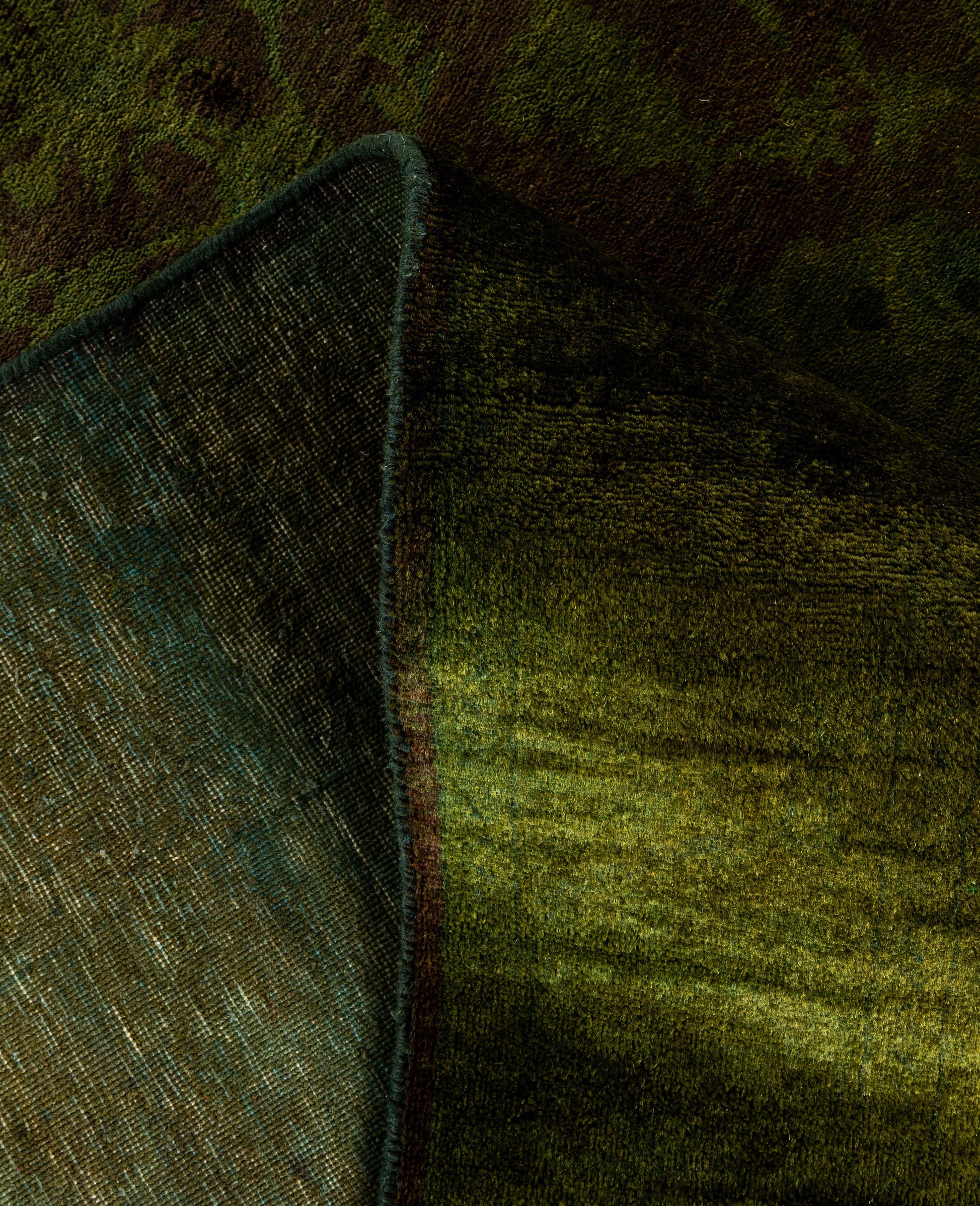 Over-dyed area rugs are created by taking vintage or traditional rugs and applying a vibrant, monochromatic dye over the existing patterns. This technique results in a bold, modern aesthetic while preserving the intricate designs beneath, blending the old with the new. The rugs are often faded and distressed before dyeing, which adds texture and depth to their appearance. The over-dye process breathes new life into worn or antique rugs, giving them a contemporary twist with rich, saturated colors like deep blues, purples, or bright reds. These rugs work well in both eclectic and modern spaces, offering a unique, artistic flair to any room. They provide a dynamic focal point, balancing between traditional craftsmanship and contemporary design trends. Over-dyed rugs are perfect for those looking to add a pop of color and character to their home decor.