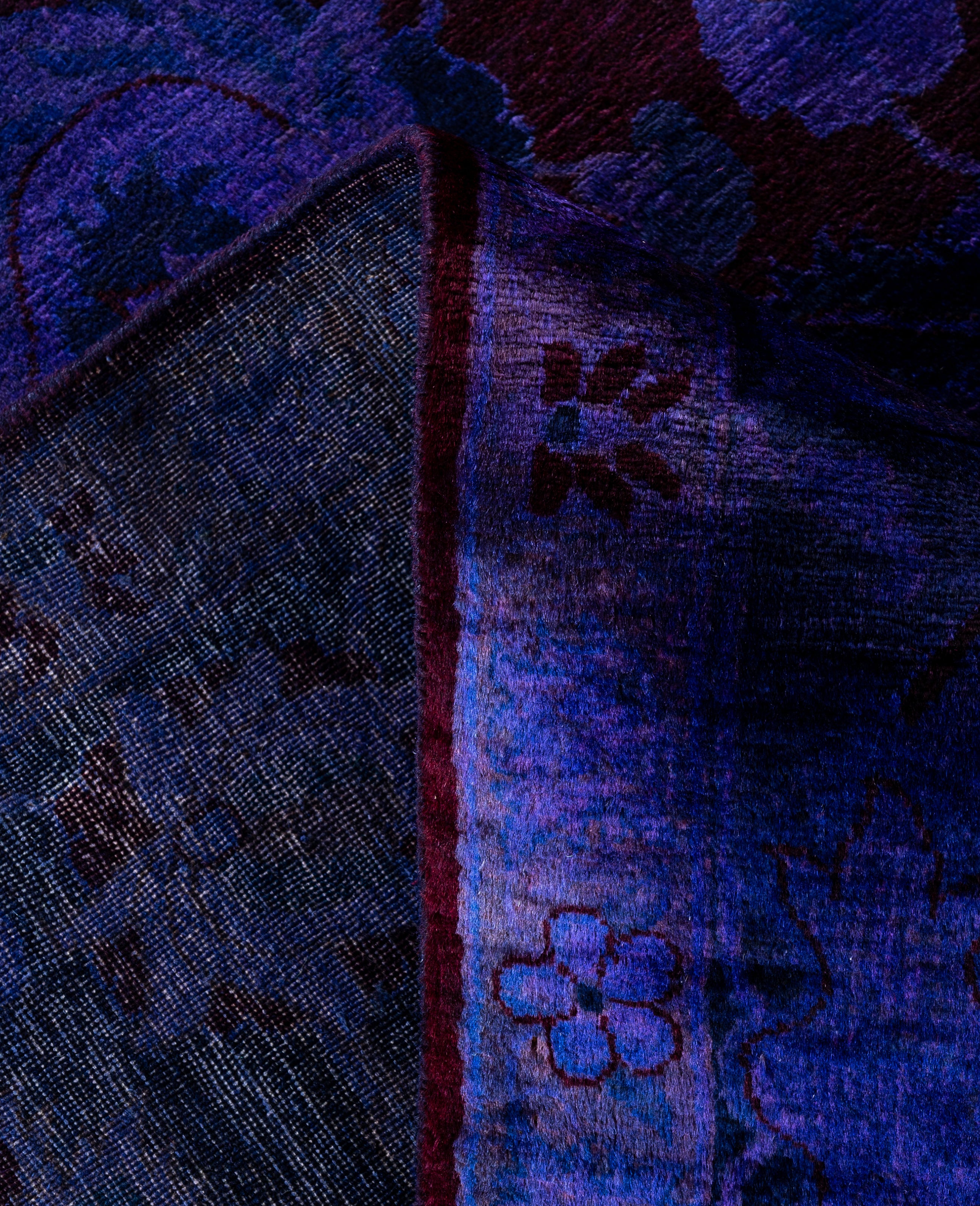 Over-dyed area rugs are created by taking vintage or traditional rugs and applying a vibrant, monochromatic dye over the existing patterns. This technique results in a bold, modern aesthetic while preserving the intricate designs beneath, blending the old with the new. The rugs are often faded and distressed before dyeing, which adds texture and depth to their appearance. The over-dye process breathes new life into worn or antique rugs, giving them a contemporary twist with rich, saturated colors like deep blues, purples, or bright reds. These rugs work well in both eclectic and modern spaces, offering a unique, artistic flair to any room. They provide a dynamic focal point, balancing between traditional craftsmanship and contemporary design trends. Over-dyed rugs are perfect for those looking to add a pop of color and character to their home decor.
