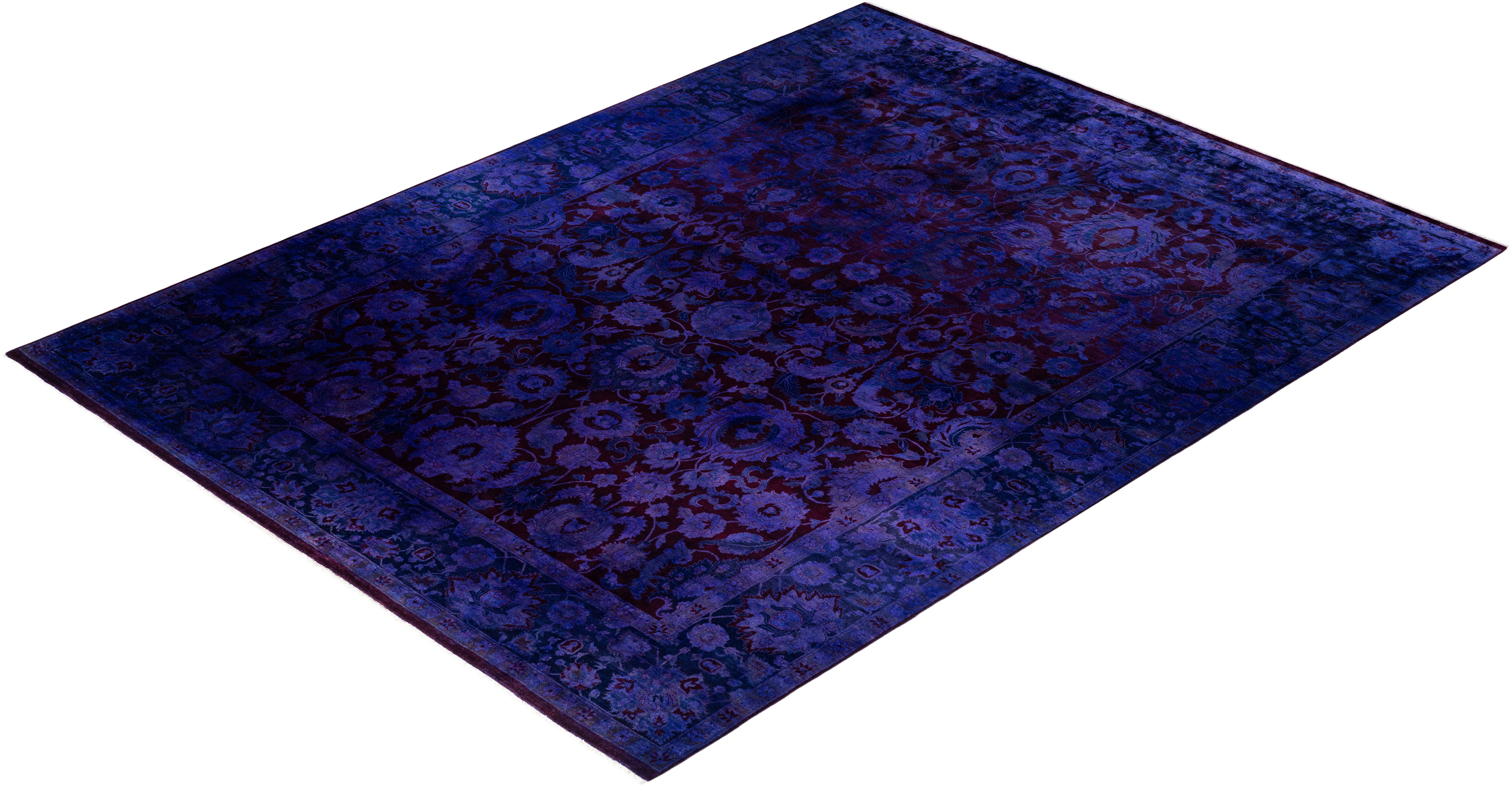 Contemporary Overdyed Wool Hand Knotted Purple Area Rug 9' 1" x 12' 0"