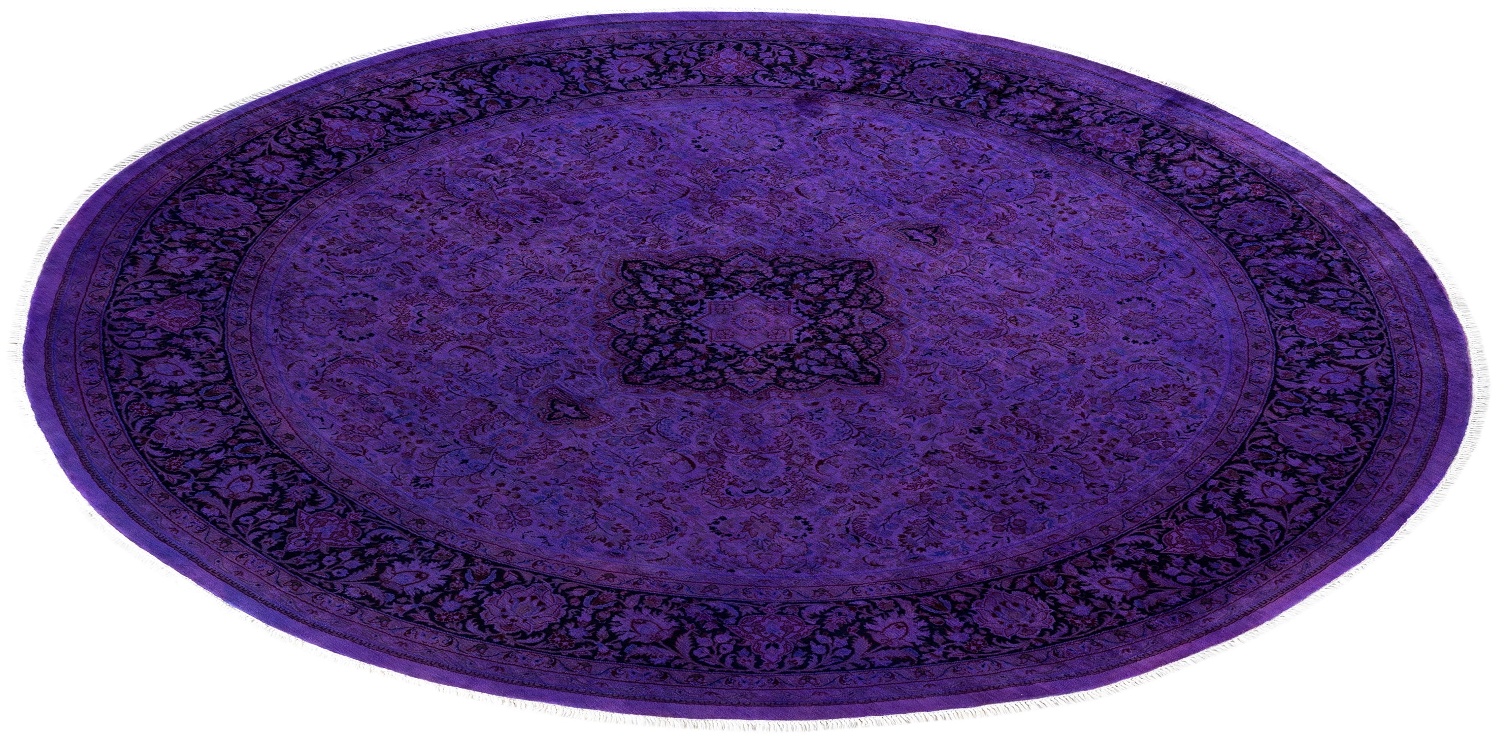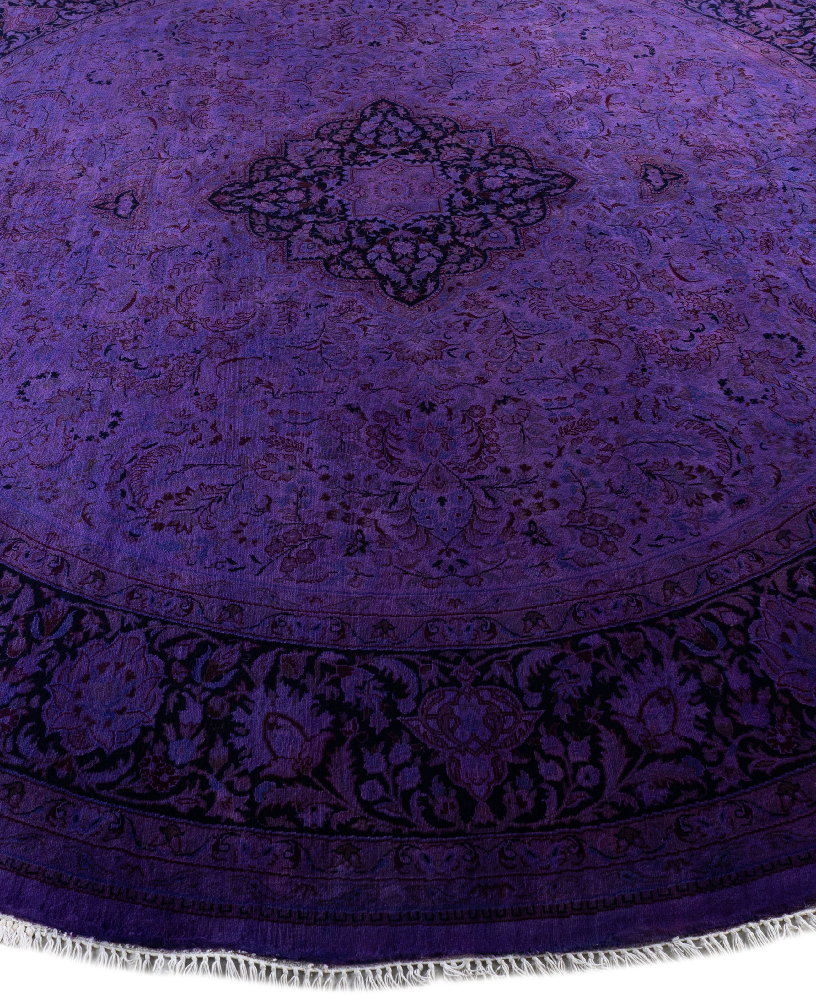 Contemporary Overdyed Wool Hand Knotted Purple Round Area Rug 8' 7" x 8' 9"