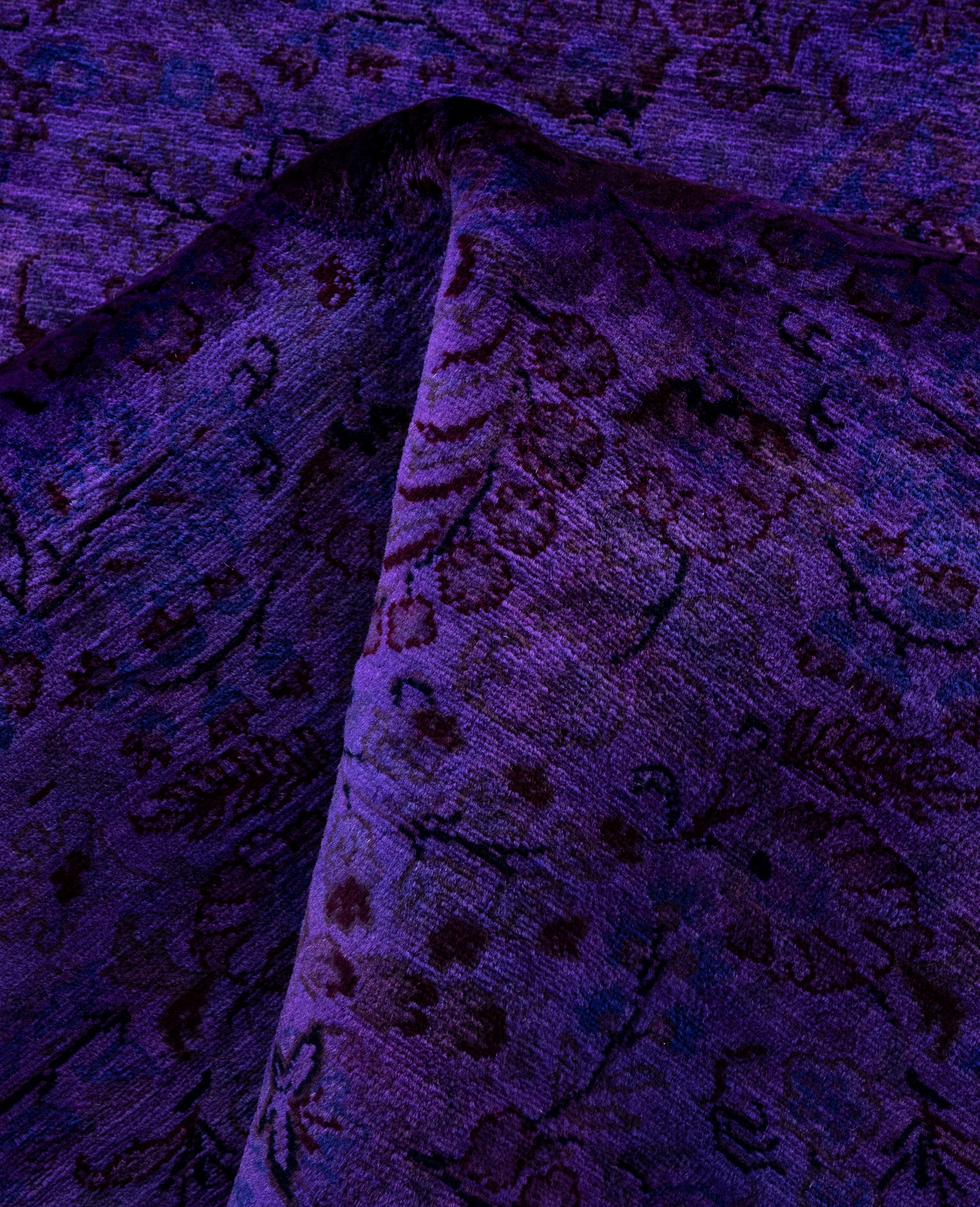 Over-dyed area rugs are created by taking vintage or traditional rugs and applying a vibrant, monochromatic dye over the existing patterns. This technique results in a bold, modern aesthetic while preserving the intricate designs beneath, blending the old with the new. The rugs are often faded and distressed before dyeing, which adds texture and depth to their appearance. The over-dye process breathes new life into worn or antique rugs, giving them a contemporary twist with rich, saturated colors like deep blues, purples, or bright reds. These rugs work well in both eclectic and modern spaces, offering a unique, artistic flair to any room. They provide a dynamic focal point, balancing between traditional craftsmanship and contemporary design trends. Over-dyed rugs are perfect for those looking to add a pop of color and character to their home decor.