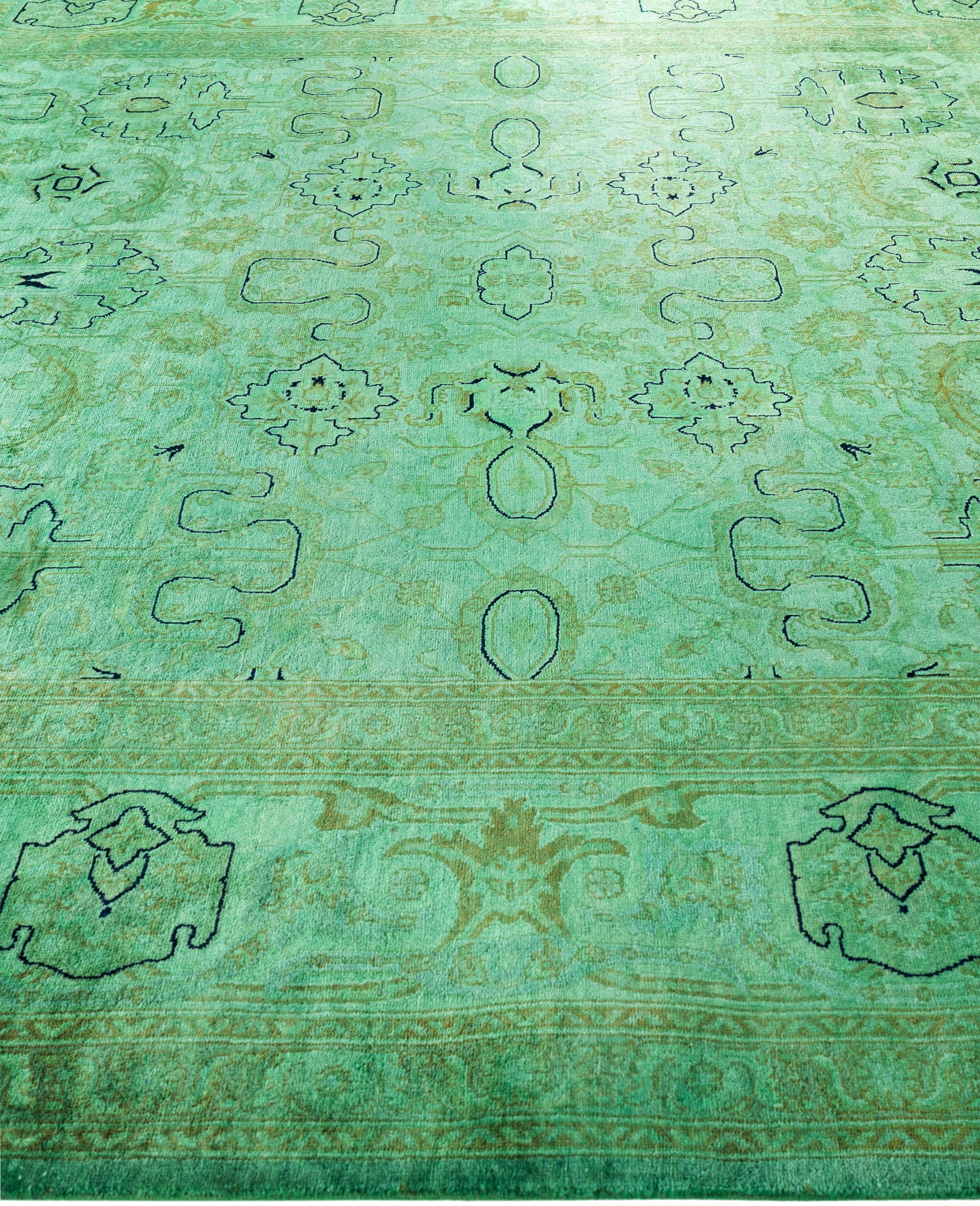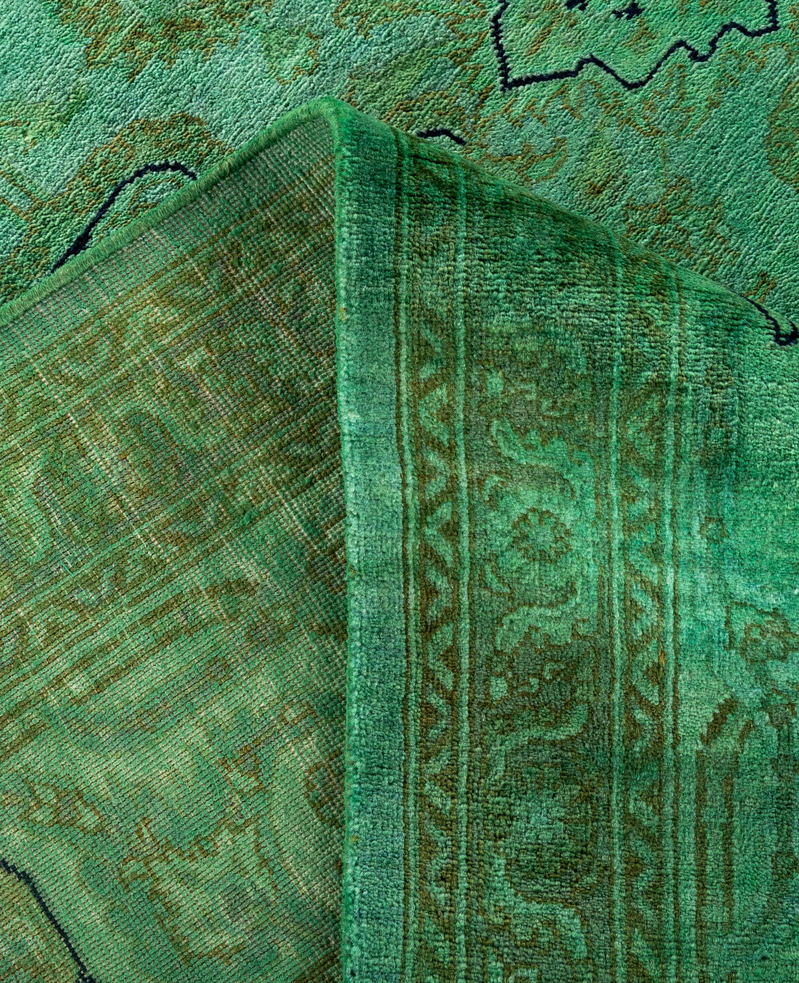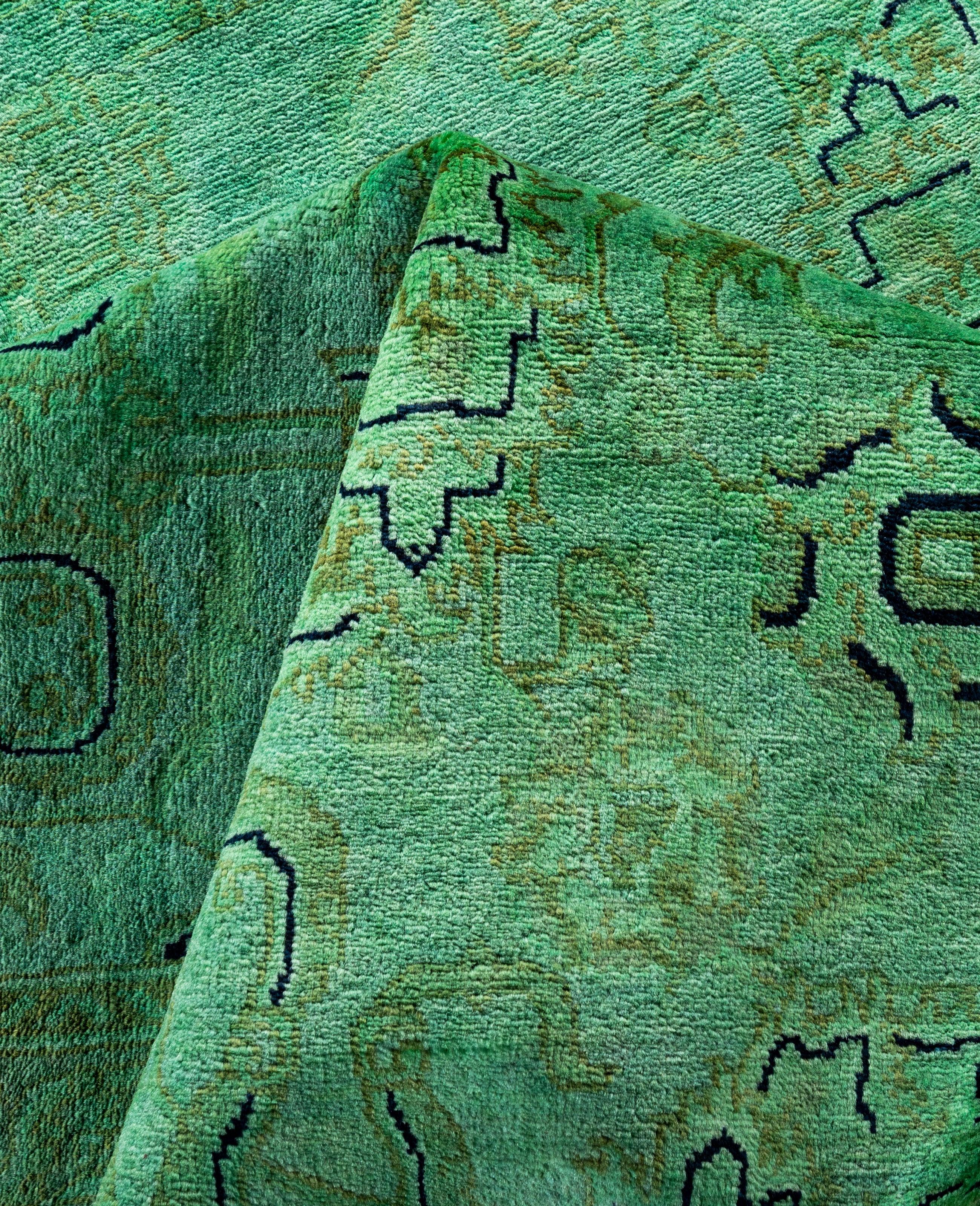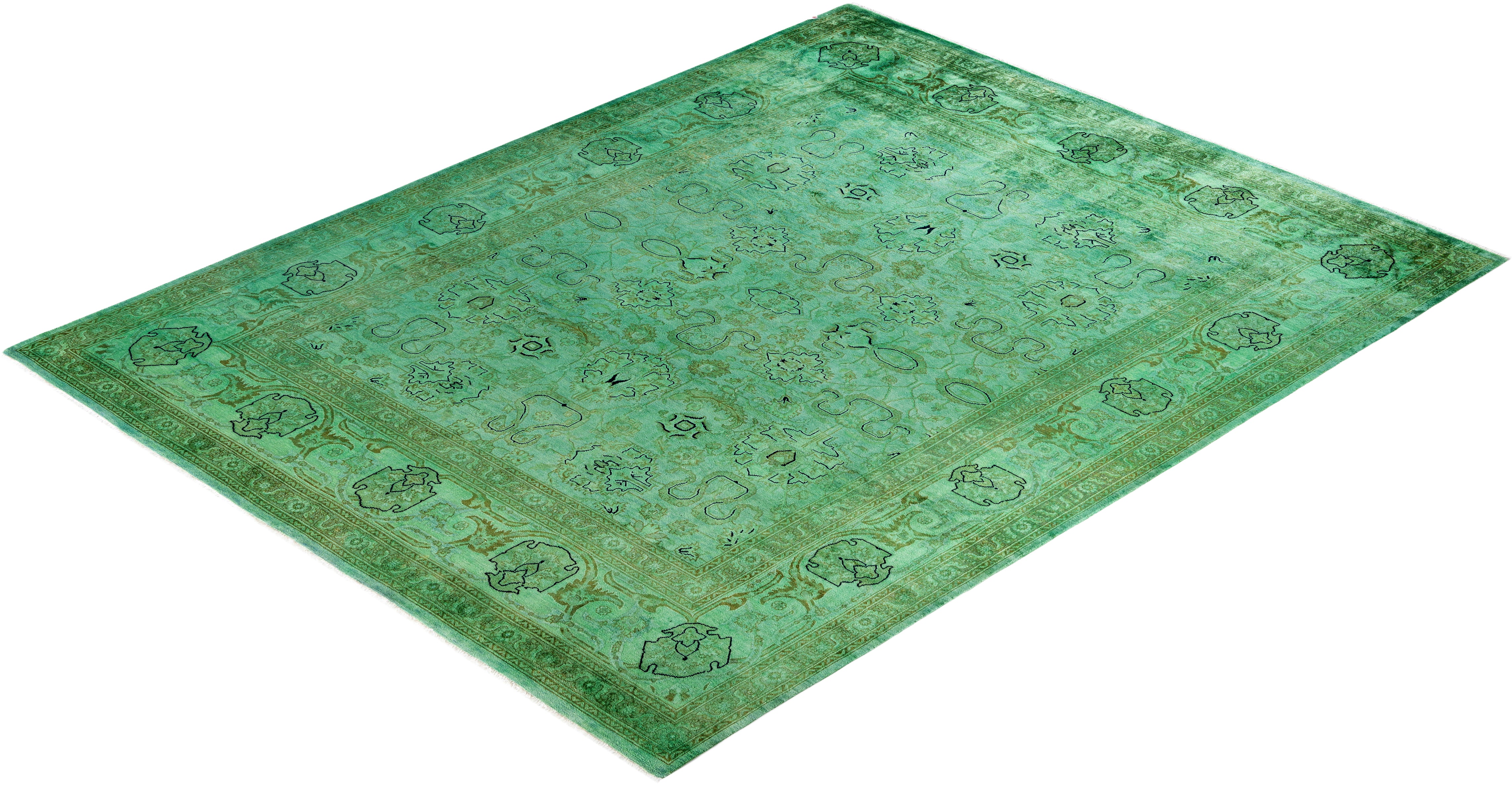 Contemporary Overdyed Wool Hand Knotted Green Area Rug 8' 1" x 10' 3"