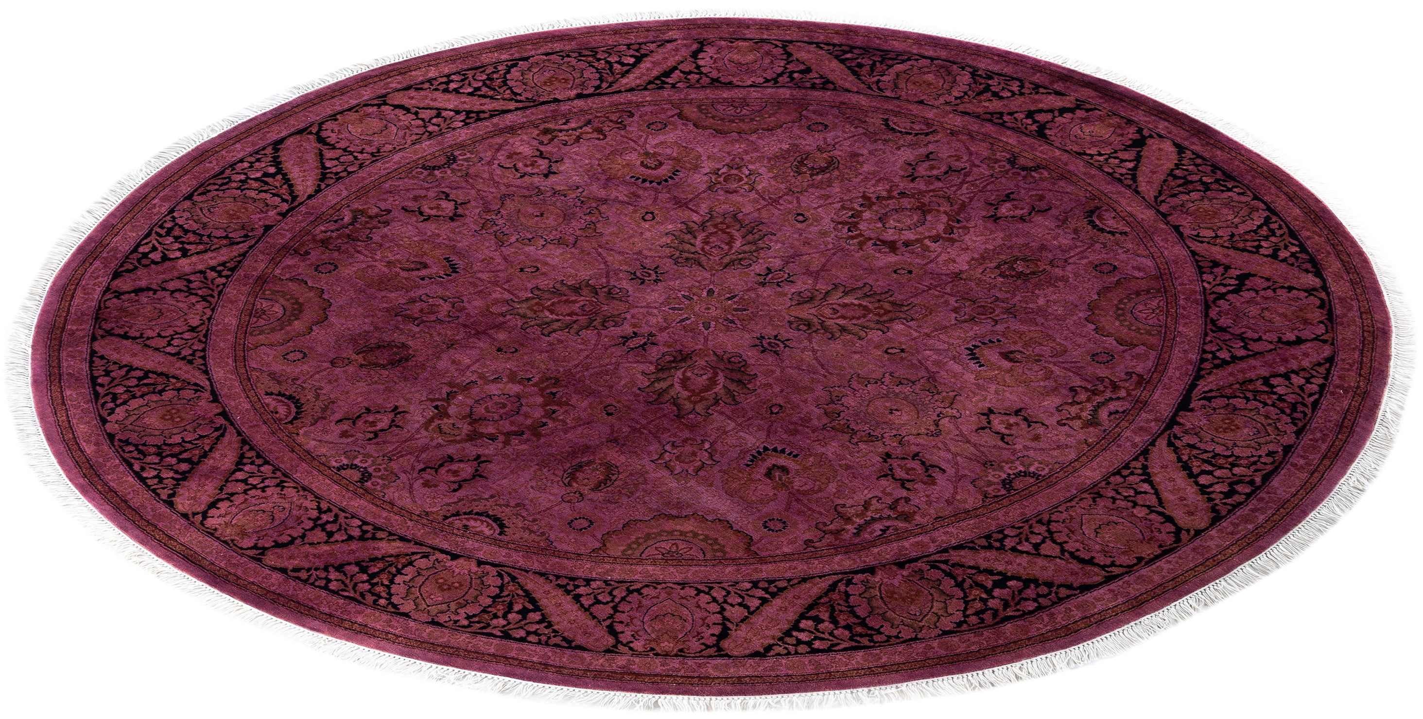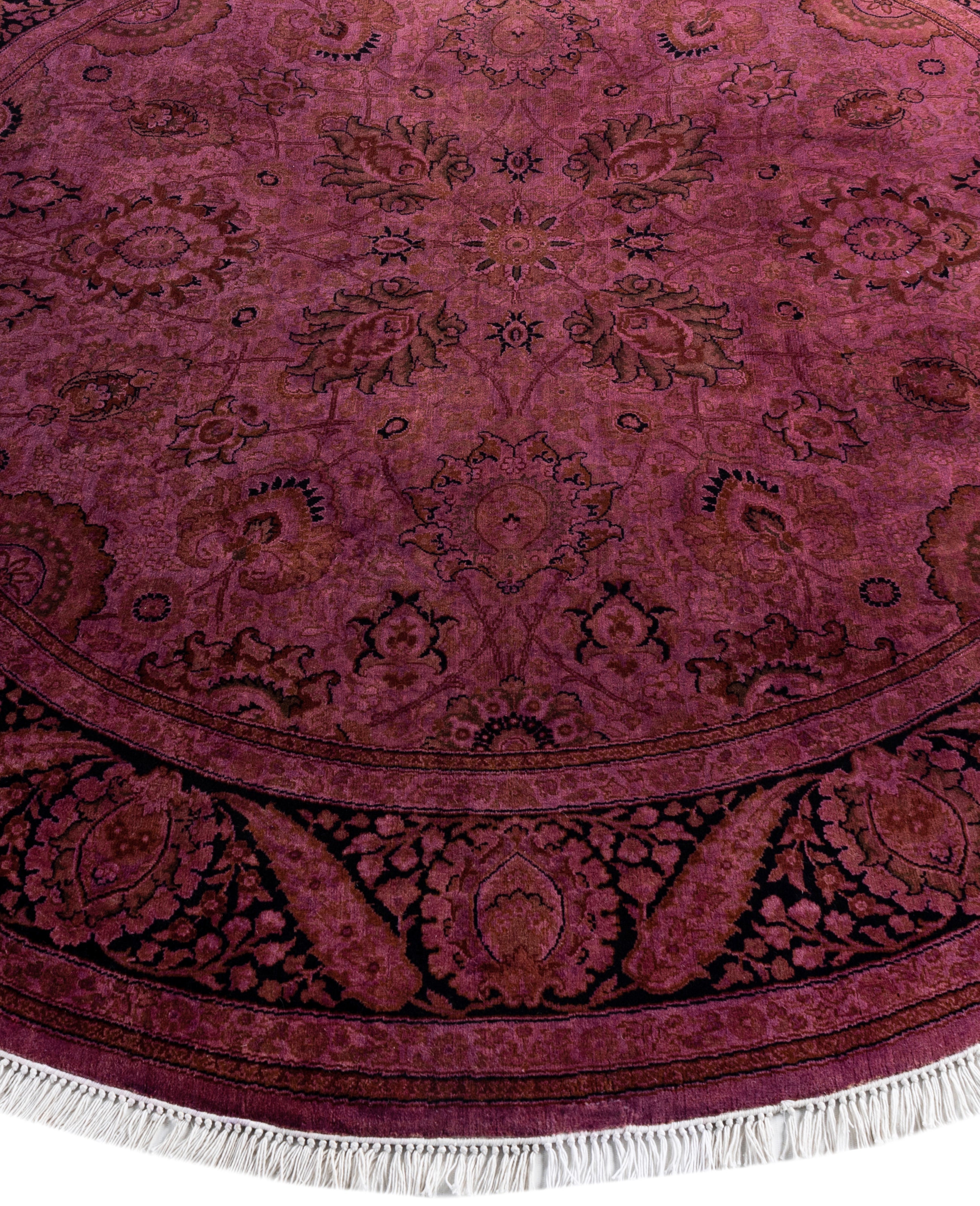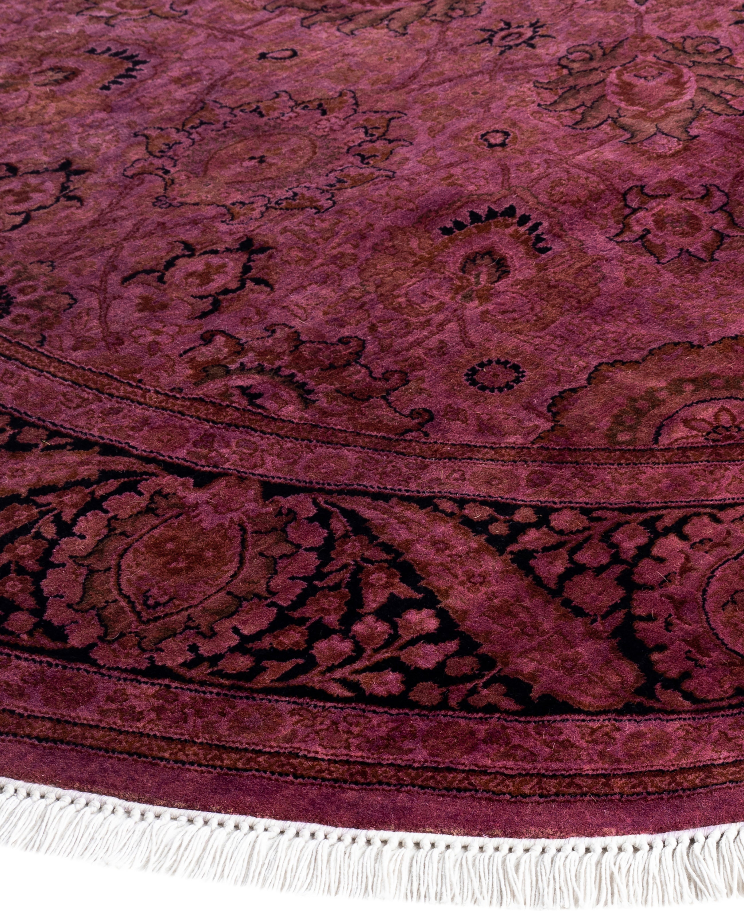 Contemporary Overdyed Wool Hand Knotted Pink Round Area Rug 6' 1" x 6' 1"